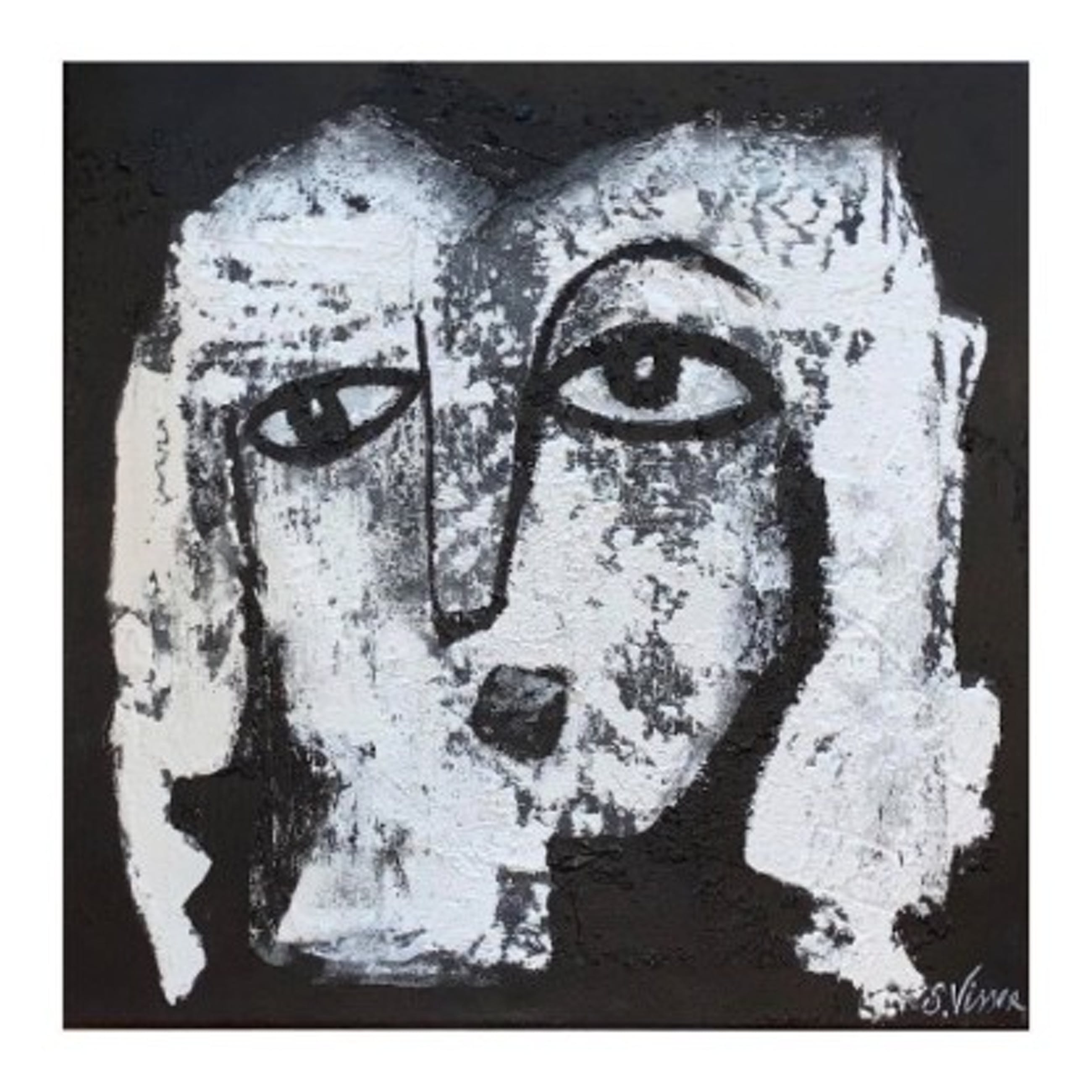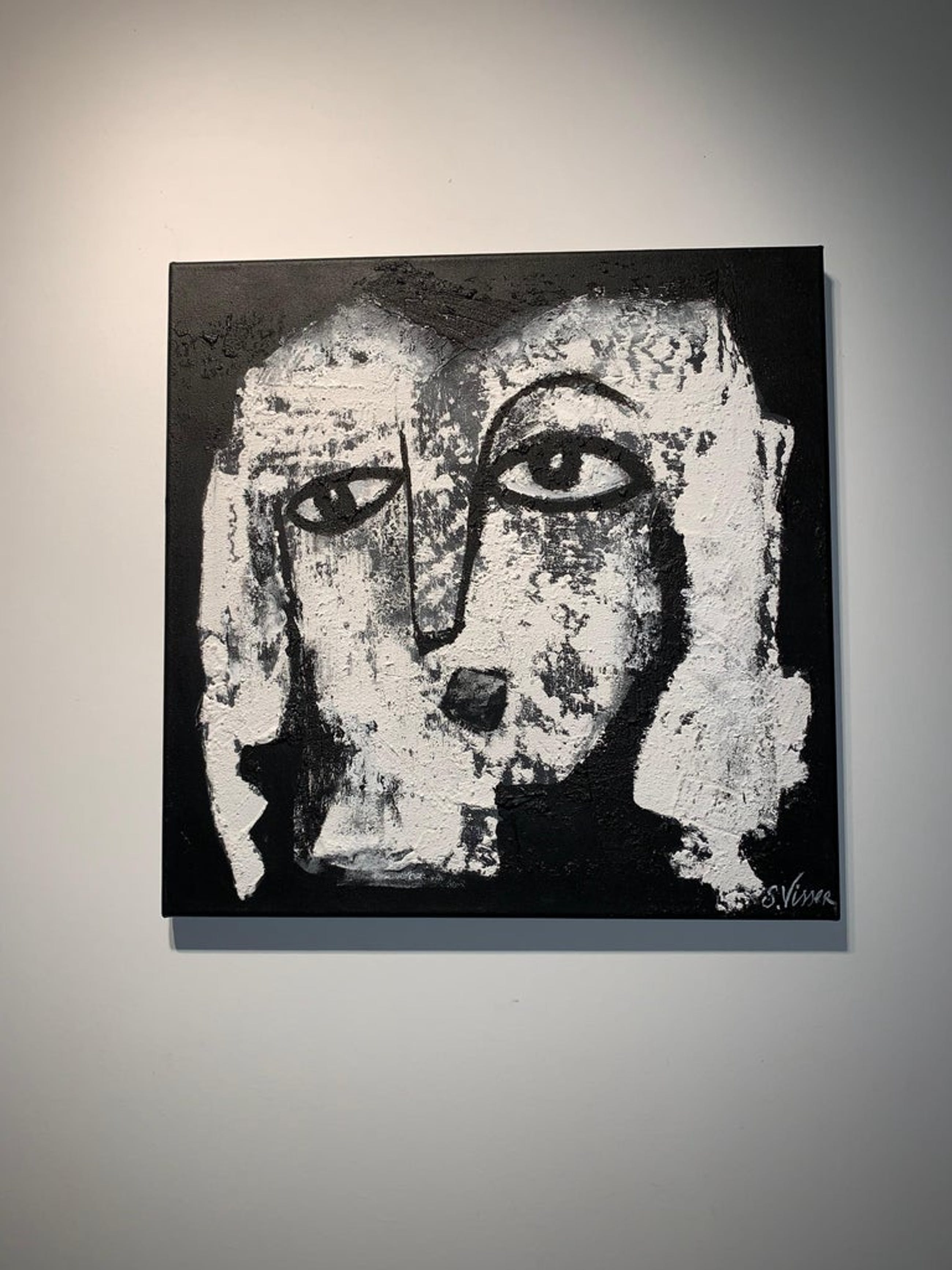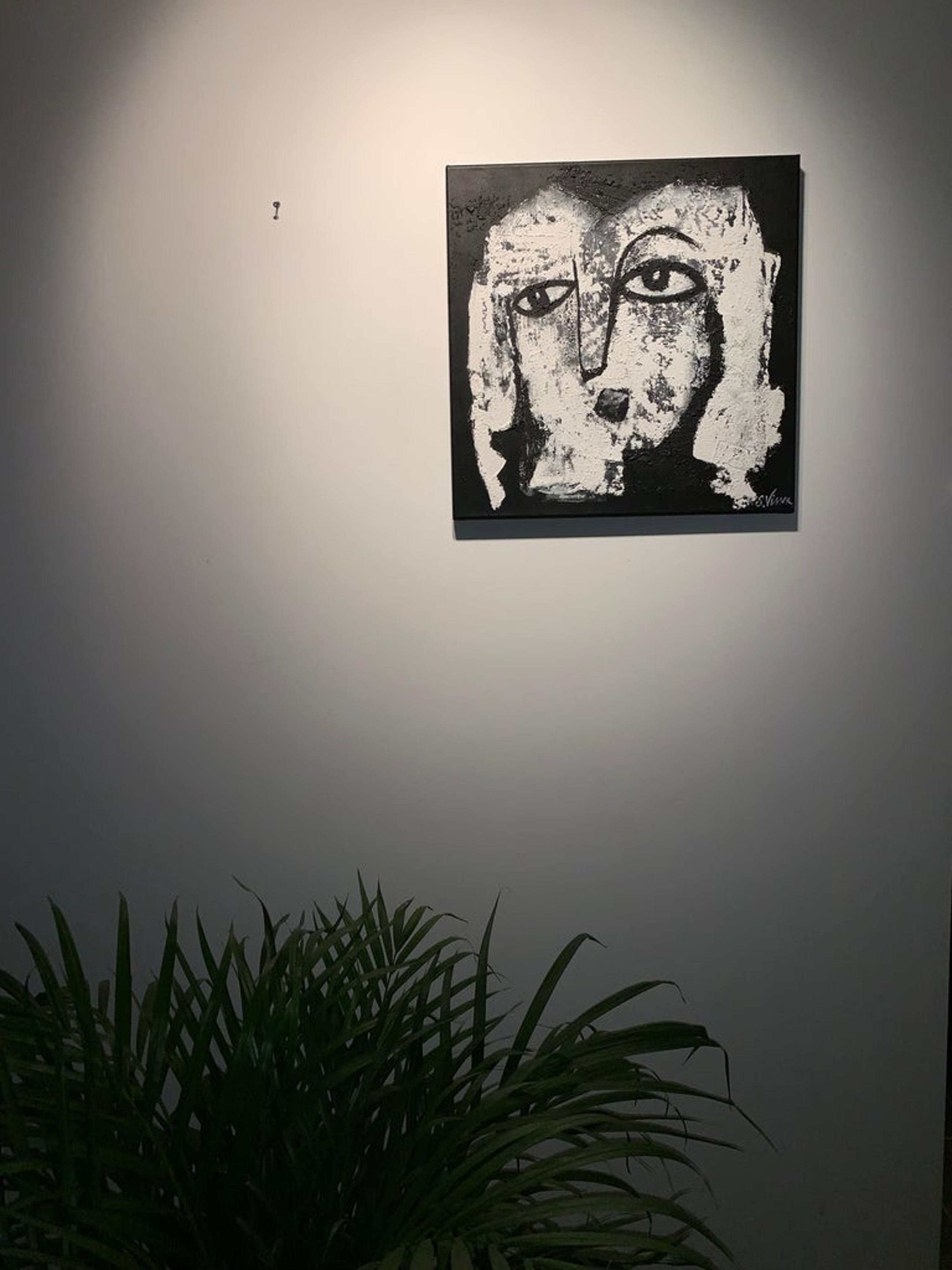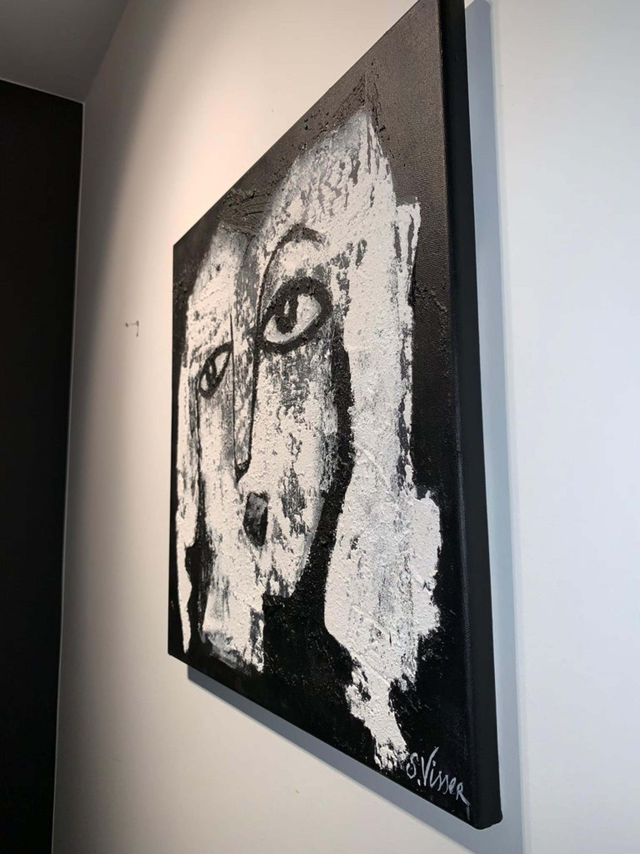 Gemengde techniek: marokkaans zand verwerkt in acrylverf. Dit geeft een mooie reliëfstructuur.