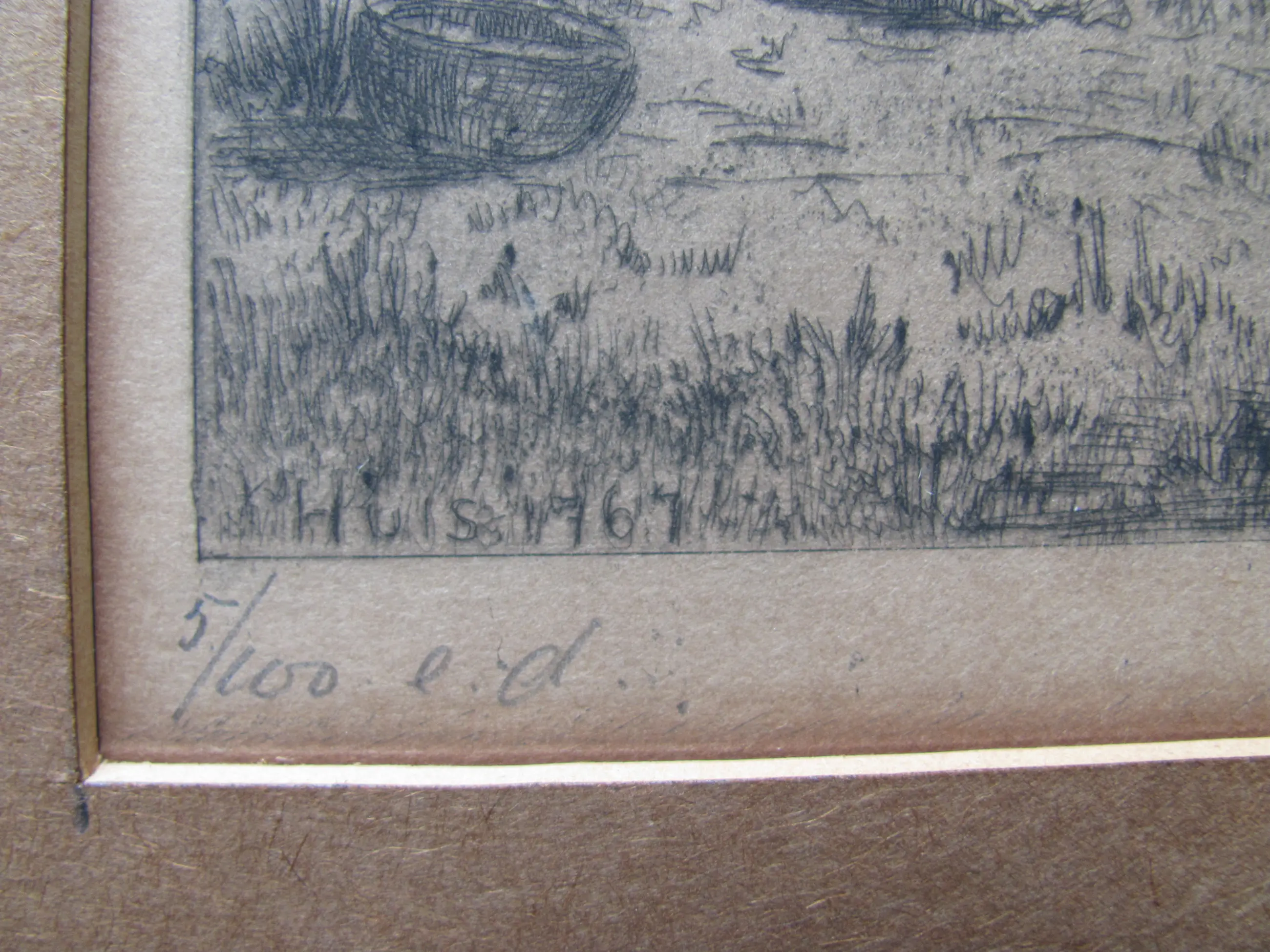 Ets van Suze de Lint. Rechtsonder met potlood gesigneerd. Linksonder met potlood genummerd (5/100) en voorzien van de letters "e.d." (eigen druk).