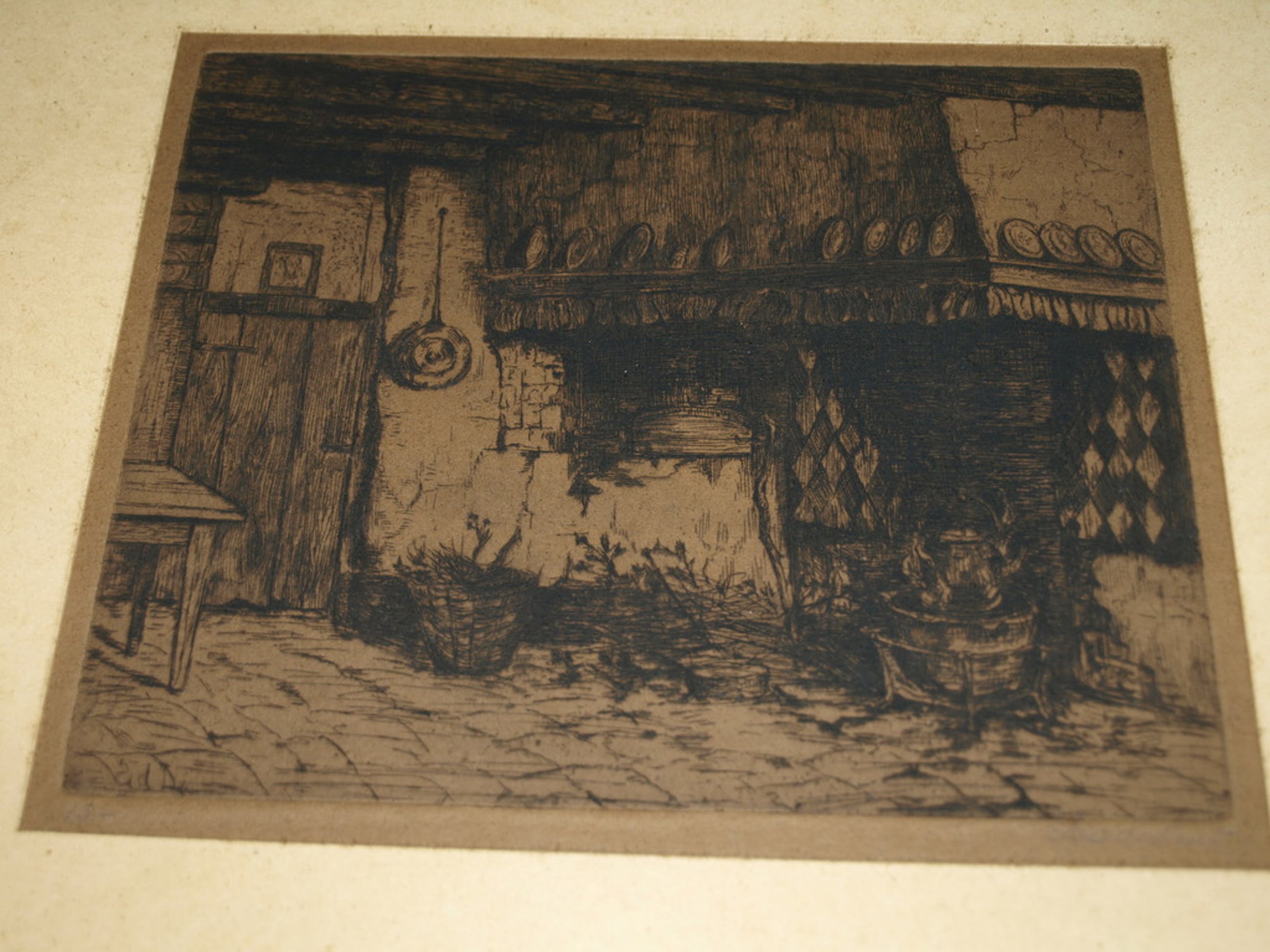 Conditie: Het papier van de ets is ‘vergeeld’. Verder in zeer goede staat. De lijst heeft lichte slijtplekjes.