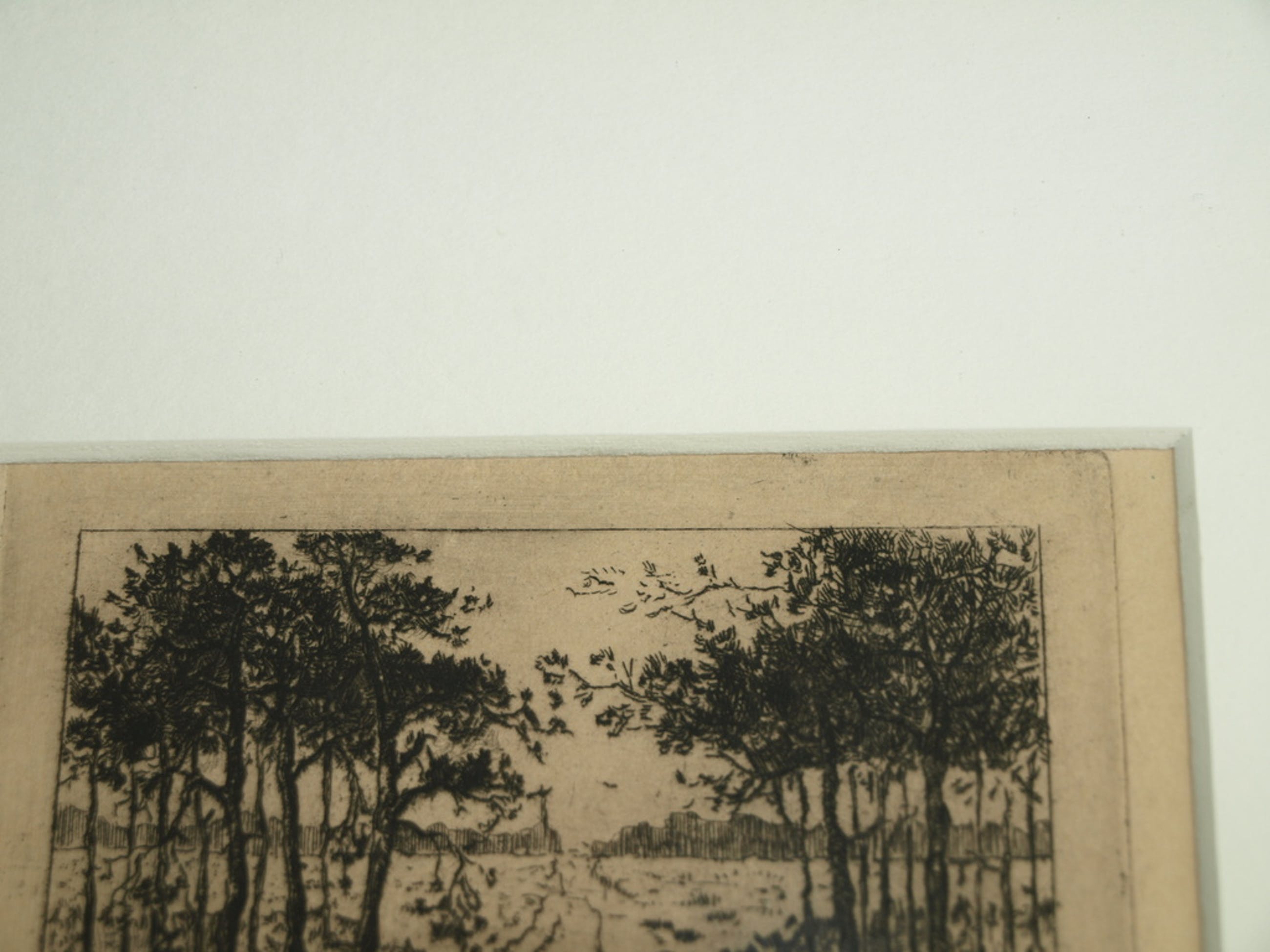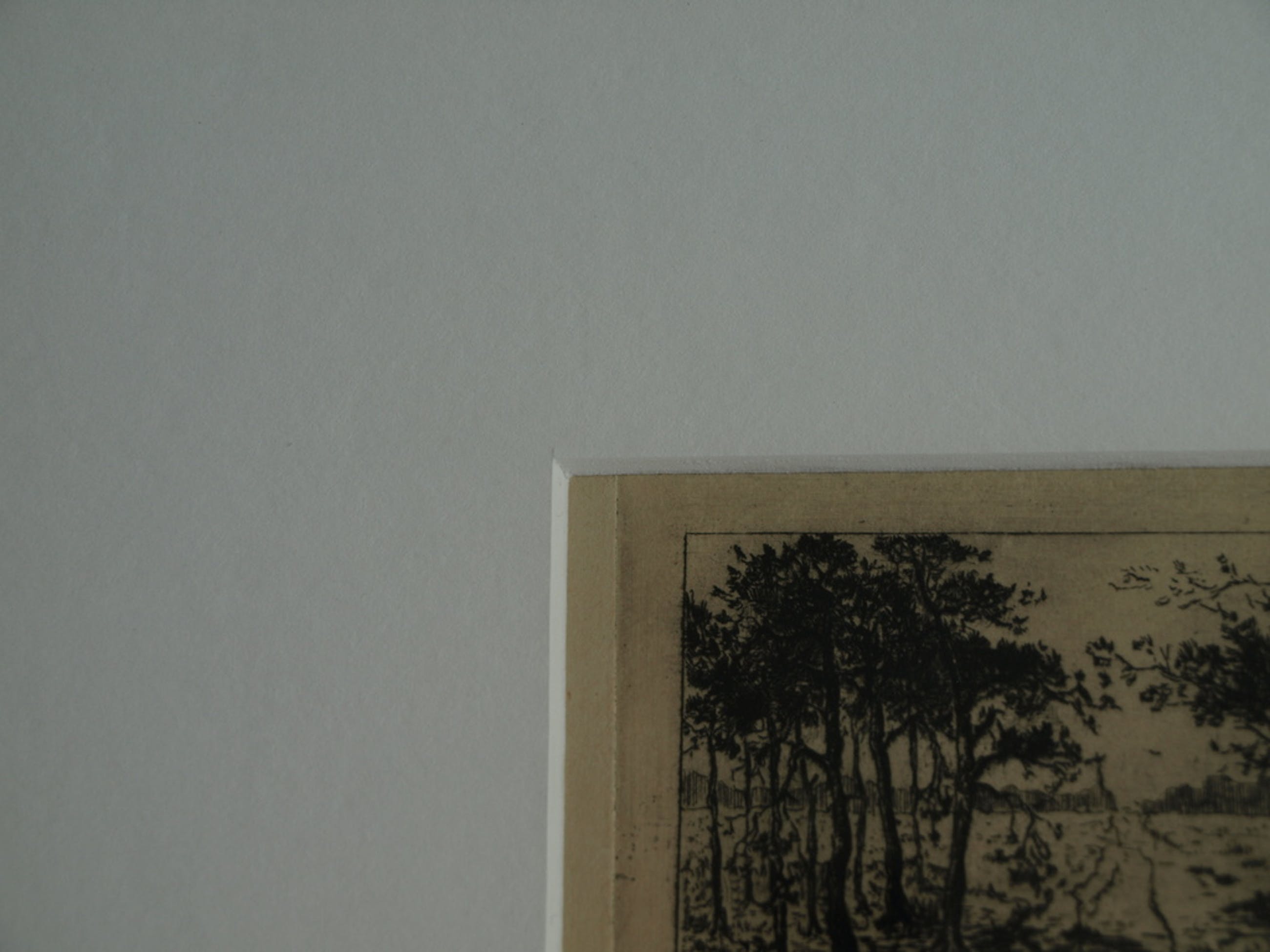 Conditie: Het papier van de ets en van het passe-partout is ‘vergeeld’.