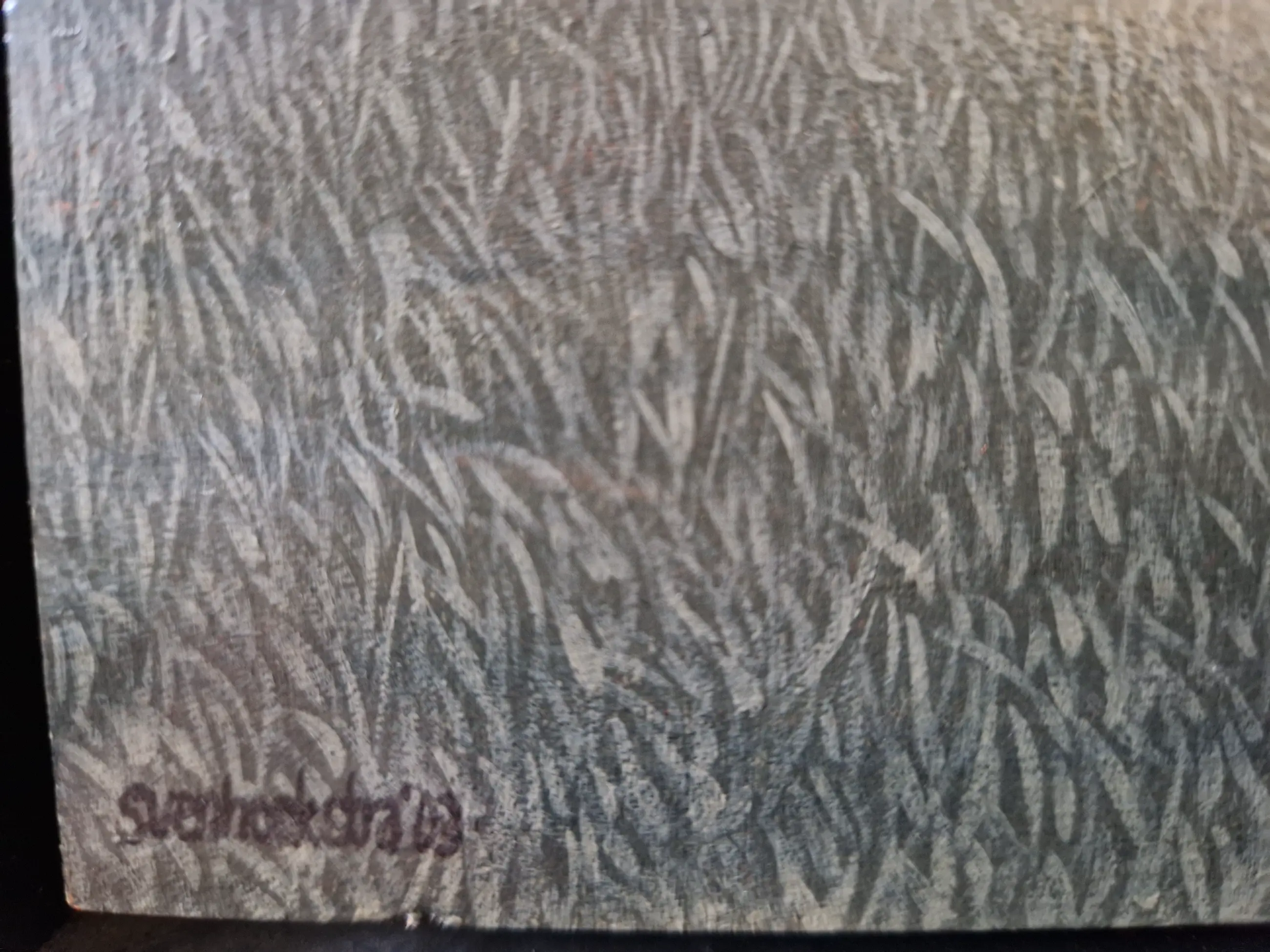 Heel knap en gedetailleerd geschilderd in olieverf op board en gelijst in een fraaie baklijst. Gesigneerd linksonder.