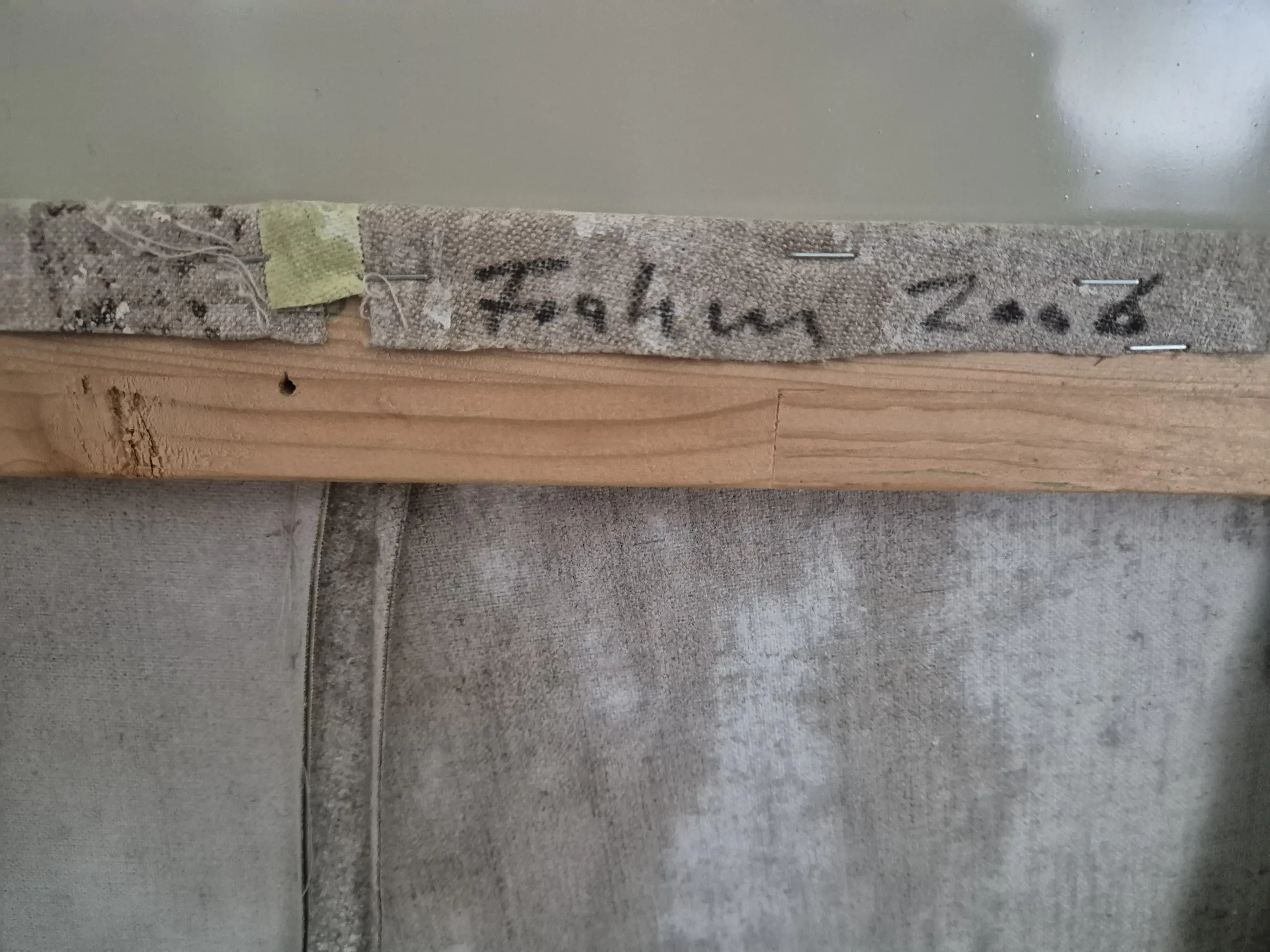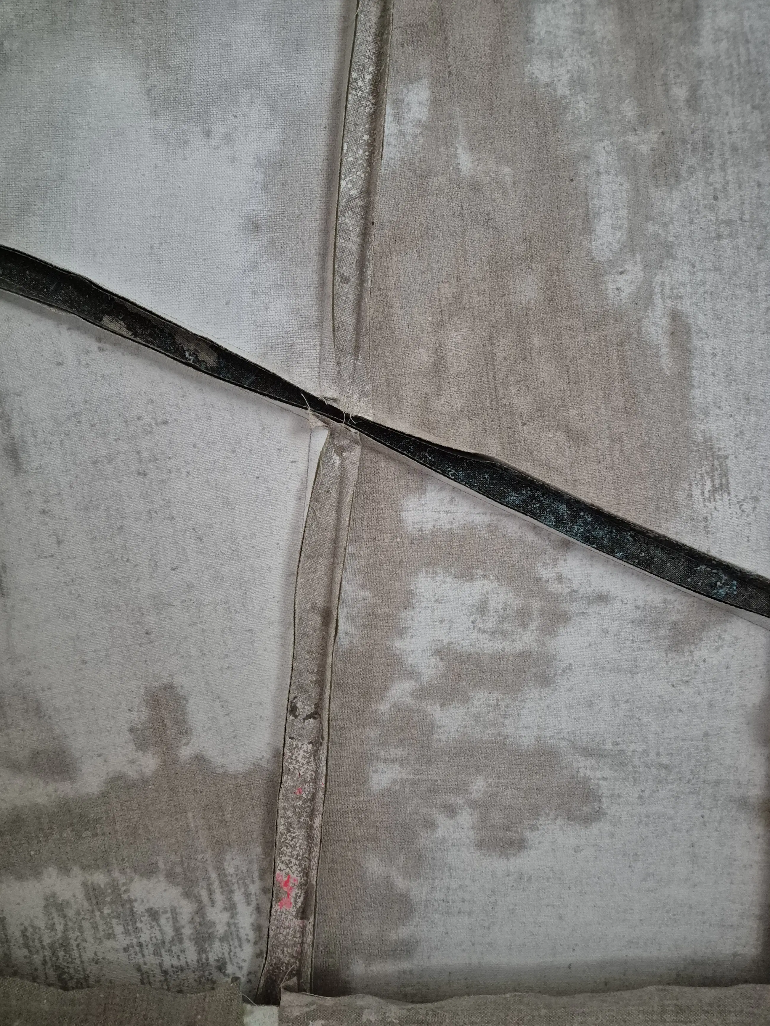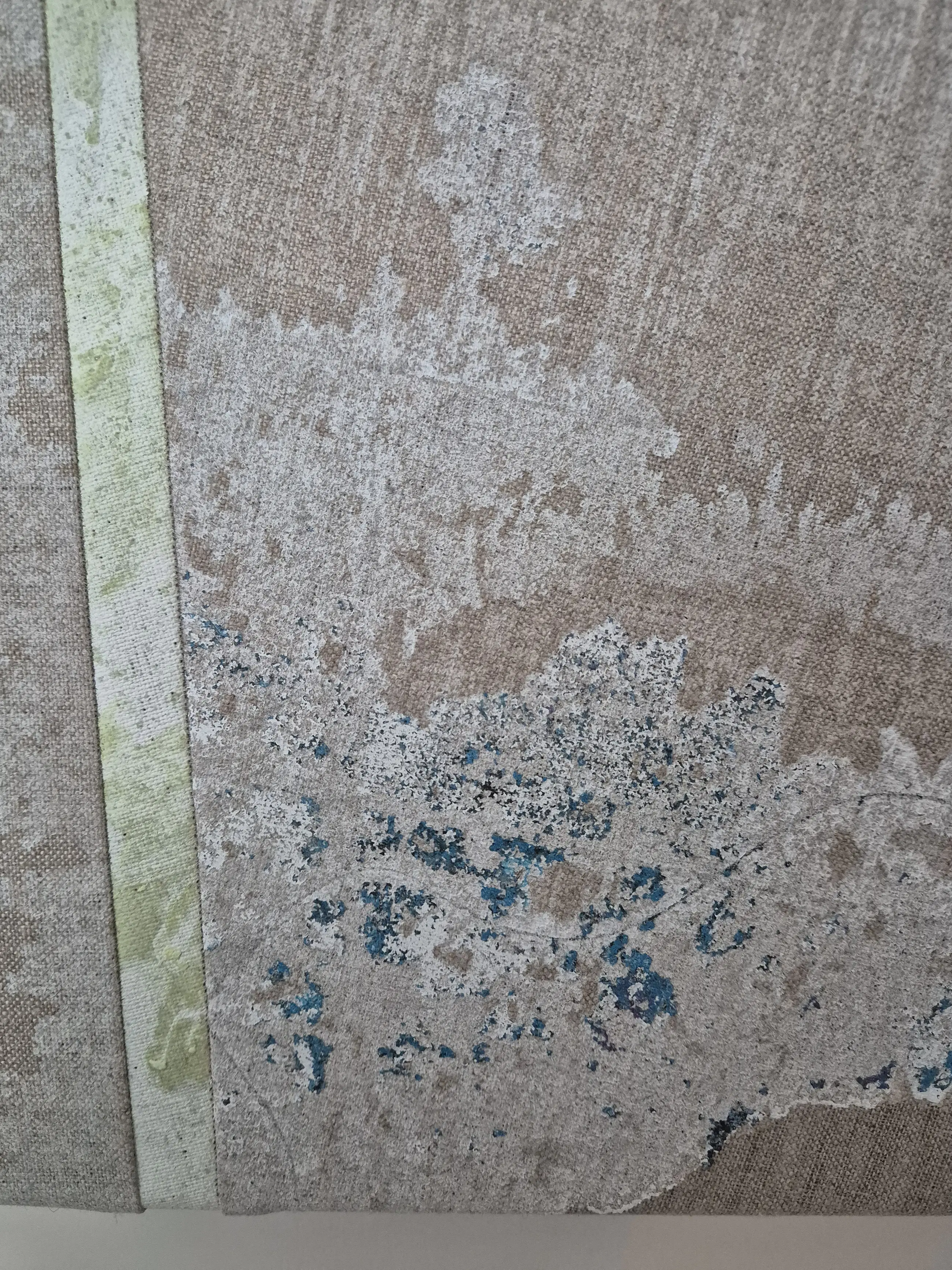 Gemengde techniek van Sven-Ole Fragh uit 2006 getiteld 'Intersectie' In dit werk wordt de spanning tussen orde en toeval, erosie en structuur onderzocht door de artiest. Twee diagonalen snijden het vlak in dynamische richtingen. (deze zijn gestikt aan de cerscillende delen doek, zie foto's achterzijde)