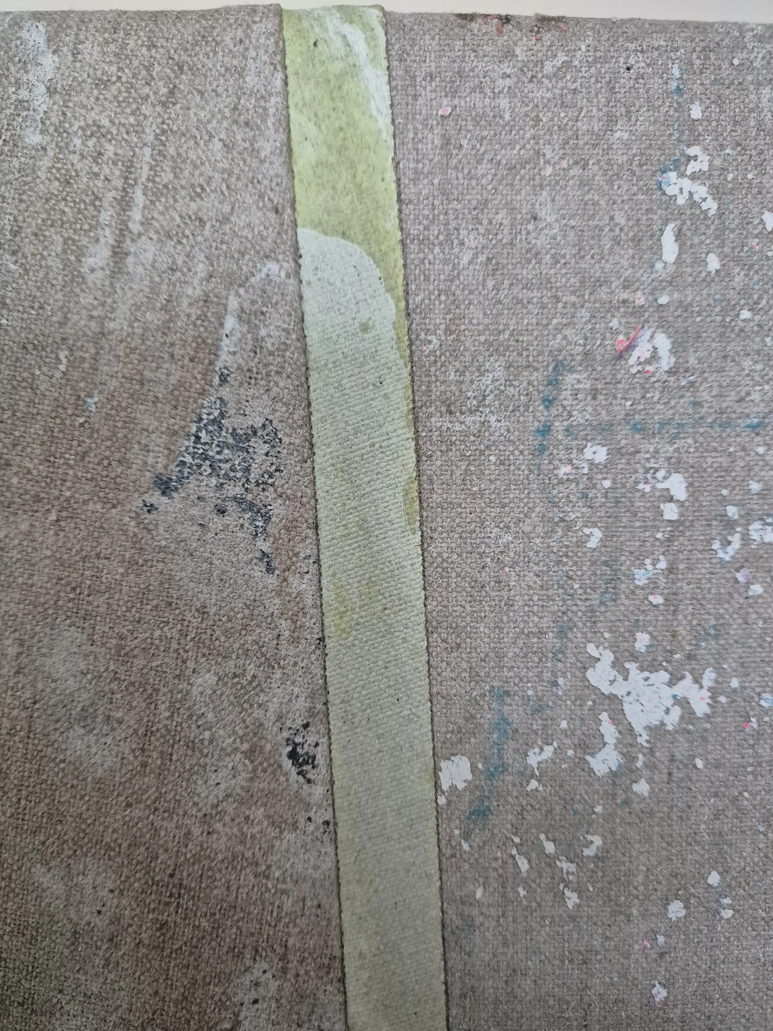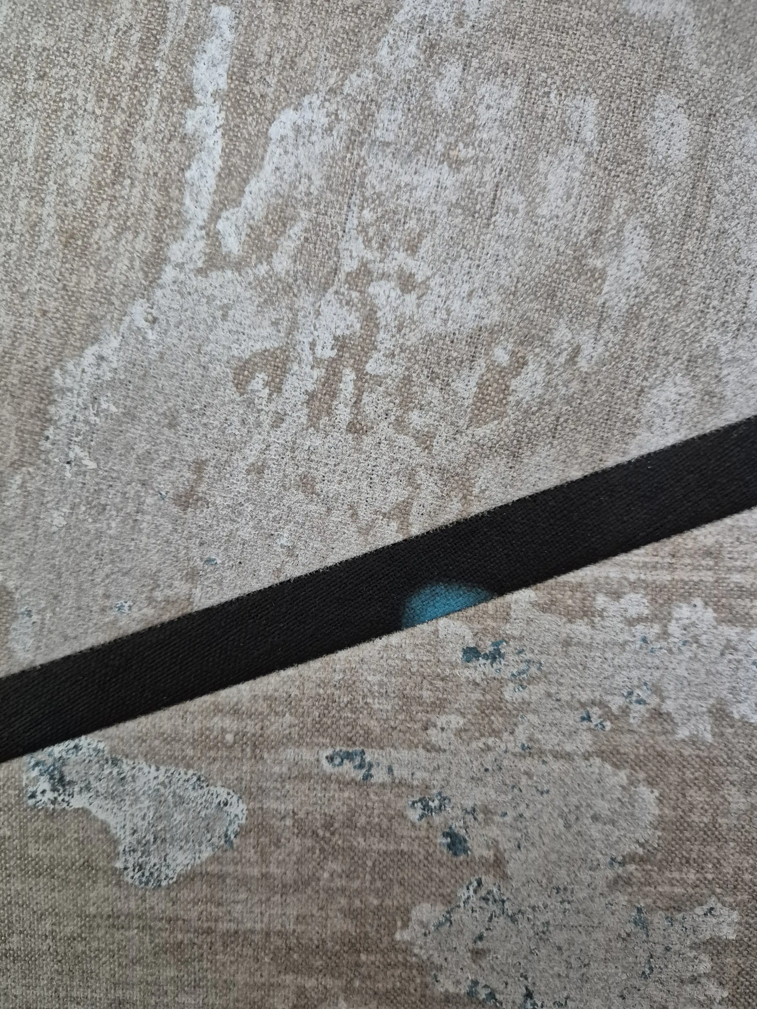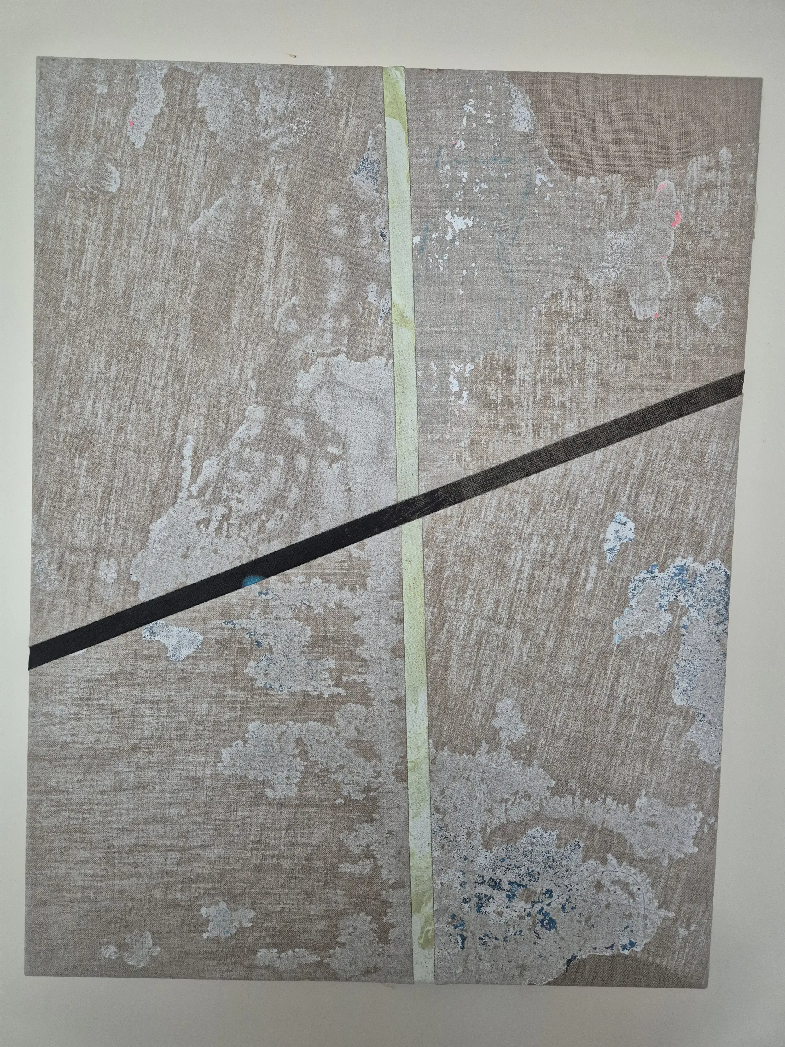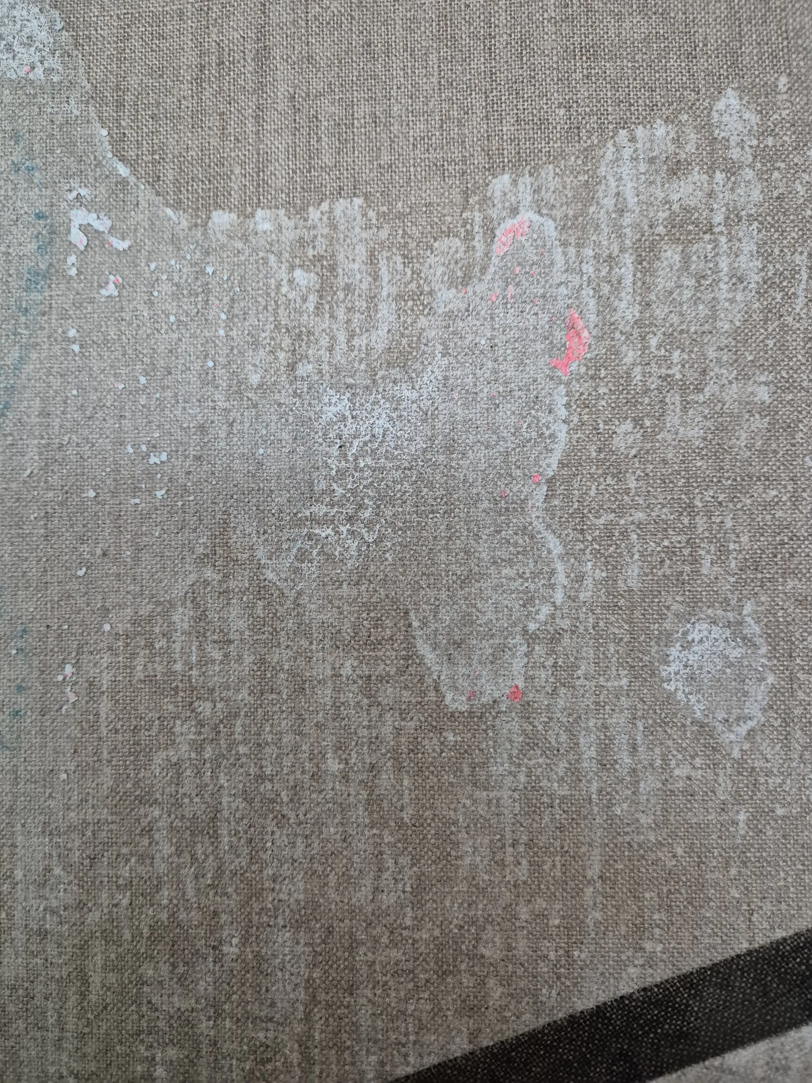 Gemengde techniek van Sven-Ole Fragh uit 2006 getiteld 'Intersectie' In dit werk wordt de spanning tussen orde en toeval, erosie en structuur onderzocht door de artiest. Twee diagonalen snijden het vlak in dynamische richtingen. (deze zijn gestikt aan de cerscillende delen doek, zie foto's achterzijde)