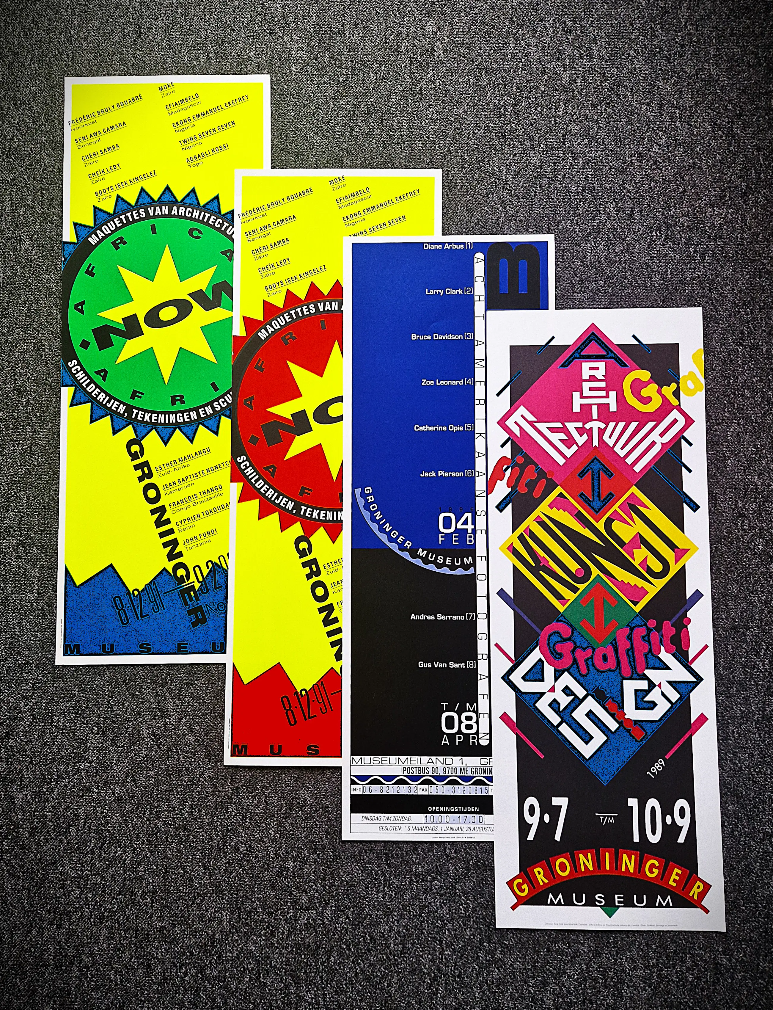 - Vier originele en in zeer goede staat verkerende jaren 90 affiches ontworpen door de bekende graficus Swip Stolk voor het Groninger Museum.