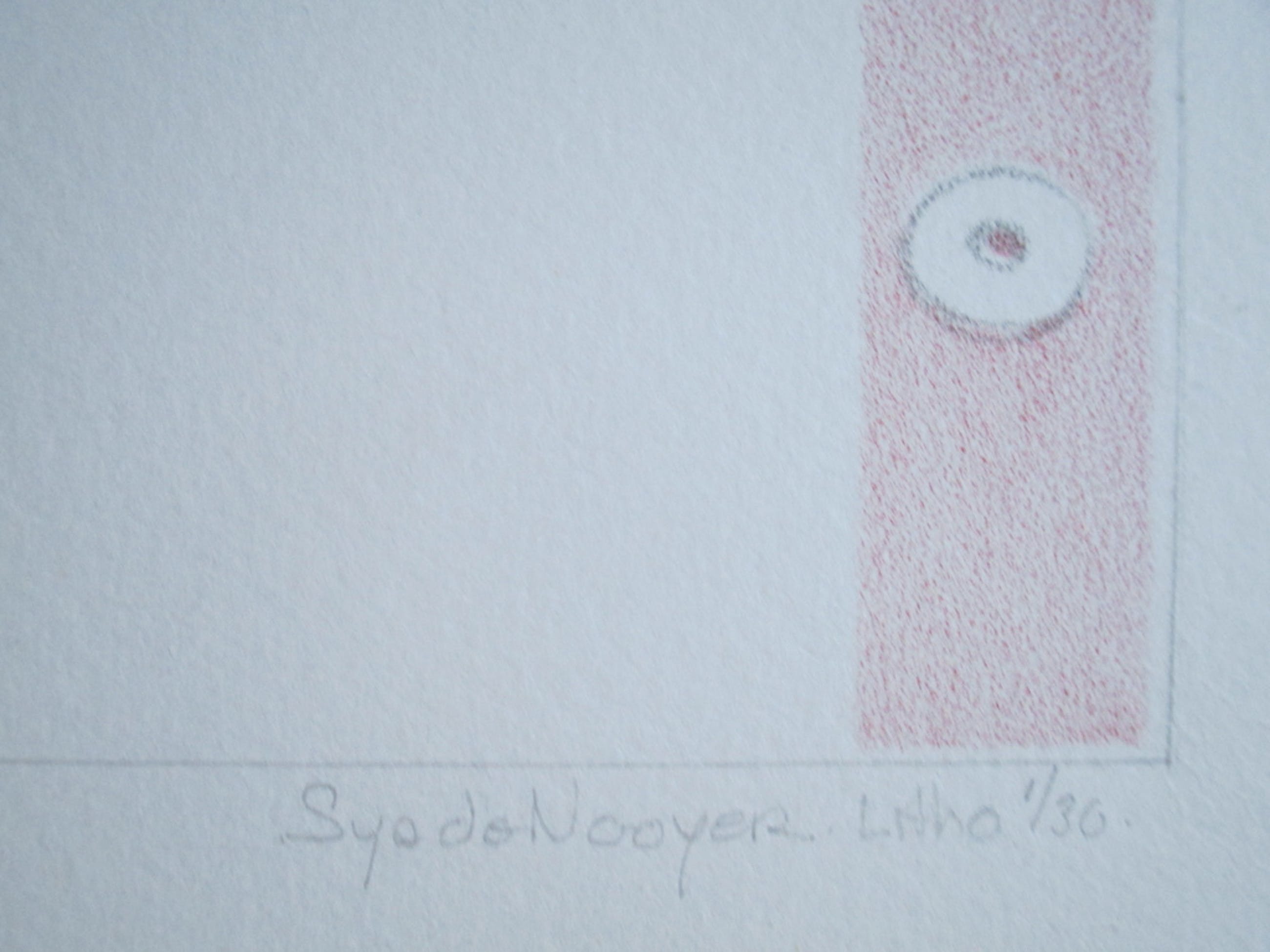 een mooie litho van Sya de Nooyer (1947-), nr. 1/30, getiteld “el viento”.. R.o gesigneerd en genummerd, afmeting blad 50x40, afm. beeld 35x25. De staat van het blad is perfect.