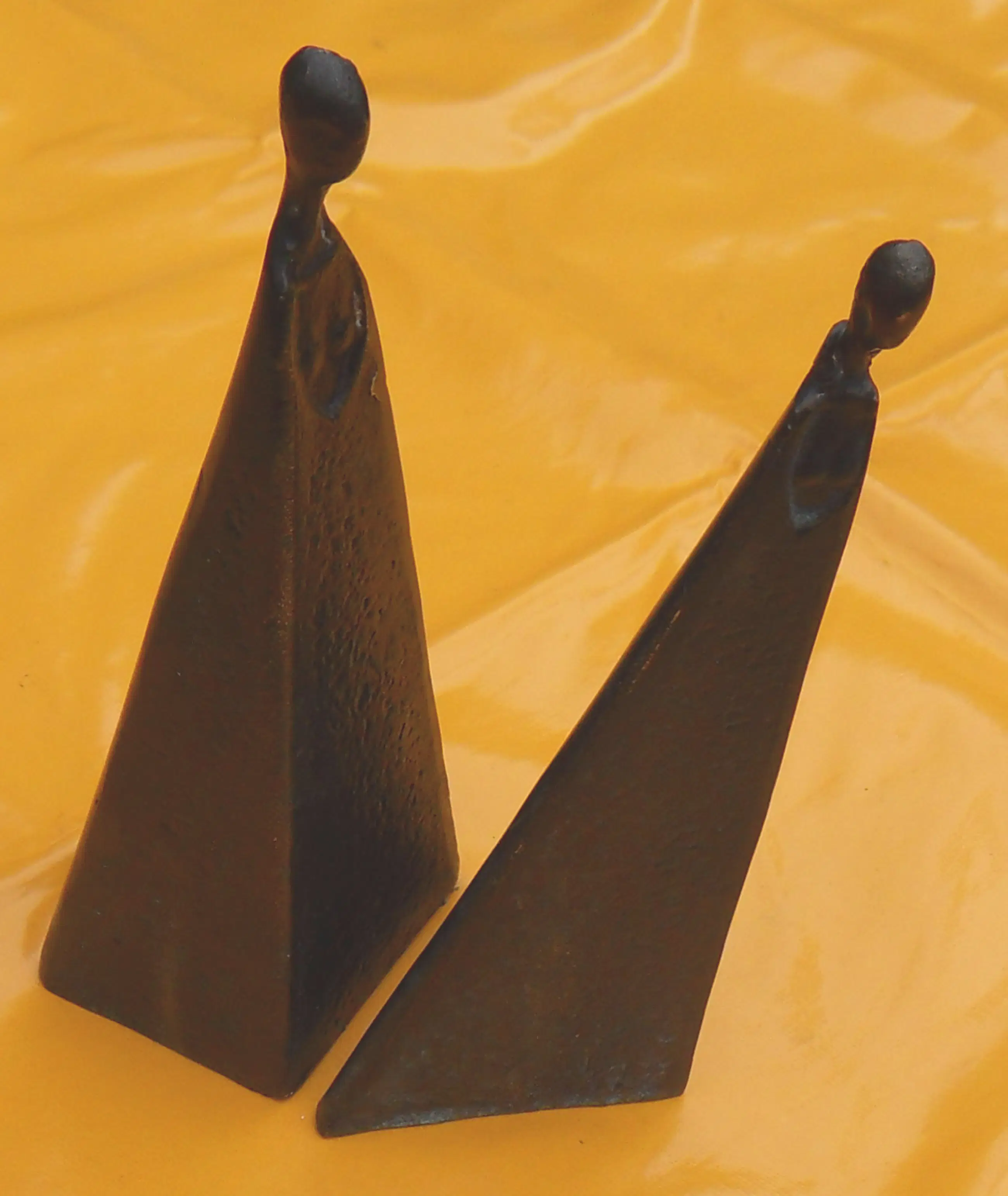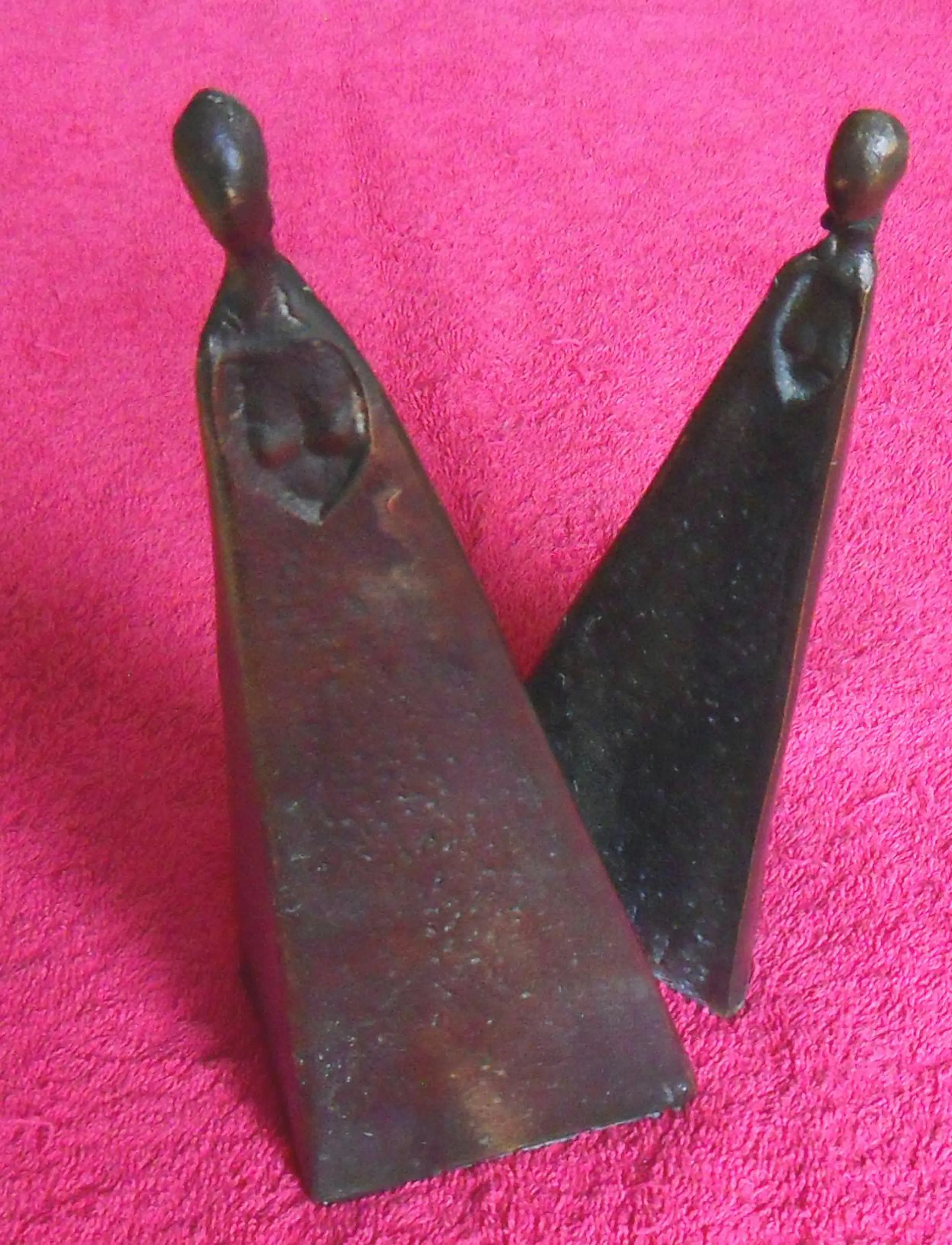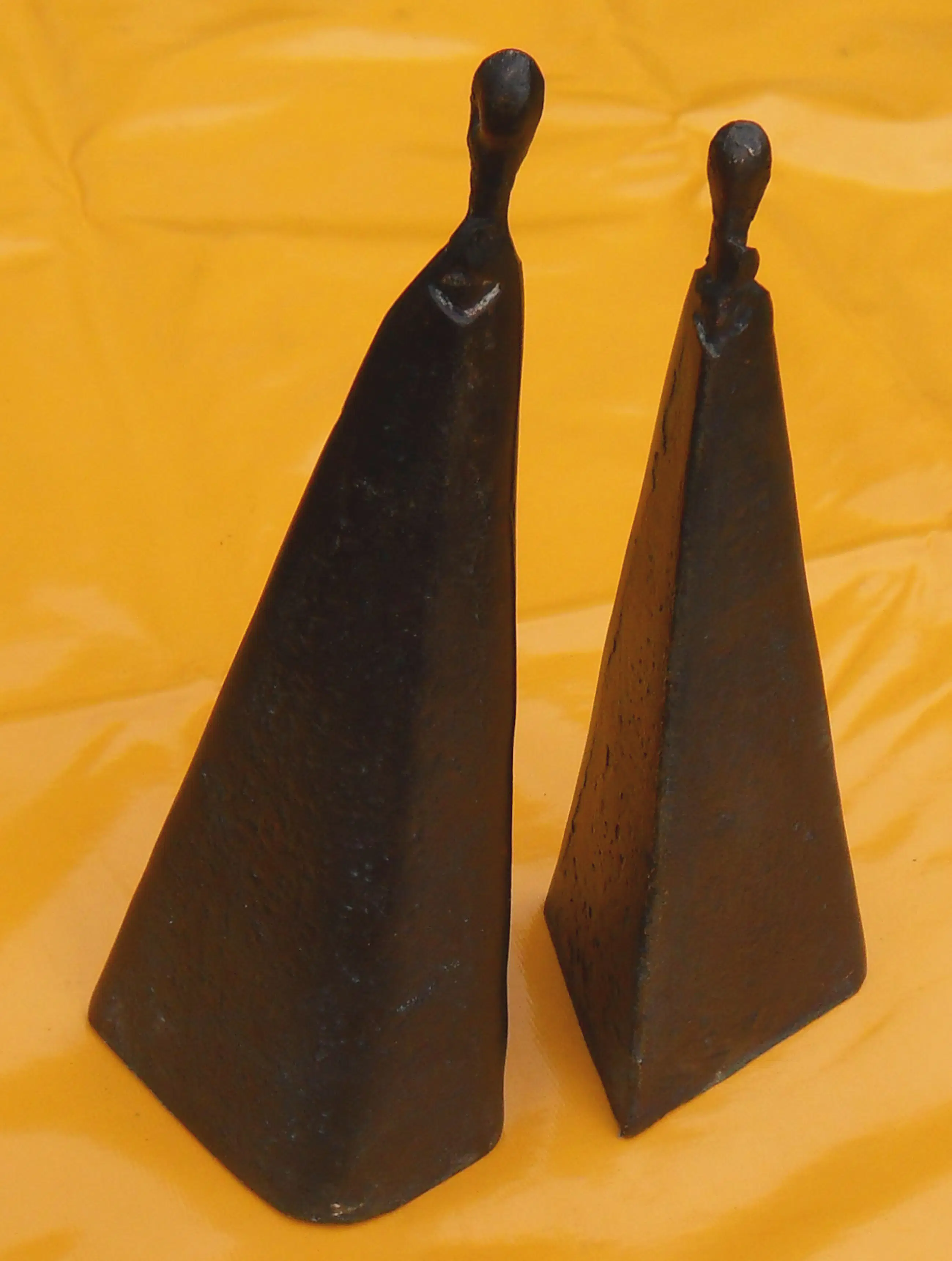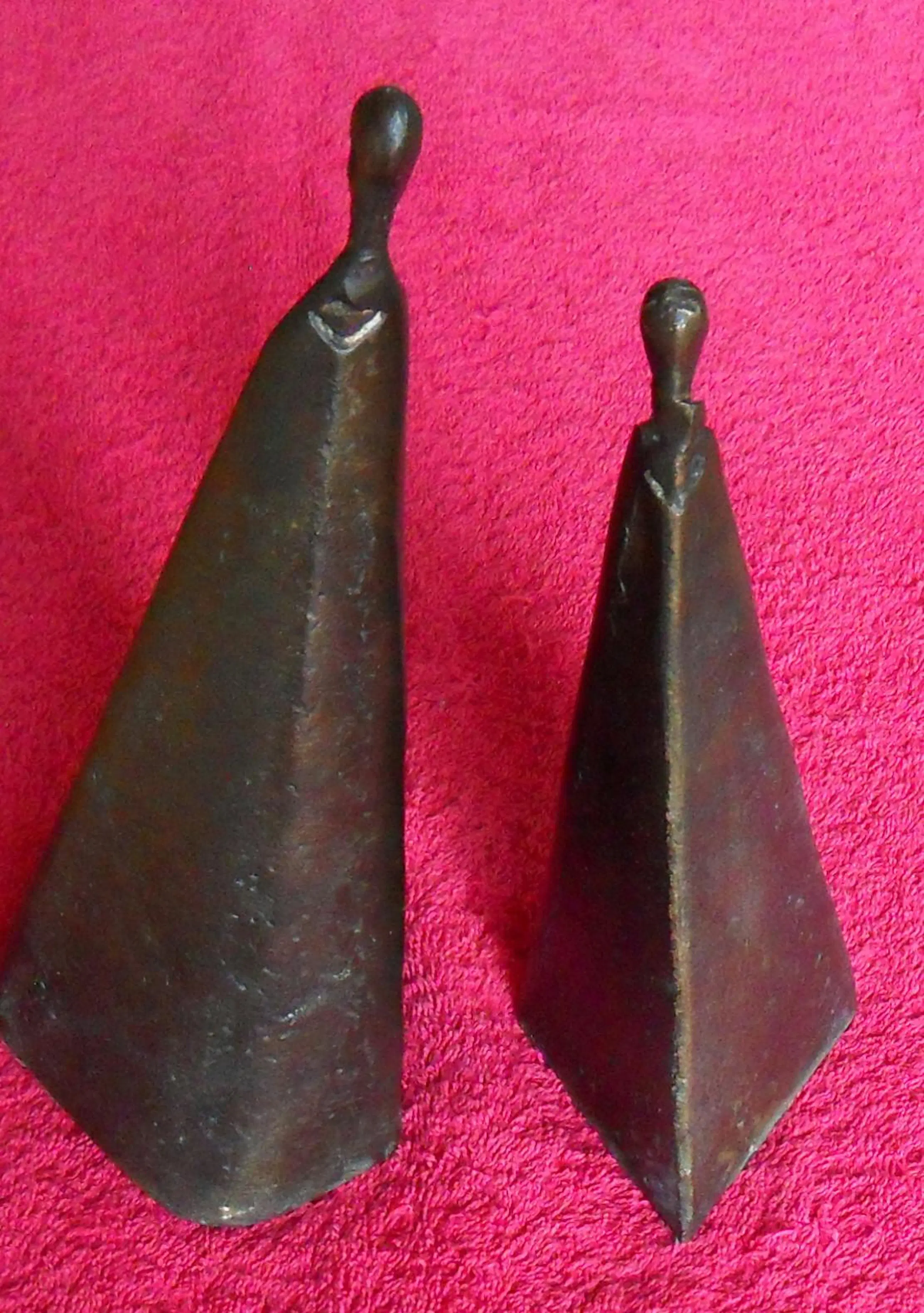 Twee sierlijke - abstract/moderne - bronzen vrouwenfiguren die afzonderlijk of in willekeurige combinatie met elkaar een opmerkelijk en exotisch beeld vormen