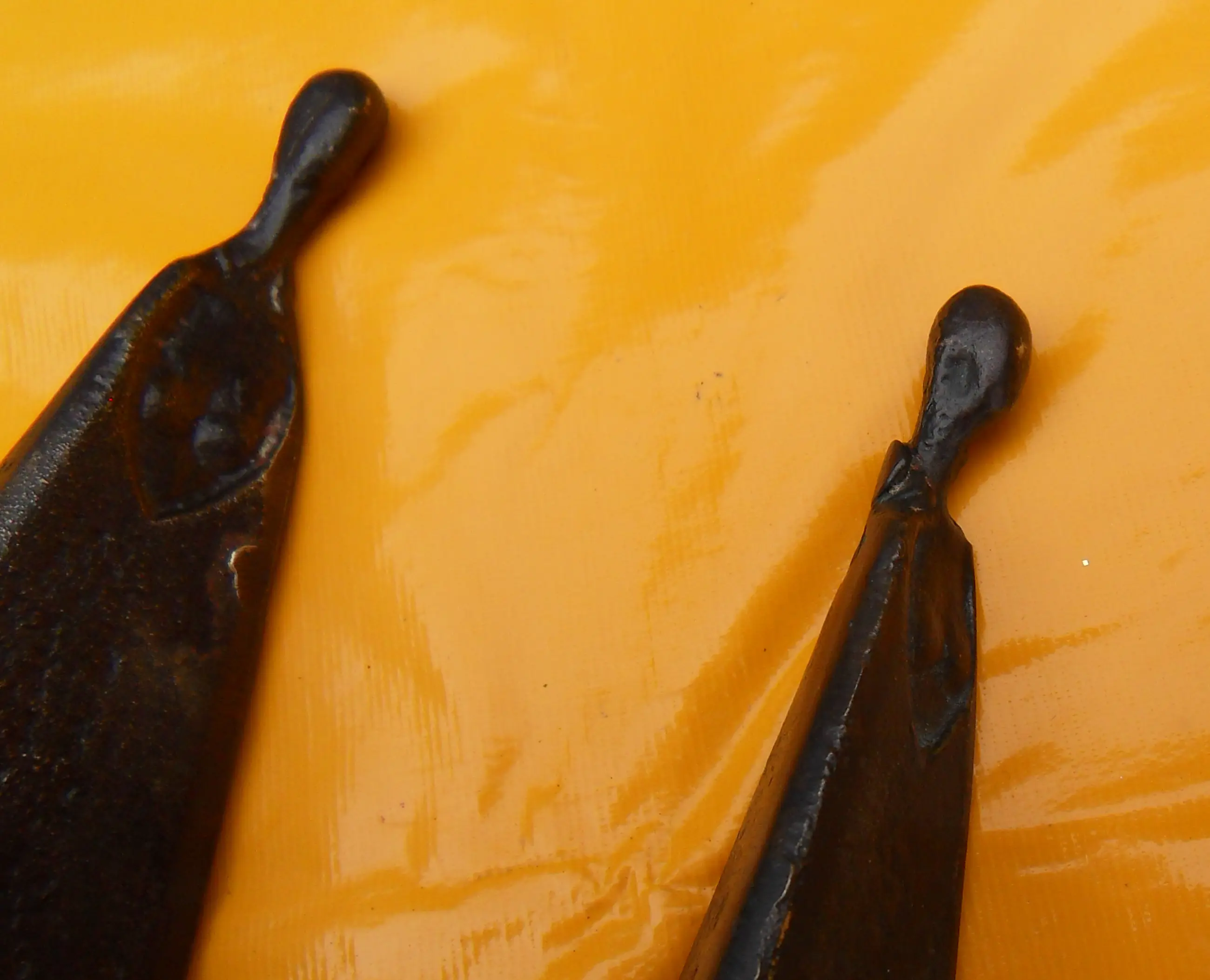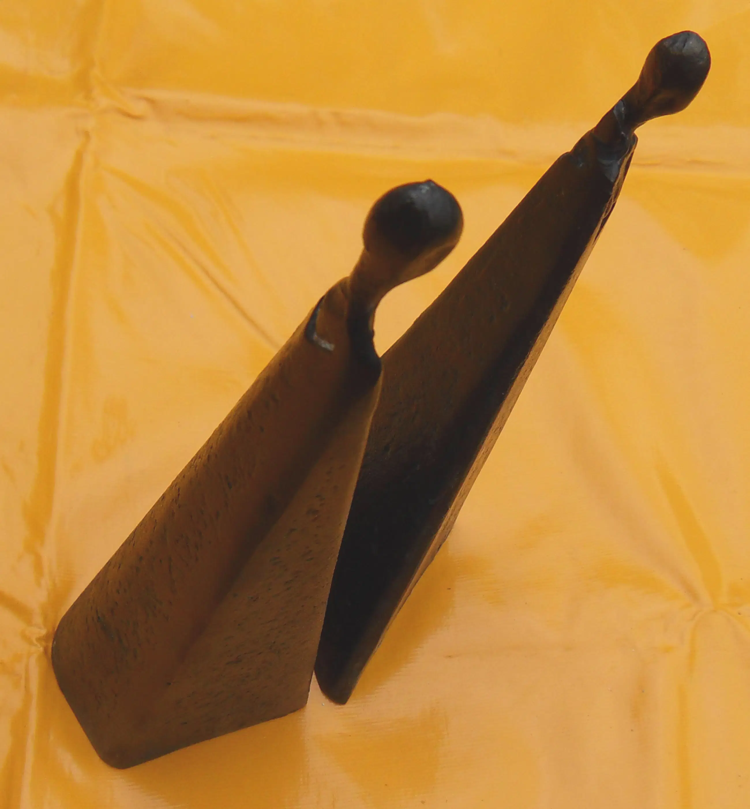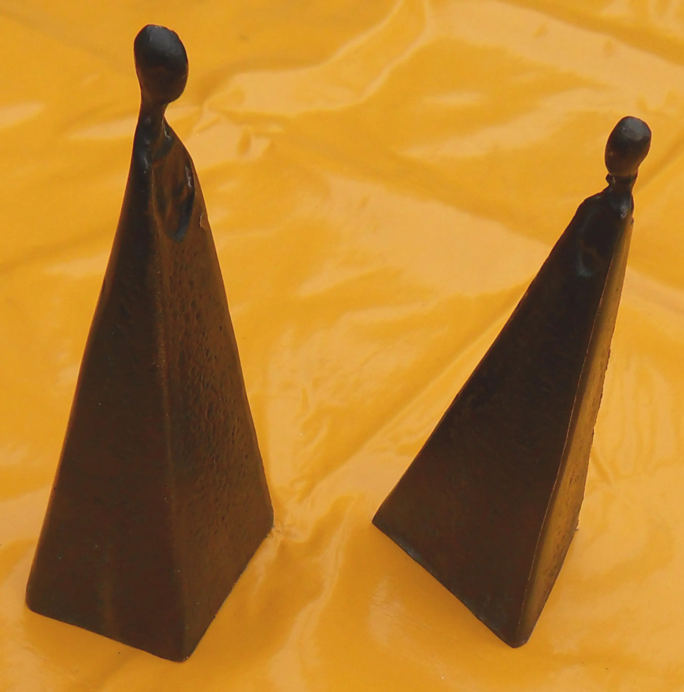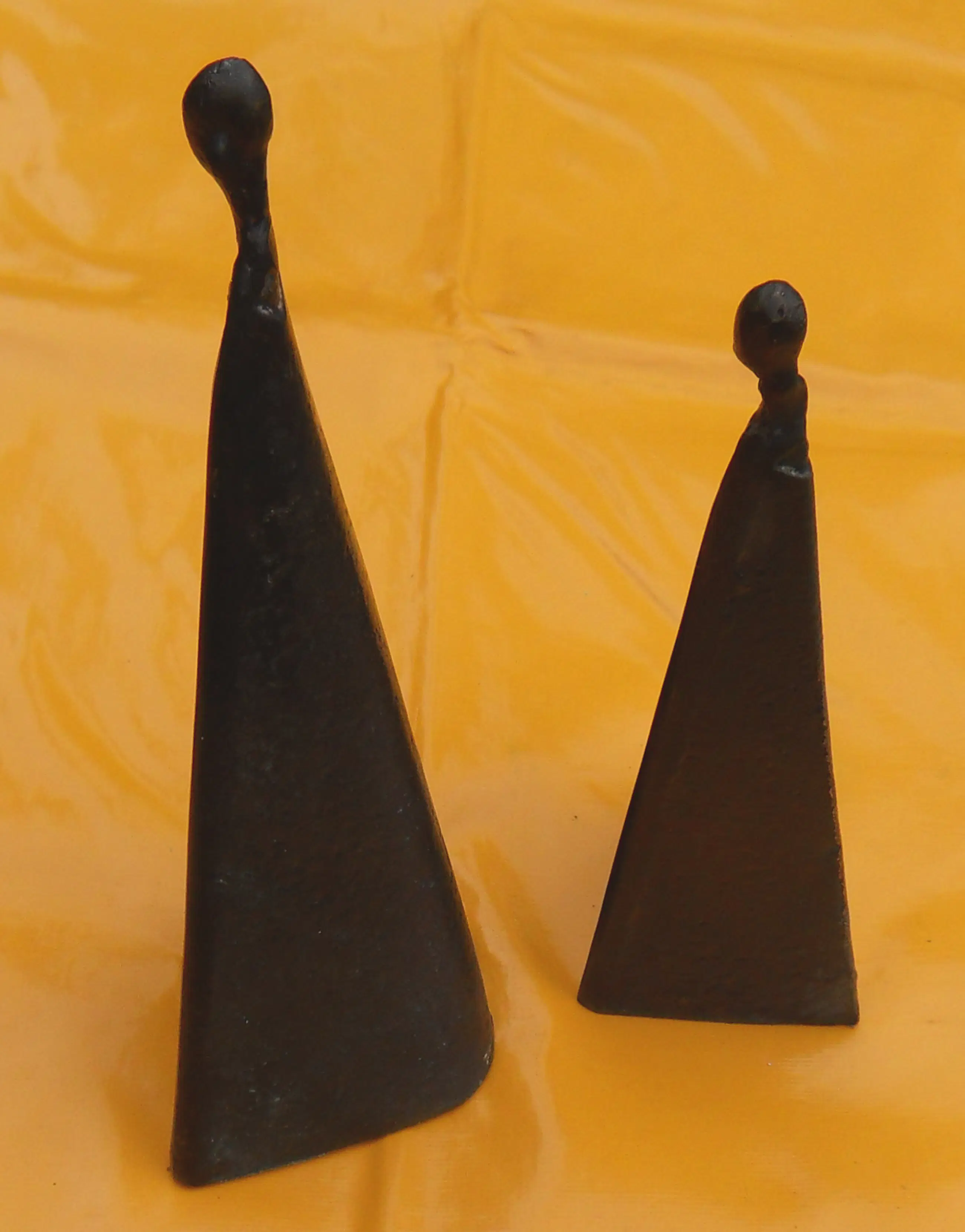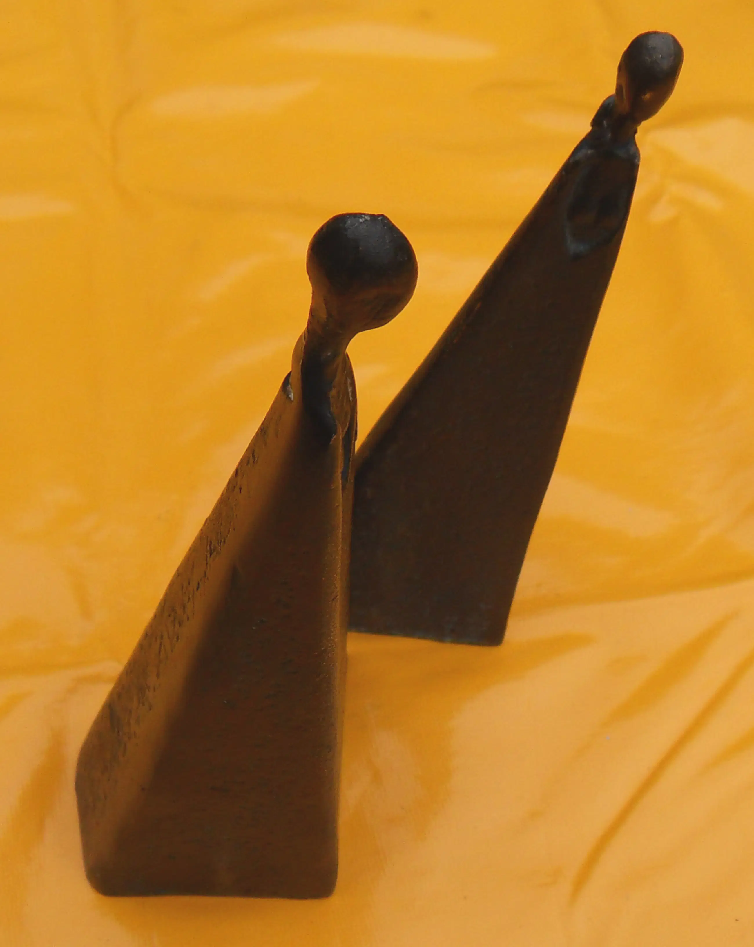 Twee sierlijke - abstract/moderne - bronzen vrouwenfiguren die afzonderlijk of in willekeurige combinatie met elkaar een opmerkelijk en exotisch beeld vormen