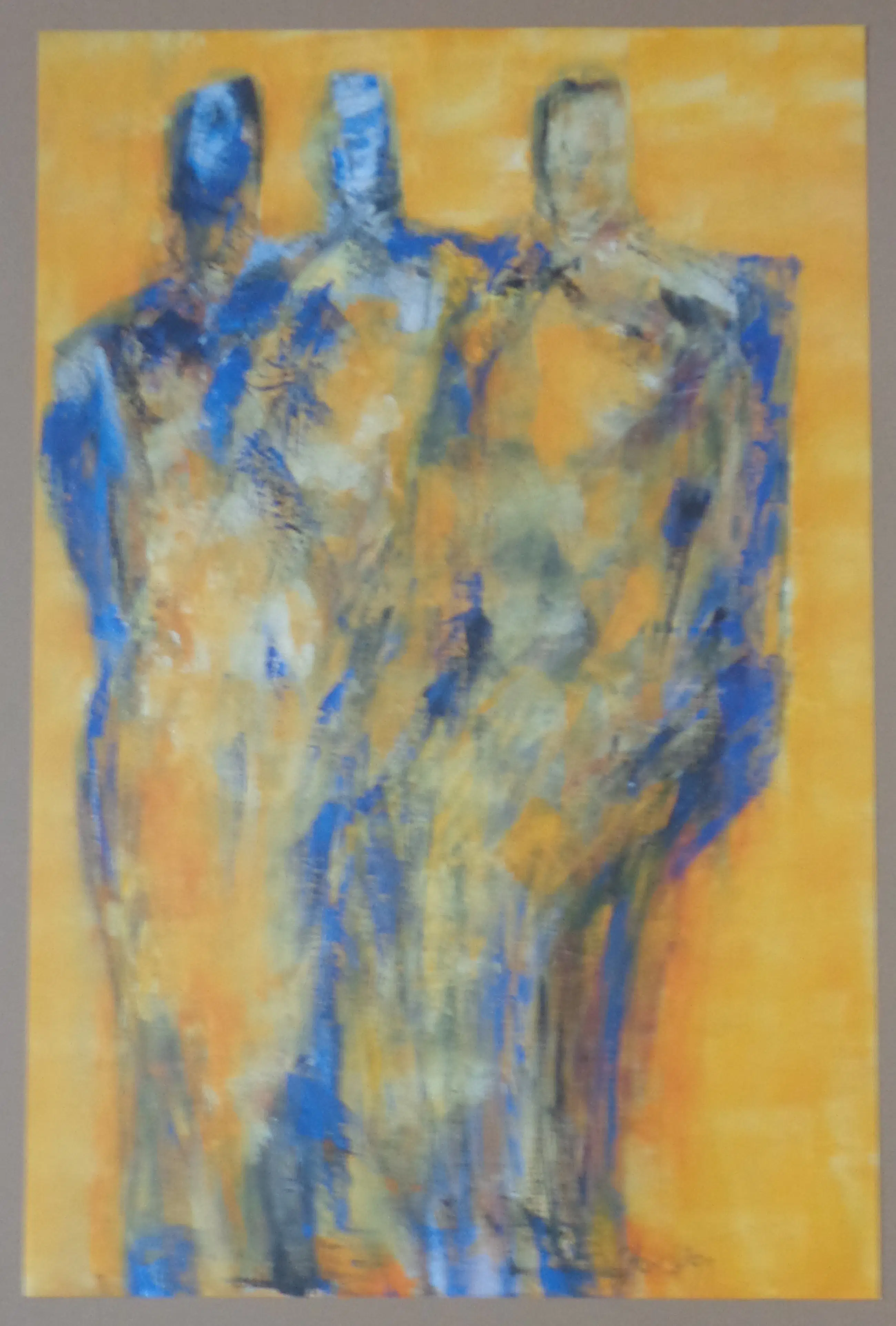 Sylvia Goebel (°1952). Figuren. Kleuroffset op dik papier (op basis van een schilderij uit 1994). Signatuur in de plaat. 1994 in de plaat. Geen nummering. Proper blad. Blad: 100x66cm.