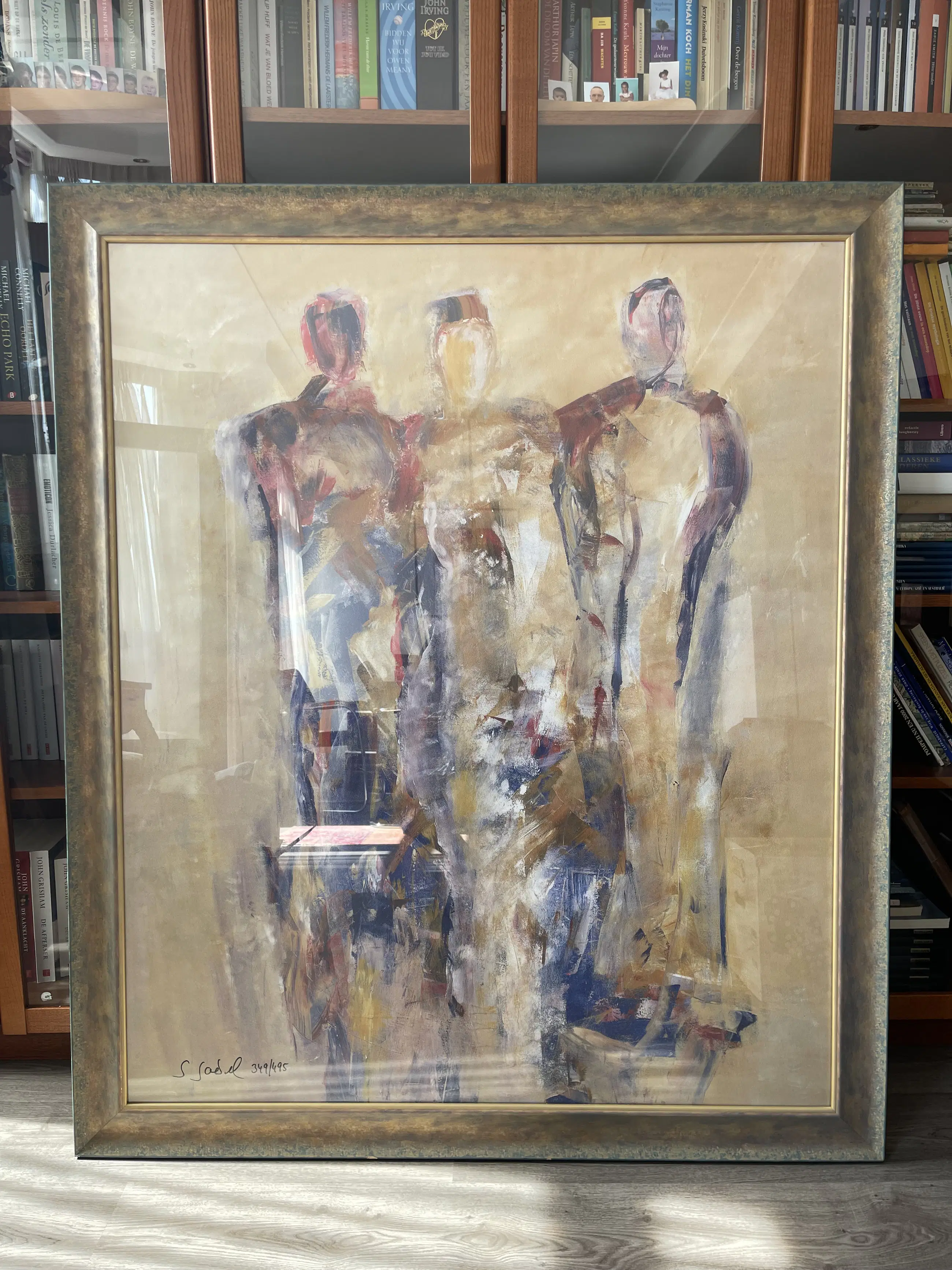 Prachtige zeefdruk getiteld 'Summer Trio' van de bekende kunstenares Sylvia Goebel. Dit is nummer 349 van een gelimiteerde oplage van 495. Een uniek kunstwerk dat een mooie toevoeging is aan elke collectie.