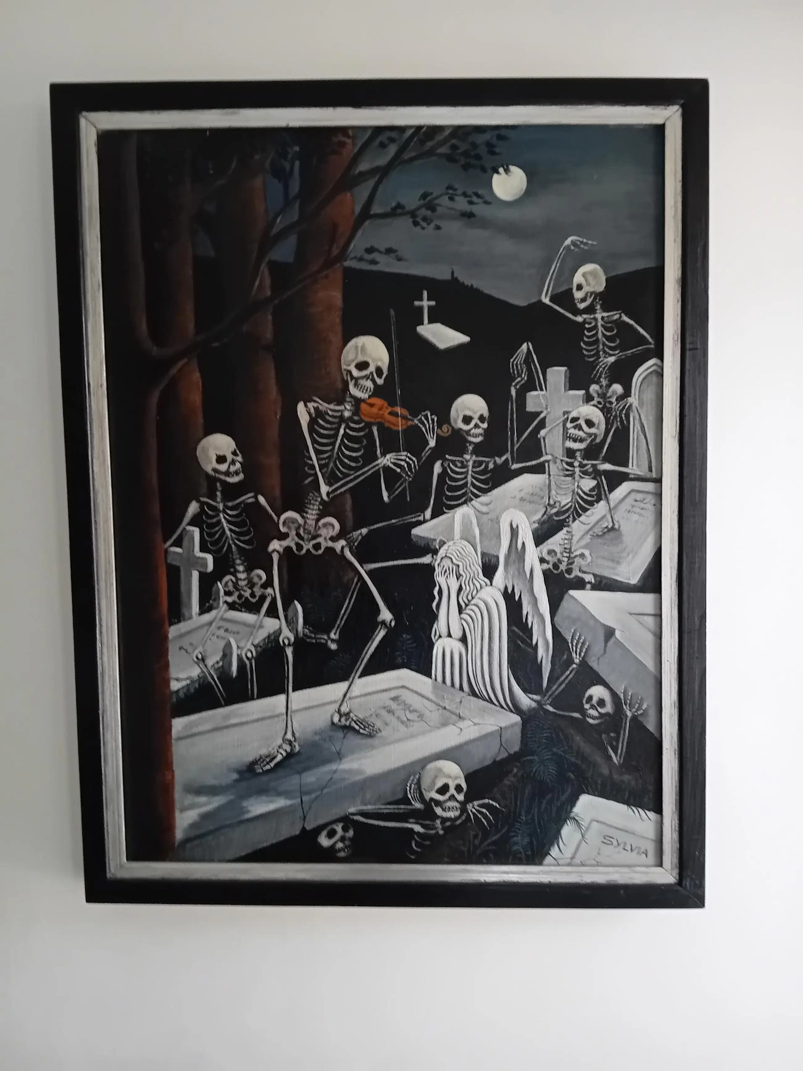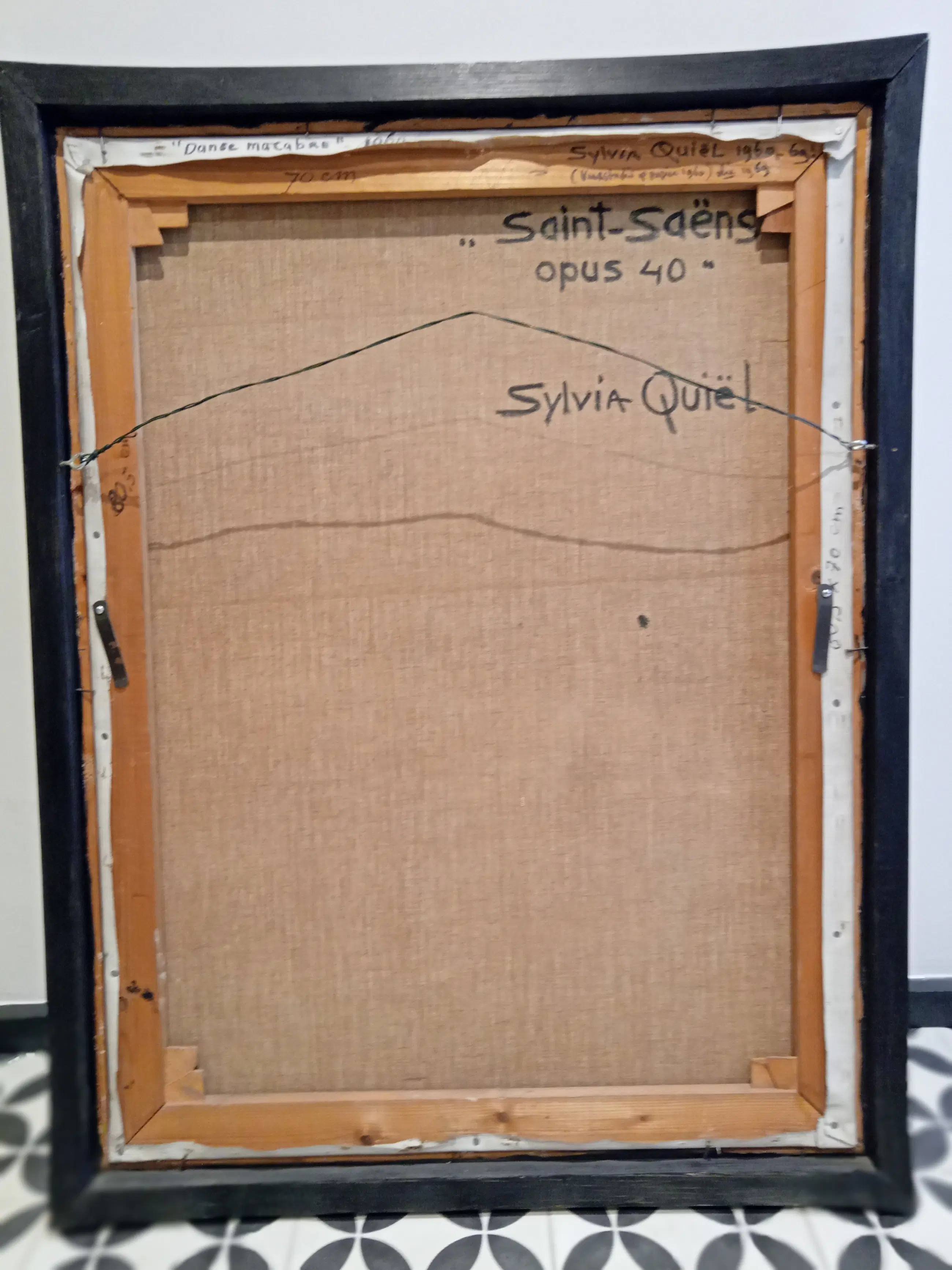 Silvia Willink- Quiel (1944), de vierde echtgenote van de schilder Carel Willink en beheerder van zijn nalatenschap, een gelauwerde beeldhouwster, schilderde naar een voorstudie op papier en geïnspireerd door het symfonische gedicht Danse macabre uit 1875 (Opus 40) van de Franse componist Camille Saint-Saens dit olieverfschilderij. Saint-Saens werd op zijn beurt geïnspireerd door een gedicht van de Franse dichter Henri Cazalis, vandaar de titel symfonisch gedicht. Silvia Quiel sluit met dit werk aan bij het al eeuwen bestaande thema van de dodendans in de beeldende kunst, dat zijn oorsprong vindt in de veertiende eeuw en waarvan de houtsnede van Hans Holbein uit 1525 als een van de bekendste voorbeelden geldt.