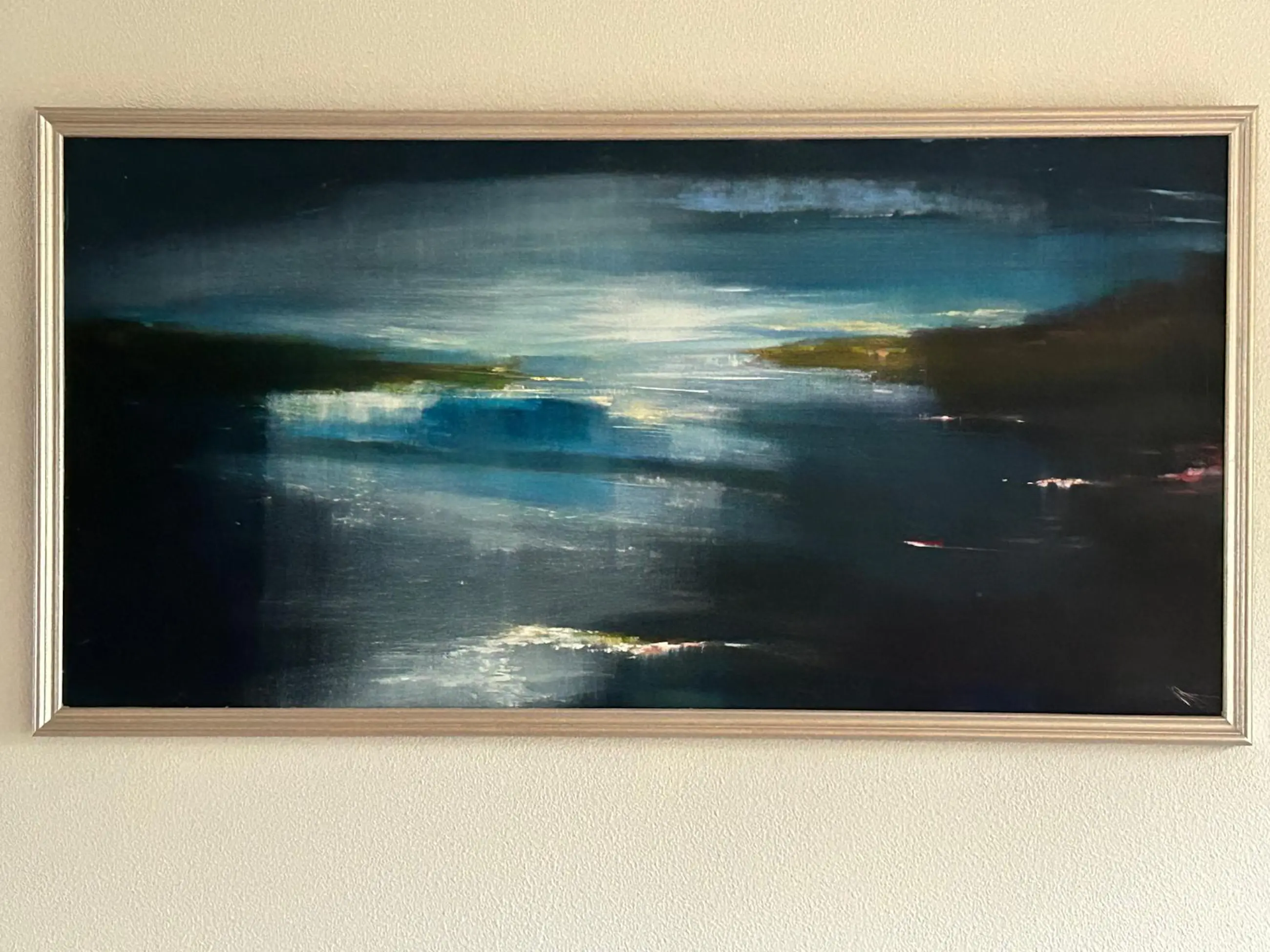 Olieverf schilderij van een zee/bergzicht, geschilderd door de Poolse kunstschilder : S. Lachacz. Geb. In 1955. Catalogus wordt erbij geleverd, met v.r.n.l. abstracte Schilderijen. Ook de nota van de Galerie kan worden bijgevoegd.