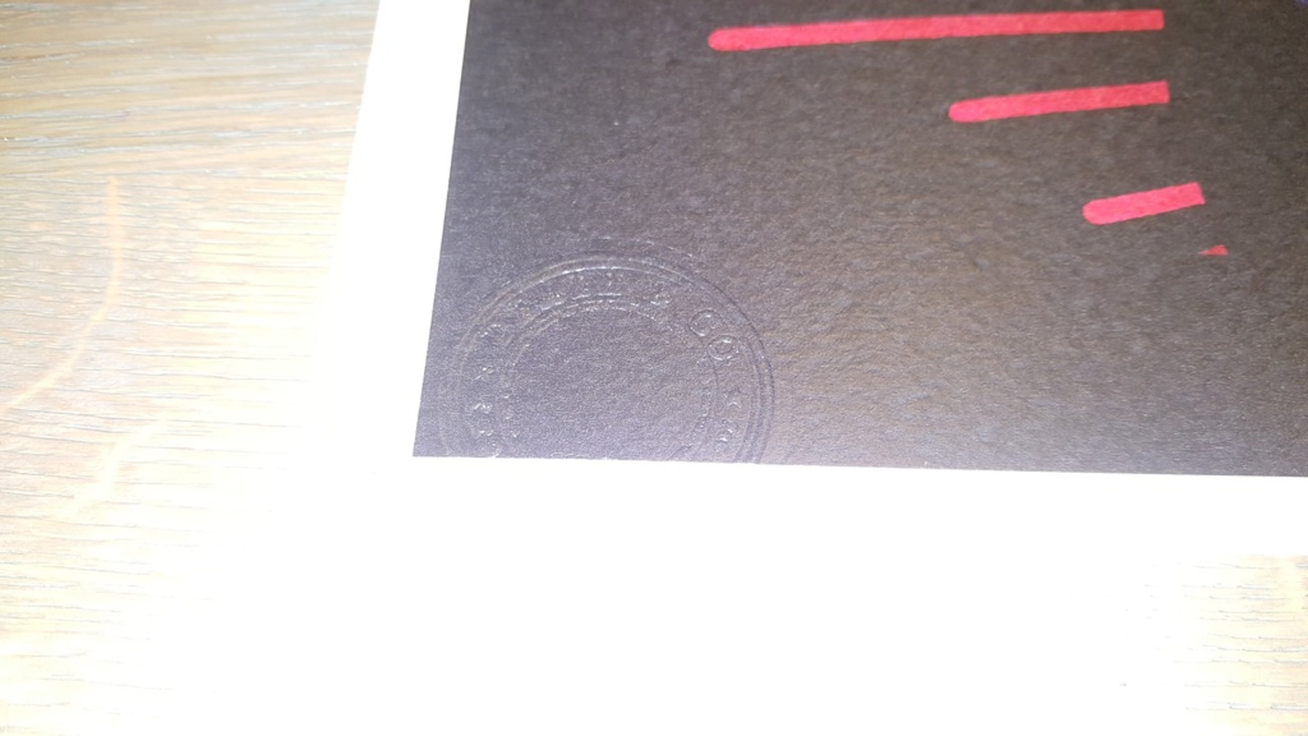 Gesigneerd: met de hand gesigneerd en gedateerd door droogstempel