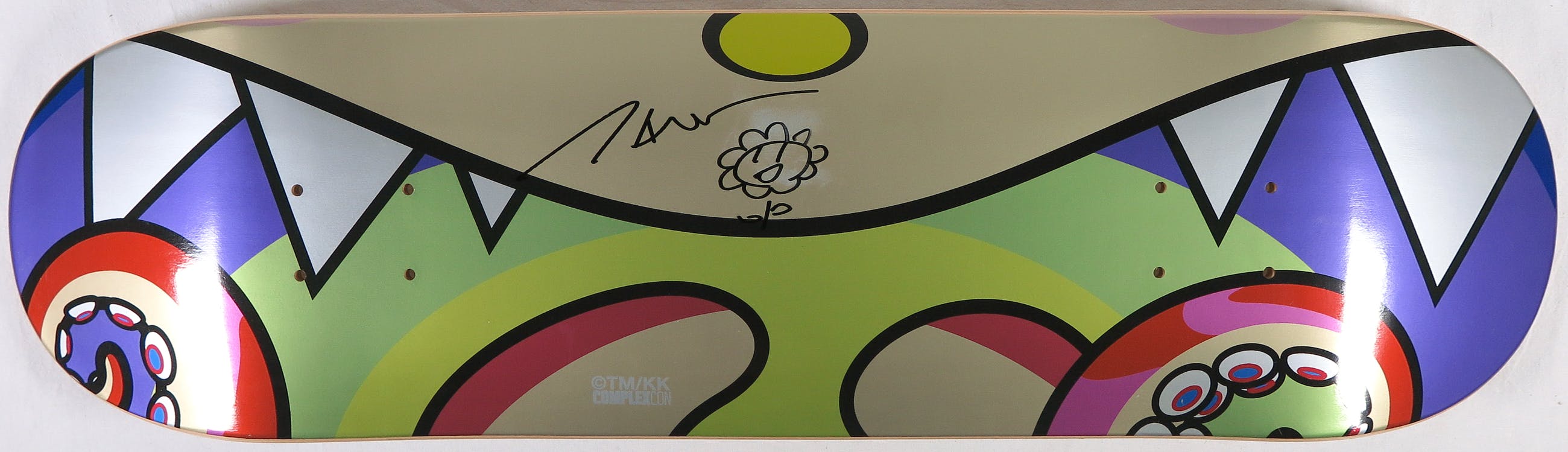 Limited edition skatedeck door Takashi Murakami. Exclusief gemaakt voor en verkocht op de Complexcon-conventie in 2017. Door Murakami voorzien van een bloementekening en signatuur in stift.