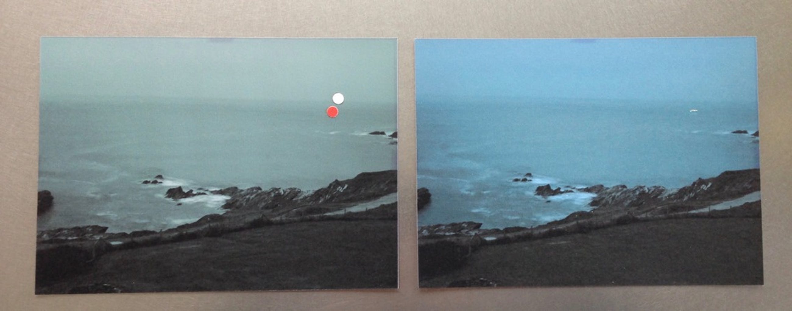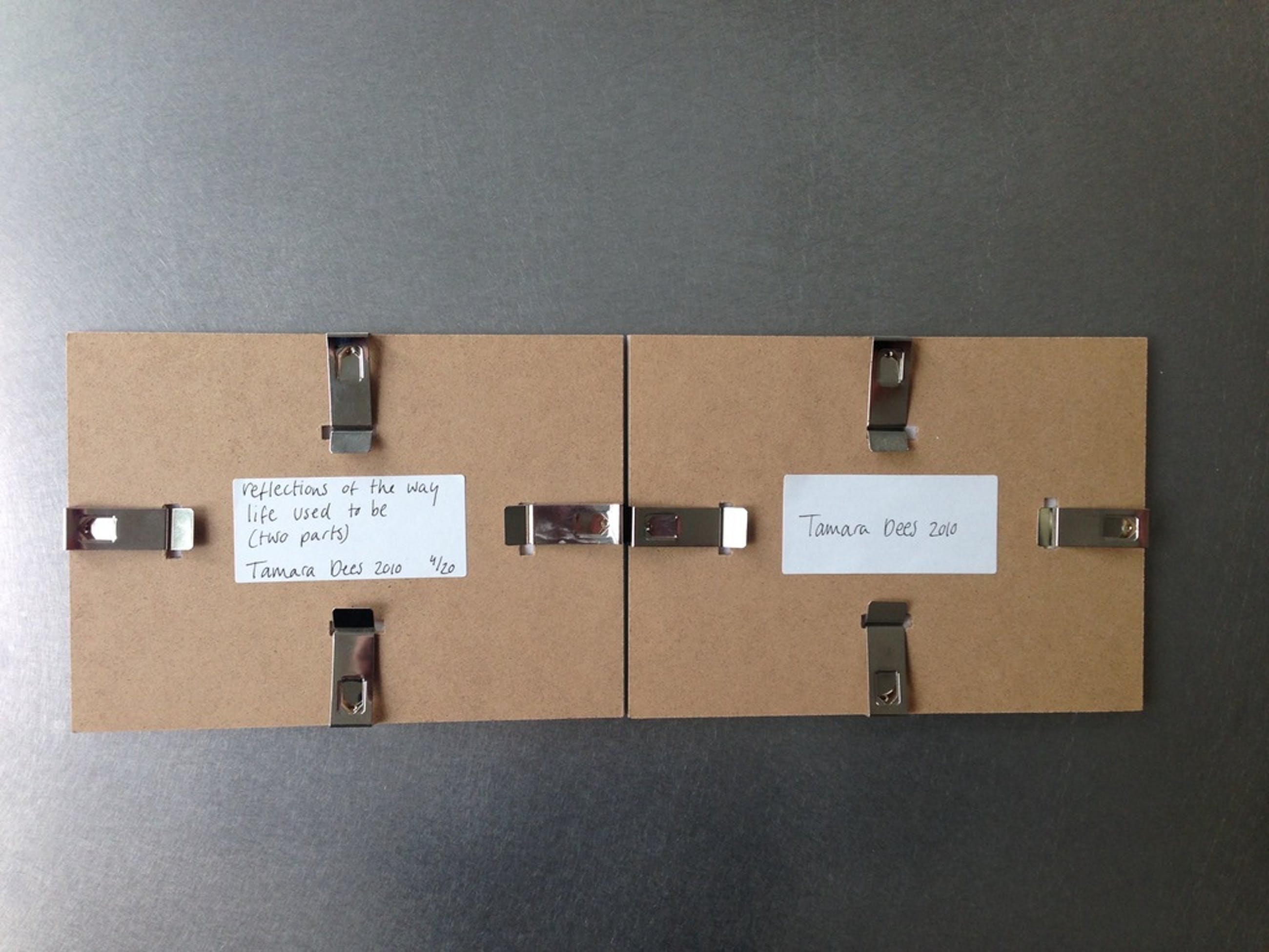 Het aangeboden werk is een gesigneerde multiple (4/20) uit 2010, bestaande uit twee ingelijste beelden (bewerkte foto's); 18 X 13 cm per deel. Het is in uitstekende staat.