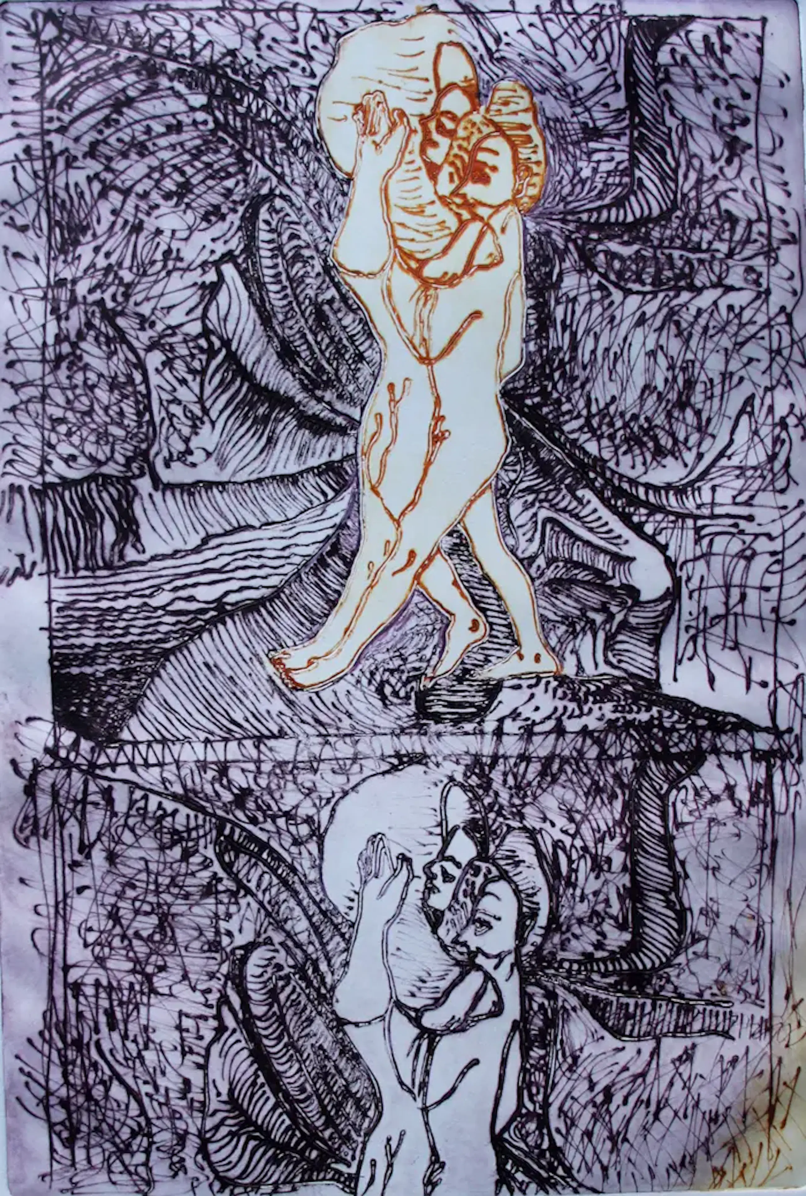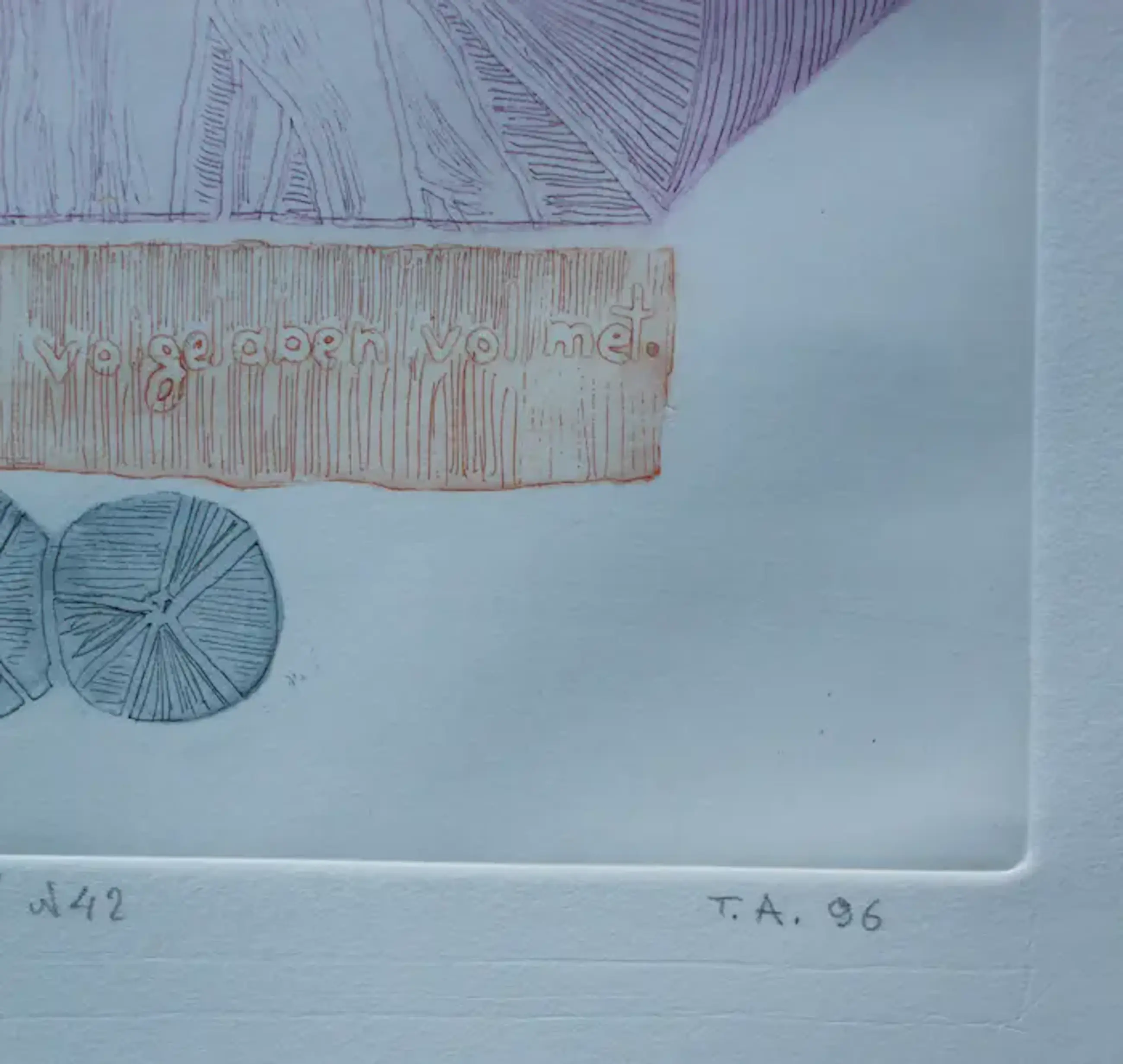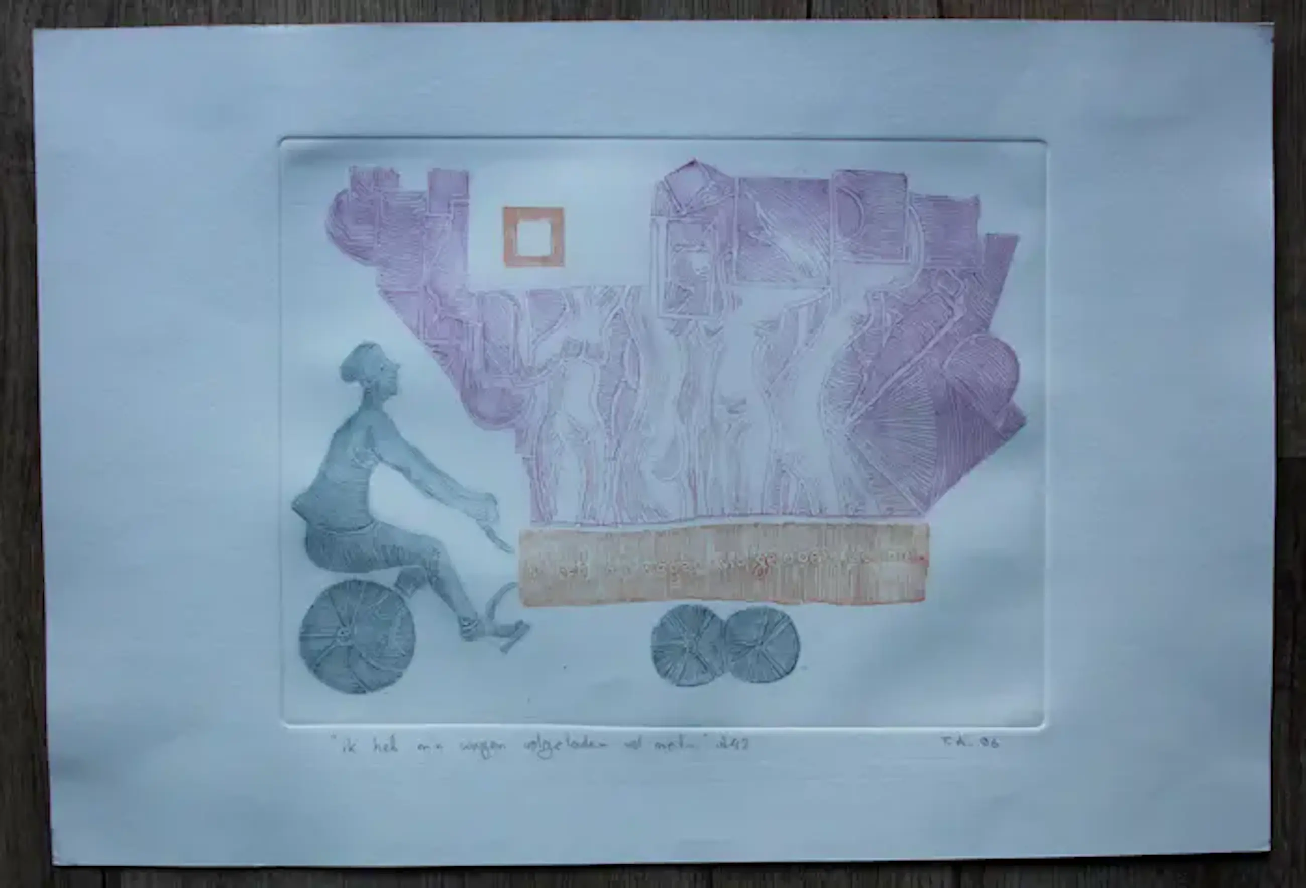 2 etsen van Tamaz Abashidze. Jaar: 1996 en 1997. Titel: 1) ik heb m'n wagen volgeladen met... 2) en lifdeskskader. Afmetingen blad 1: H33 x b48,5cm, Afmetingen voorstelling: H23 x b30 cm. 2)Afmetingen incl passe-partout: H56 x b42,5cm, afmetingen voorstelling: H45 x b30 cm. Beide werken zijn rechts onderaan gesigneerd door de kunstenaar. De authenticiteit van het aangeboden werk wordt volledig gegarandeerd. Een certificaat van echtheid kan, op aanvraag, worden gemaild.