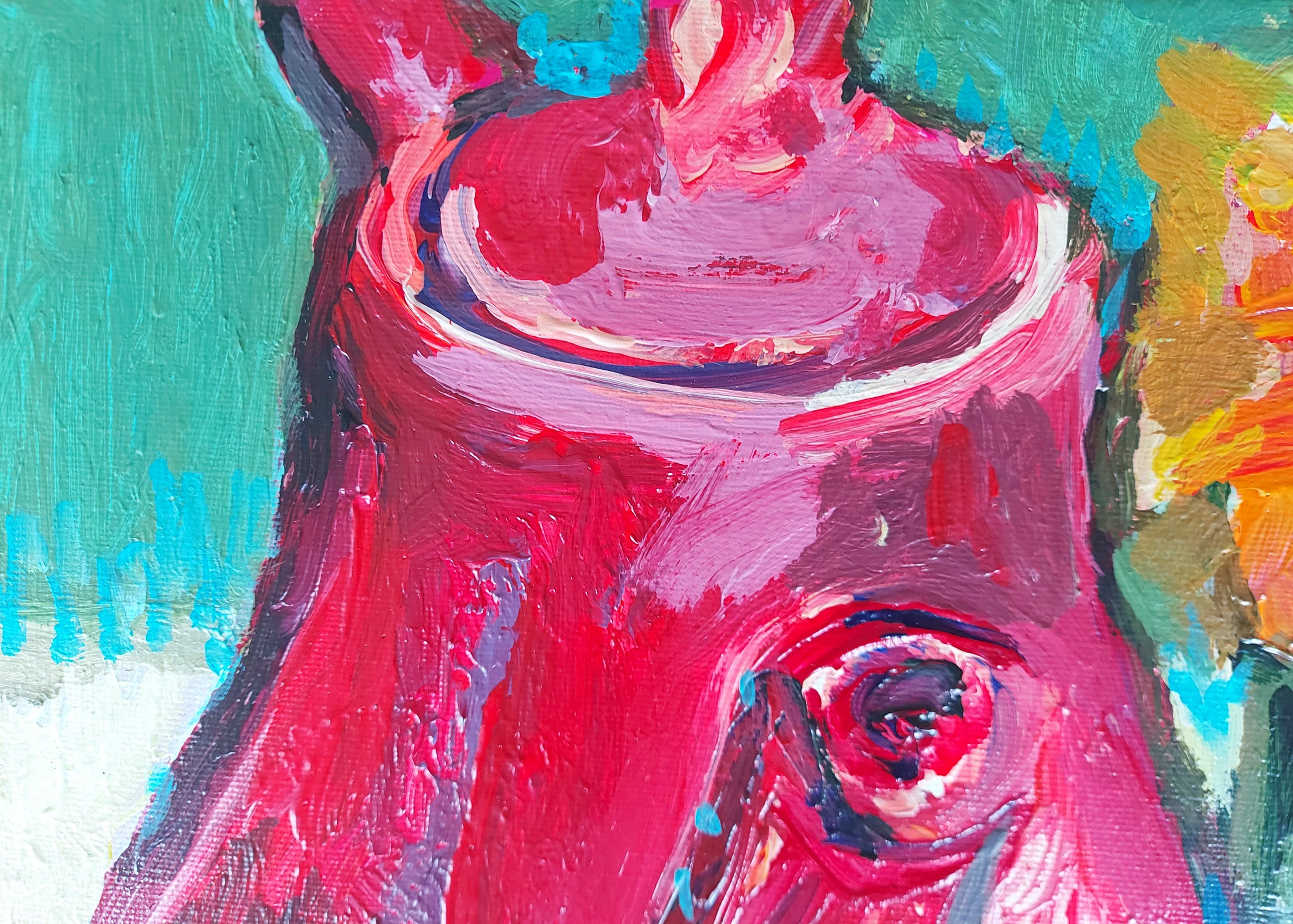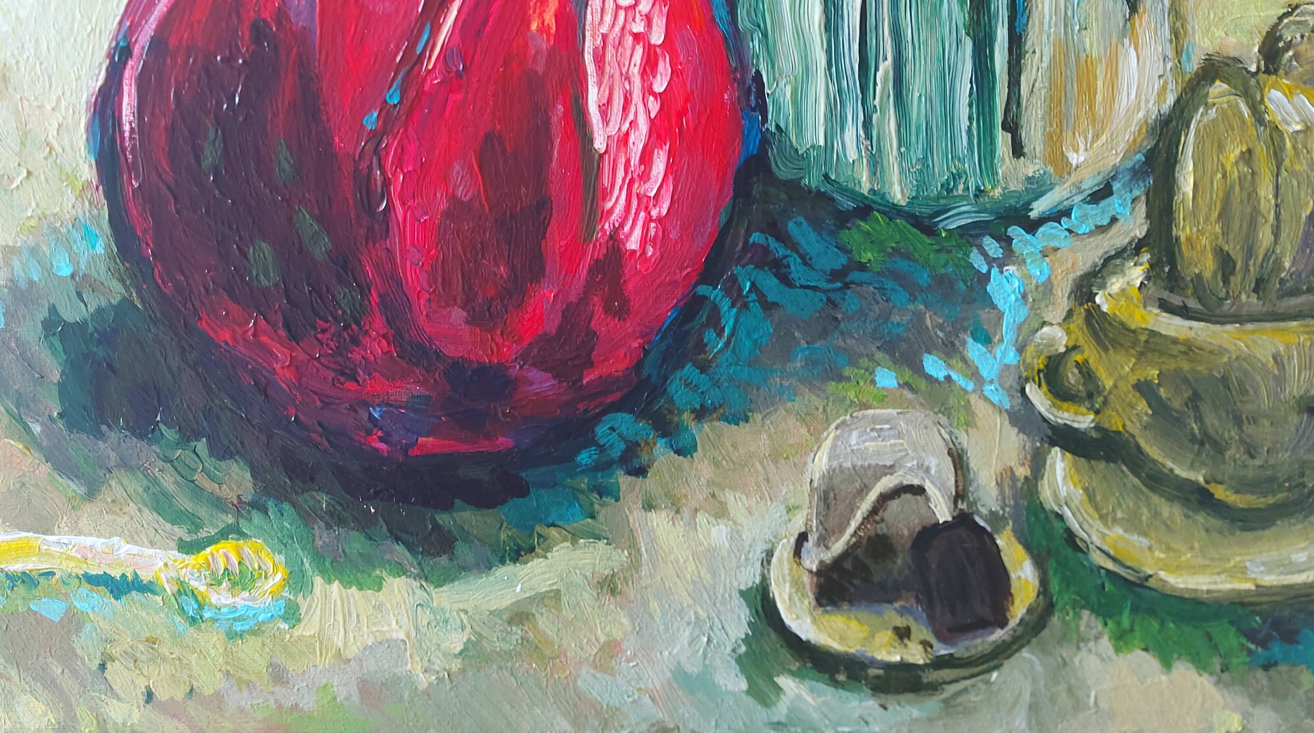 Expressionistisch werk op canvas 2019, "Breakfast" (in serie geschilderd) van de Nederlandse kunstenaar Tanja Koelemij. Grote voorbeelden van Koelemij zijn de Post-impressionisten. Met name een losse toets en het kleurgebruik inspireren haar, maar natuurlijk gebruikt ze wel haar eigen losse handschrift in haar werk. Soms probeert ze de controle wat los te laten, snel en met grotere bewegingen en kwasten te werken. Het resultaat is vaak een energiek, losser werk van een moment opname.
