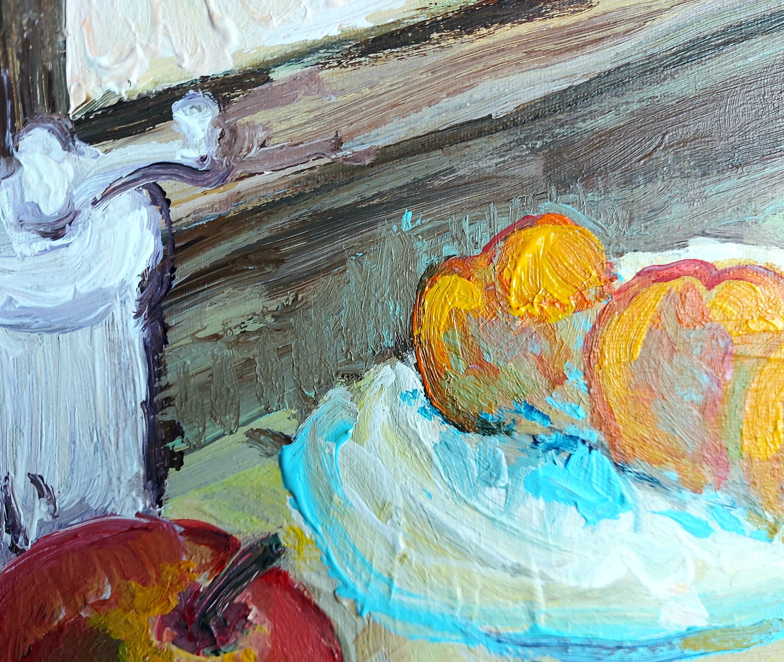 Expressionistisch werk op canvas 2018 "Bright morning" van de Nederlandse kunstenaar Tanja Koelemij. Grote voorbeelden van Koelemij zijn de Post-impressionisten. Met name een losse toets en het kleurgebruik inspireren haar, maar natuurlijk gebruikt ze wel haar eigen losse handschrift in haar werk. Soms heel energiek dan weer woeliger.