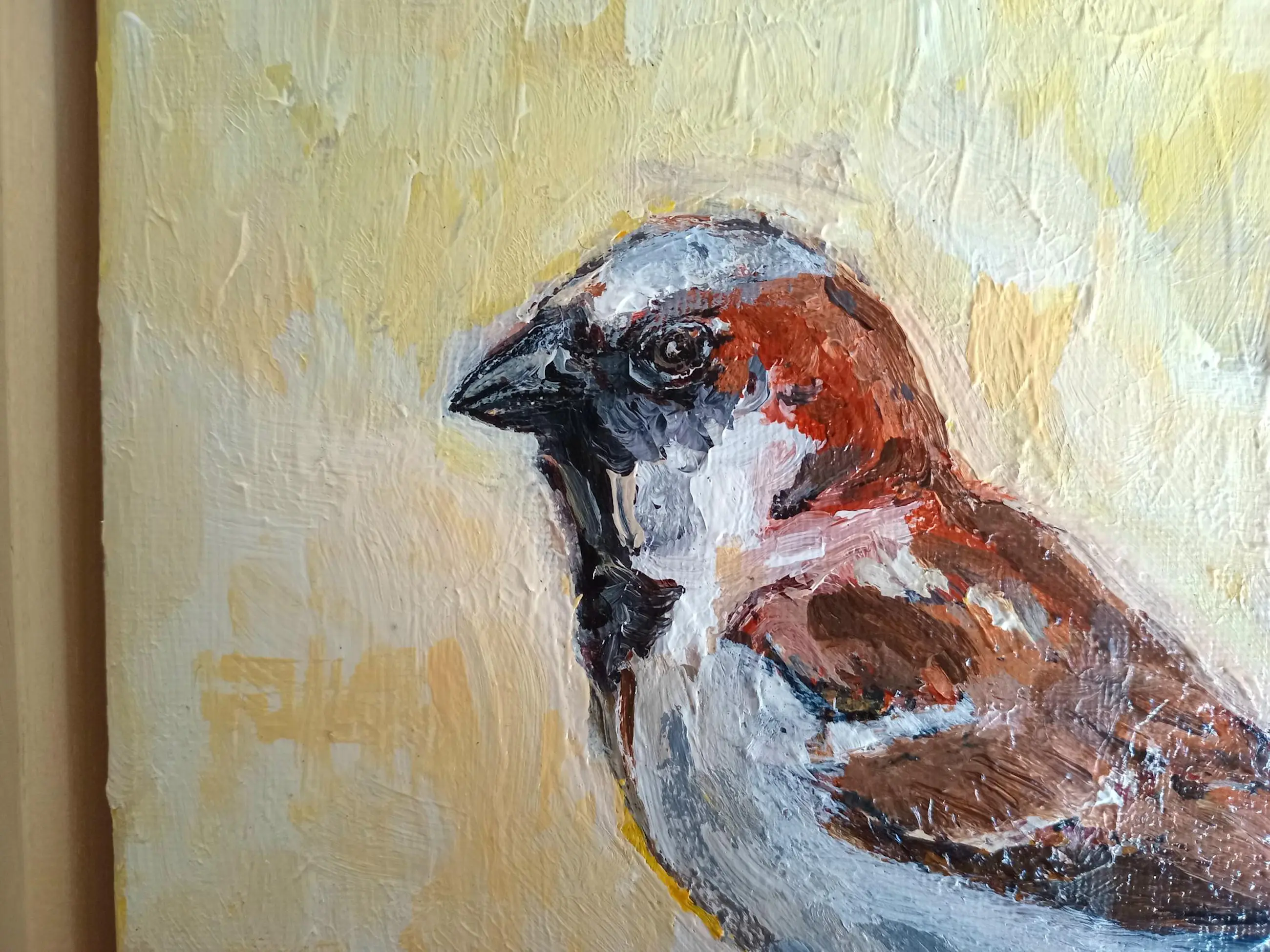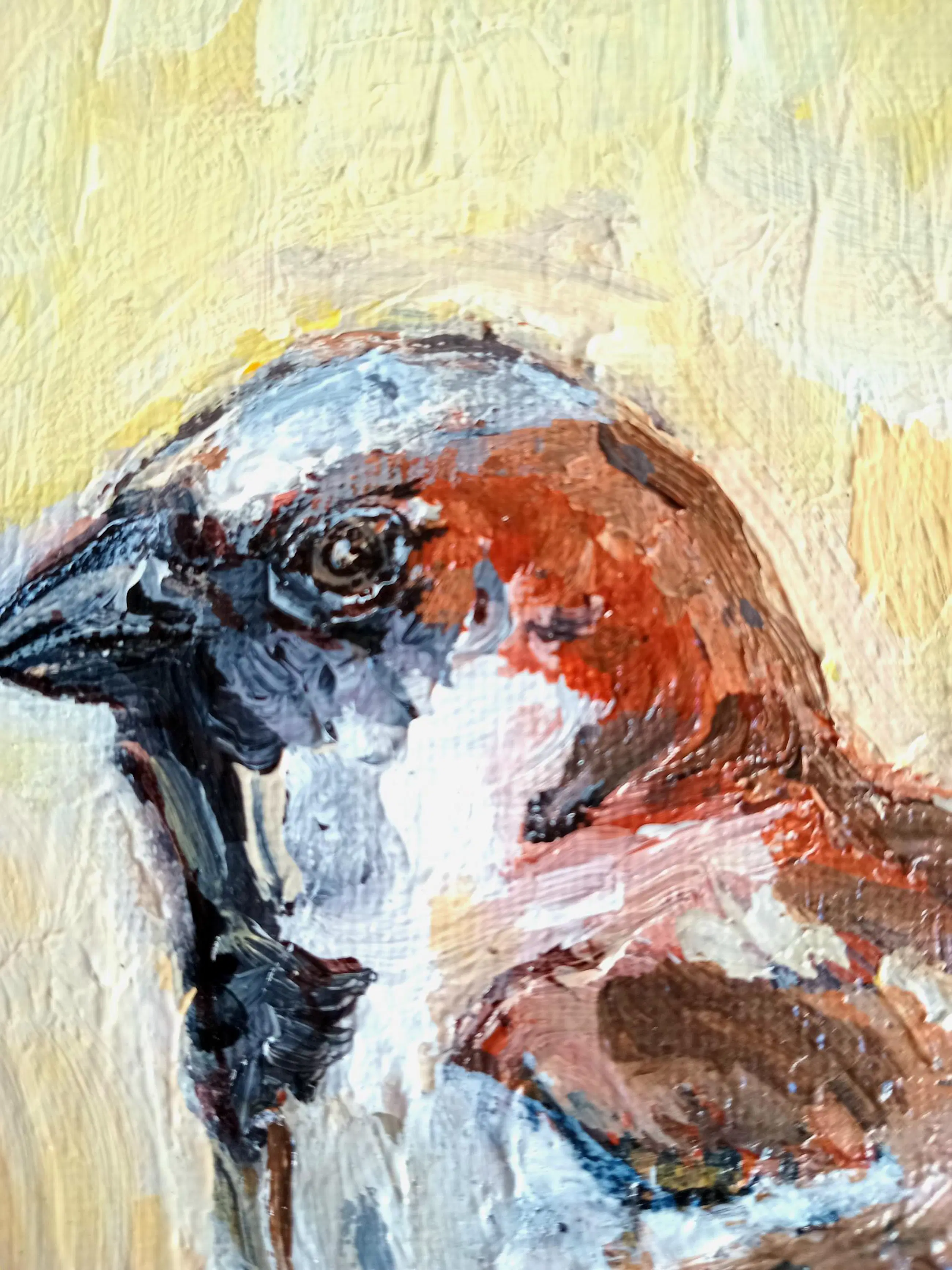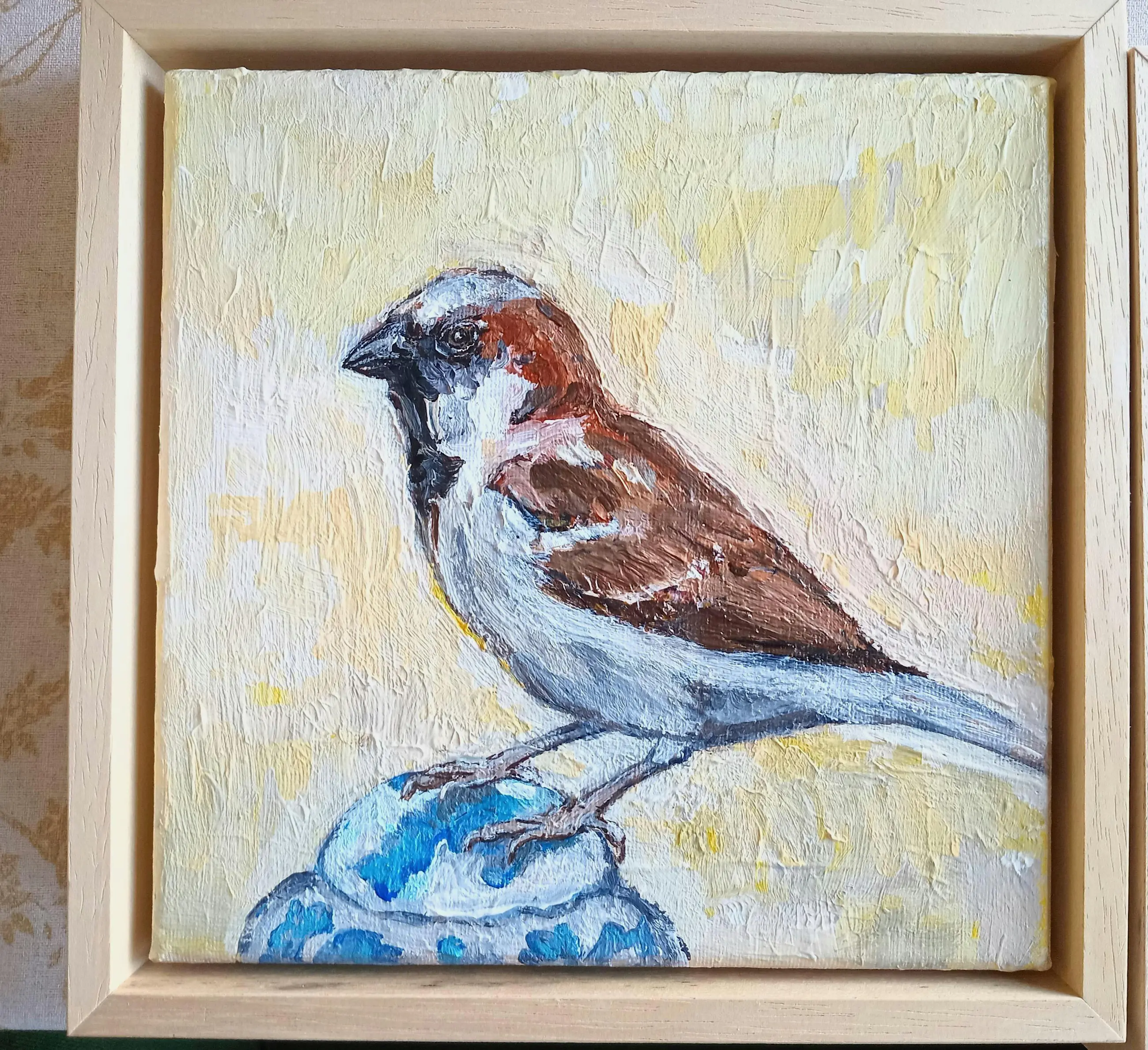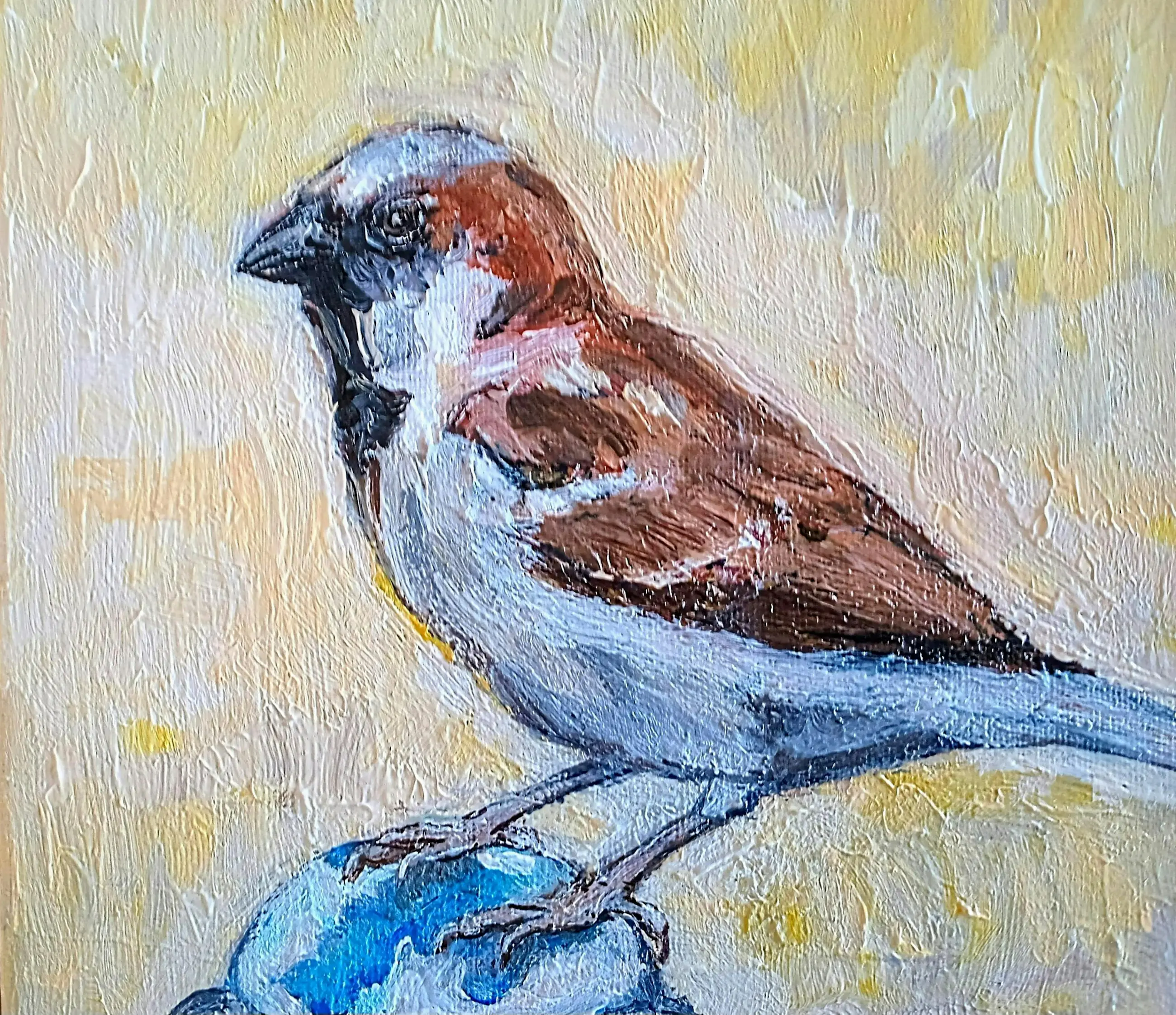 "Musje 2" komt uit de serie "Vogeltjes" (2024) van de Nederlandse kunstschilder/illustratrice Tanja Koelemij