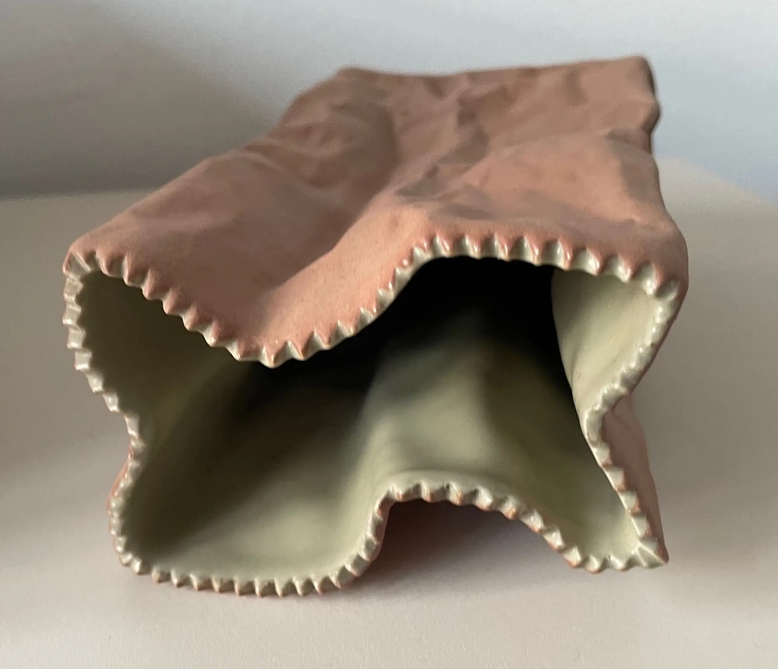 Mid Century Paper Bag Vase Design door Tapio Wirkkala Finland voor Rosenthal Keramiek uit de jaren 70