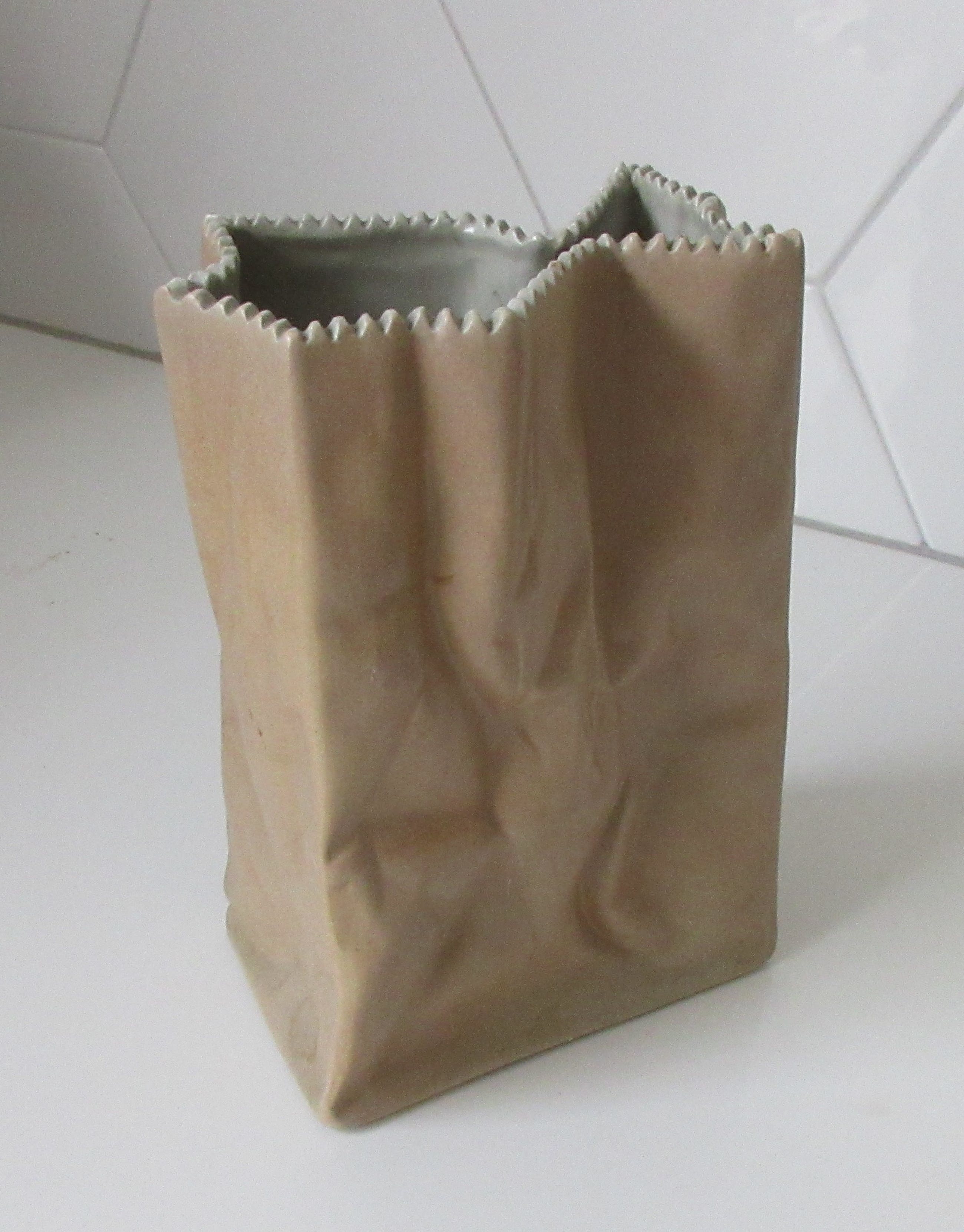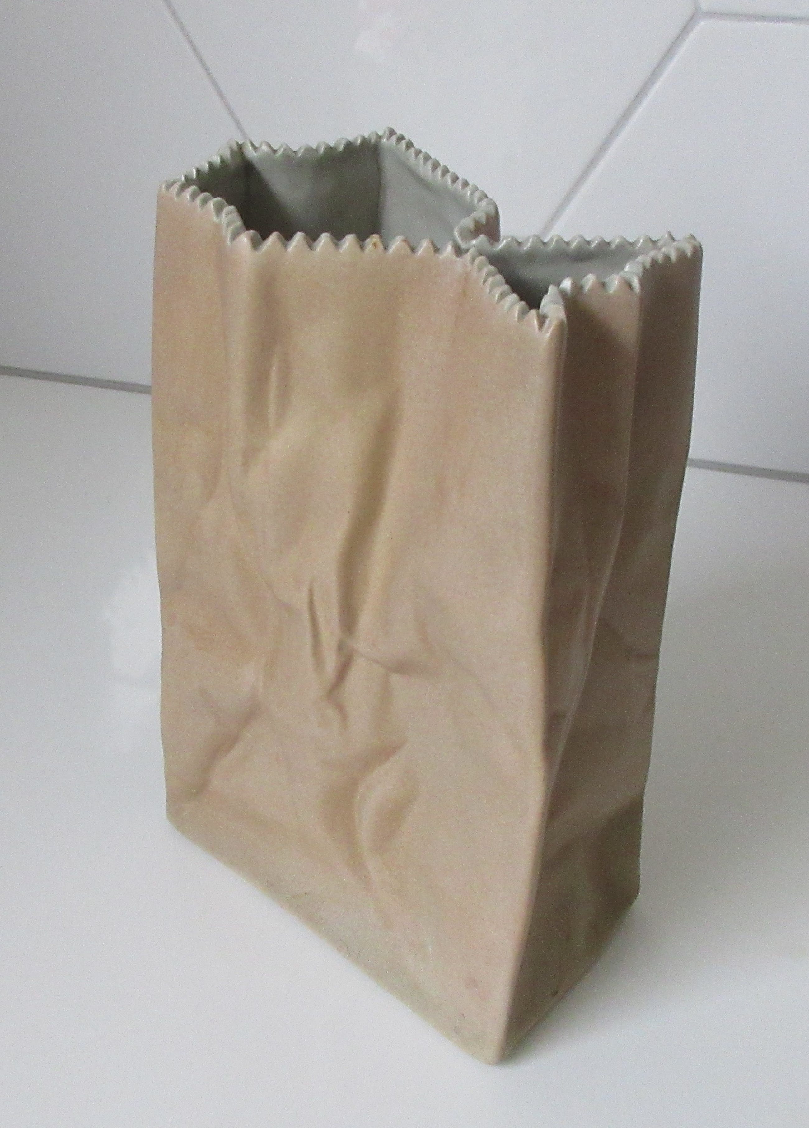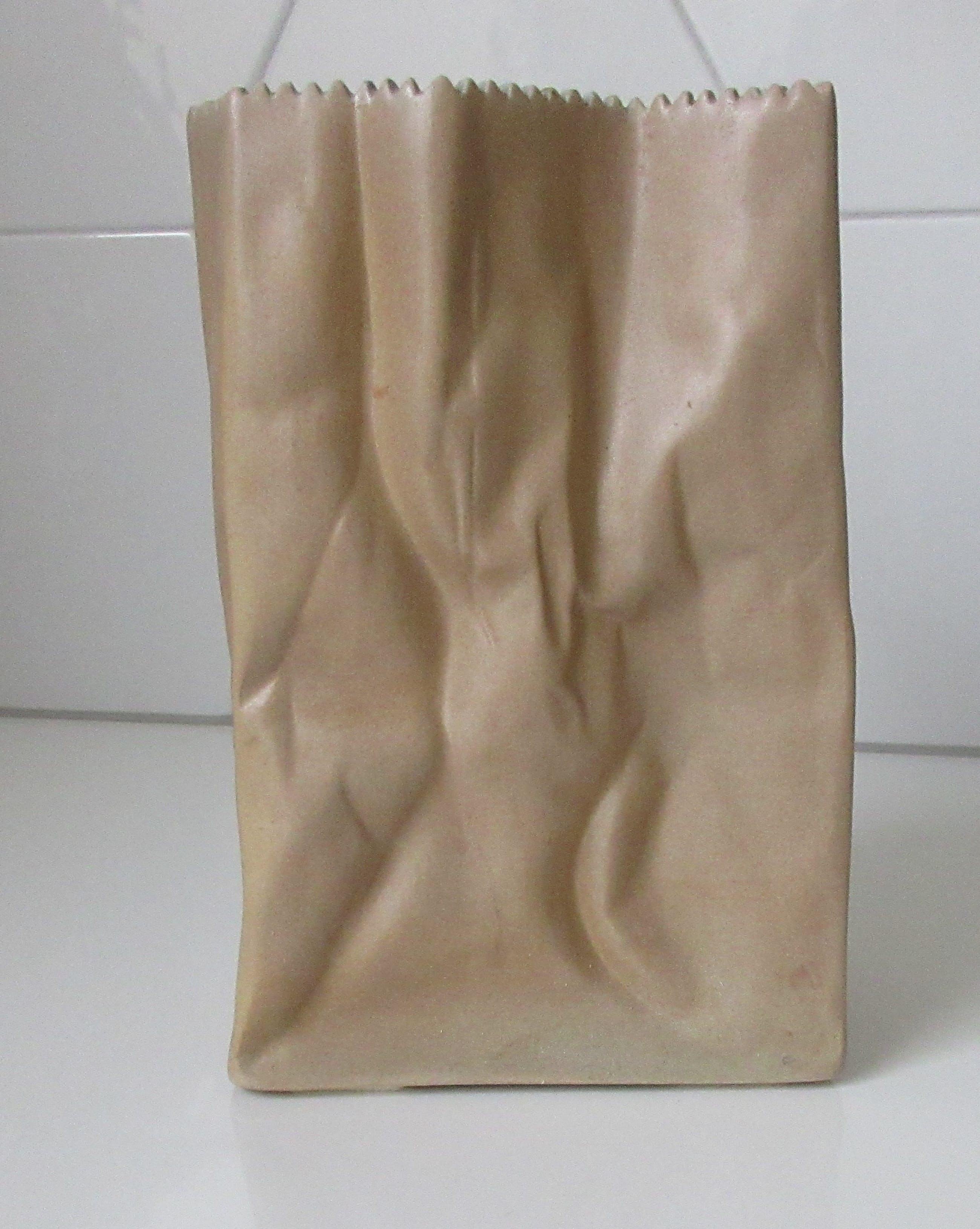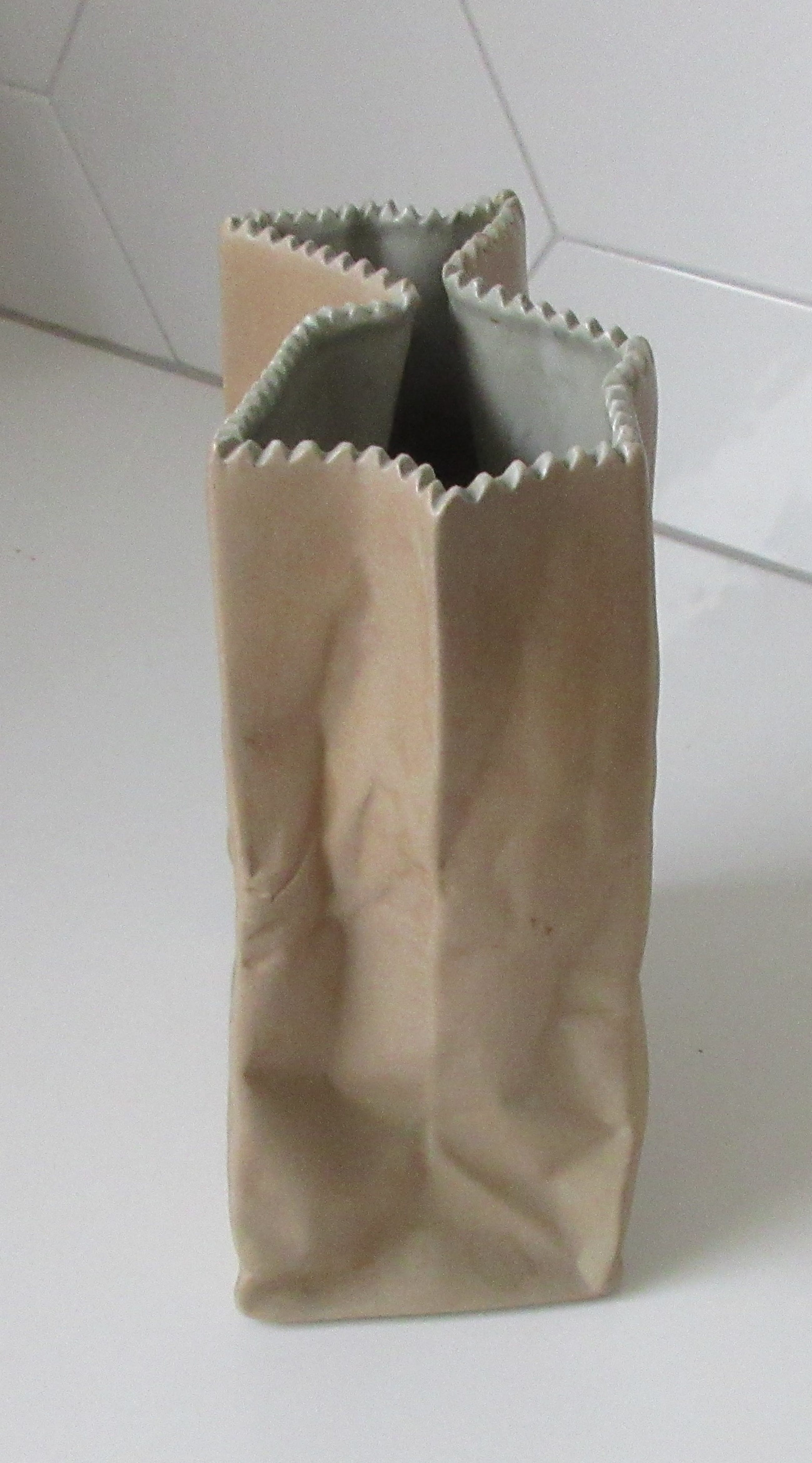 Steengoed Pop Art "Papieren zak vaas" voor Rosenthal, ontwerp Tapio Wirkkala in 1977. In prima onbeschadigde conditie, voorzien van ingedrukt blindmerk aan de onderzijde.