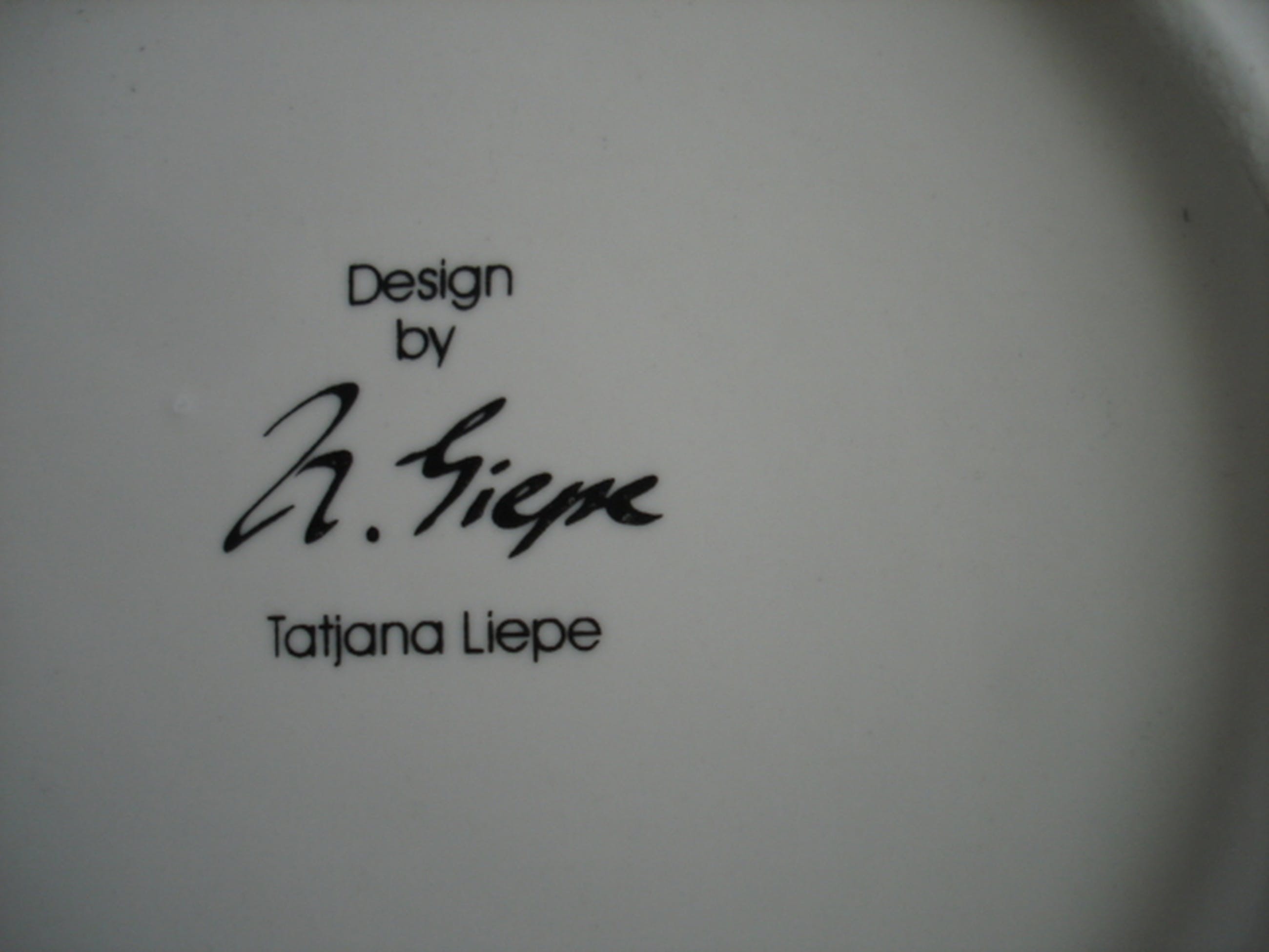 Een ontwerp van Tatjana Liepe en gesigneerd aan de achterzijde.