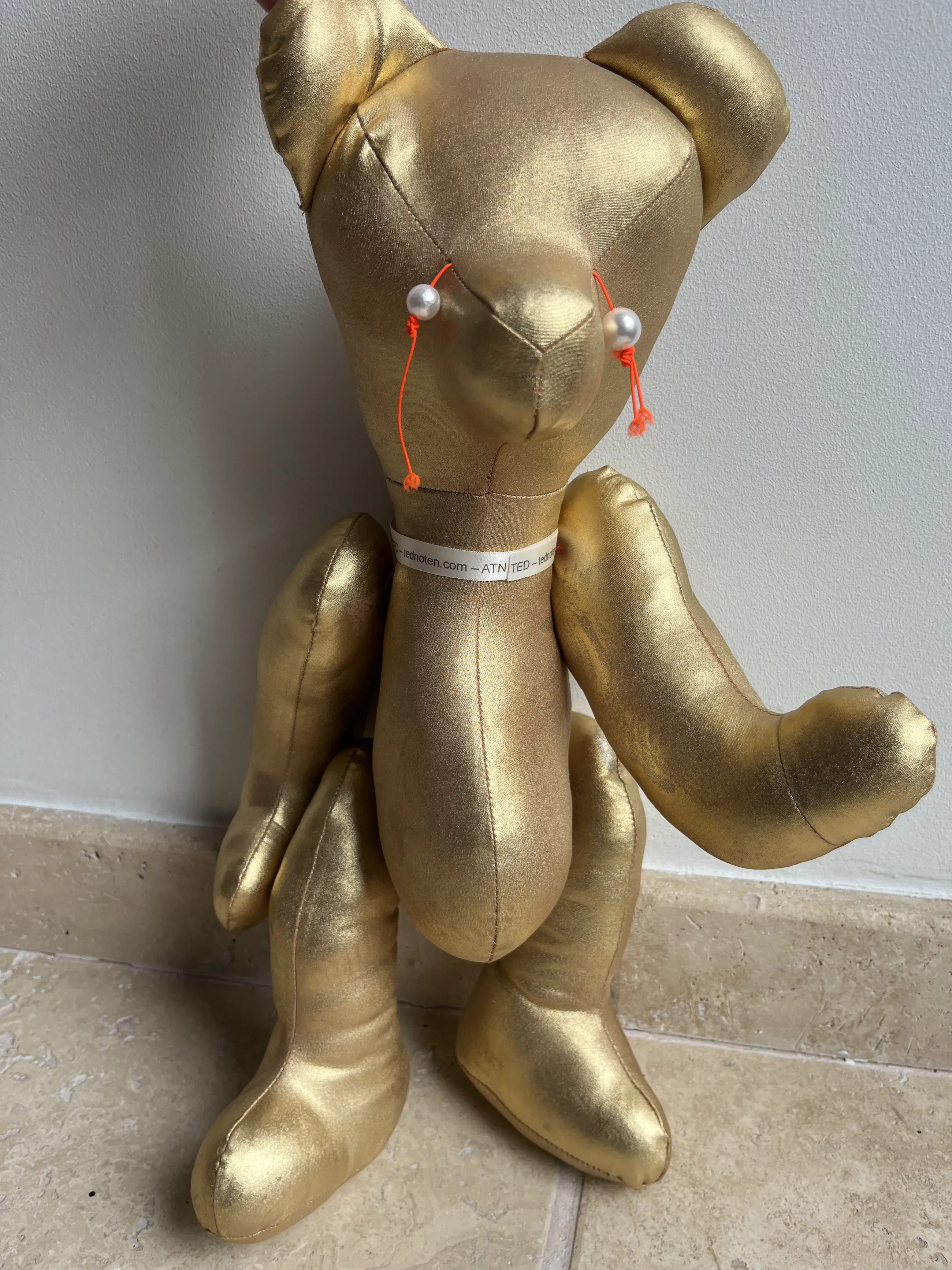 Teddy bear made for the occasion of the Ted Noten exhibition in 2013 in Stedelijk Museum ‘s-Hertogenbosch. Number 6/100. Comes with certificate of authenticity signed by Ted Noten