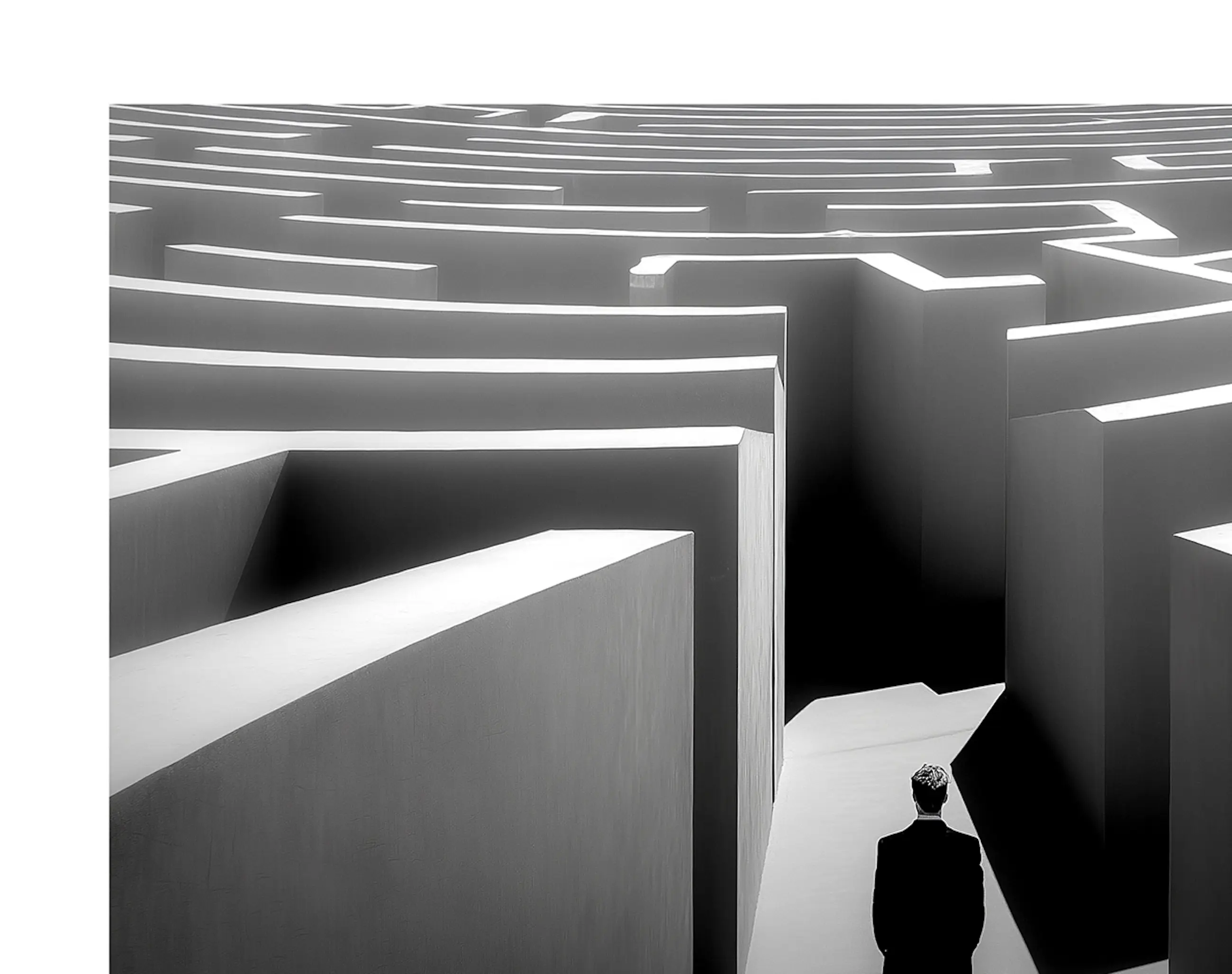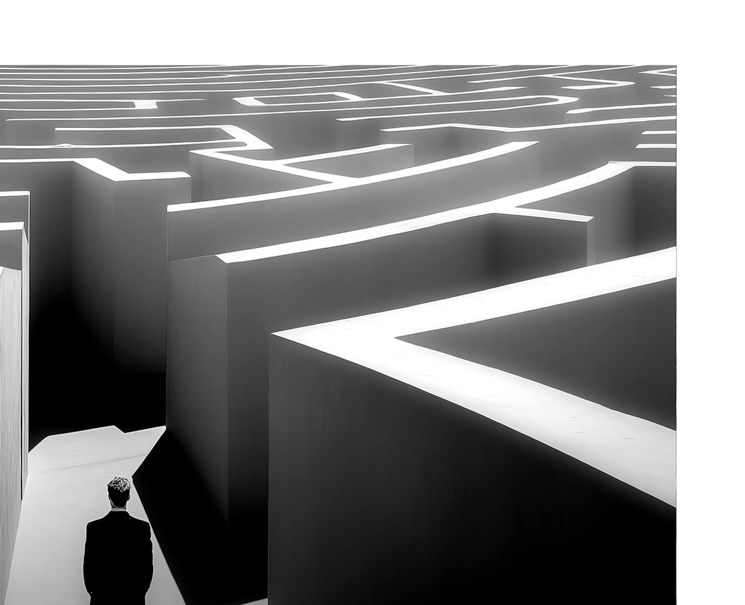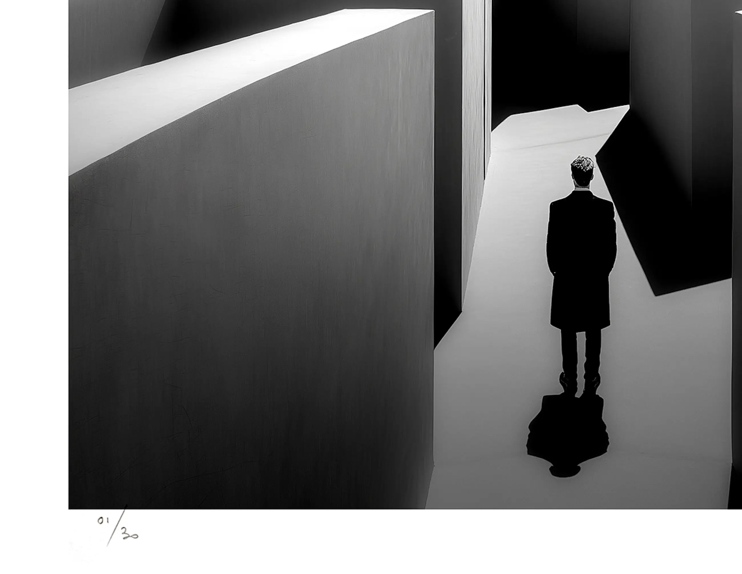 Elke compositie, in een minimalistische stijl, presenteert onwaarschijnlijke situaties die de waarneming en verbeelding prikkelen.