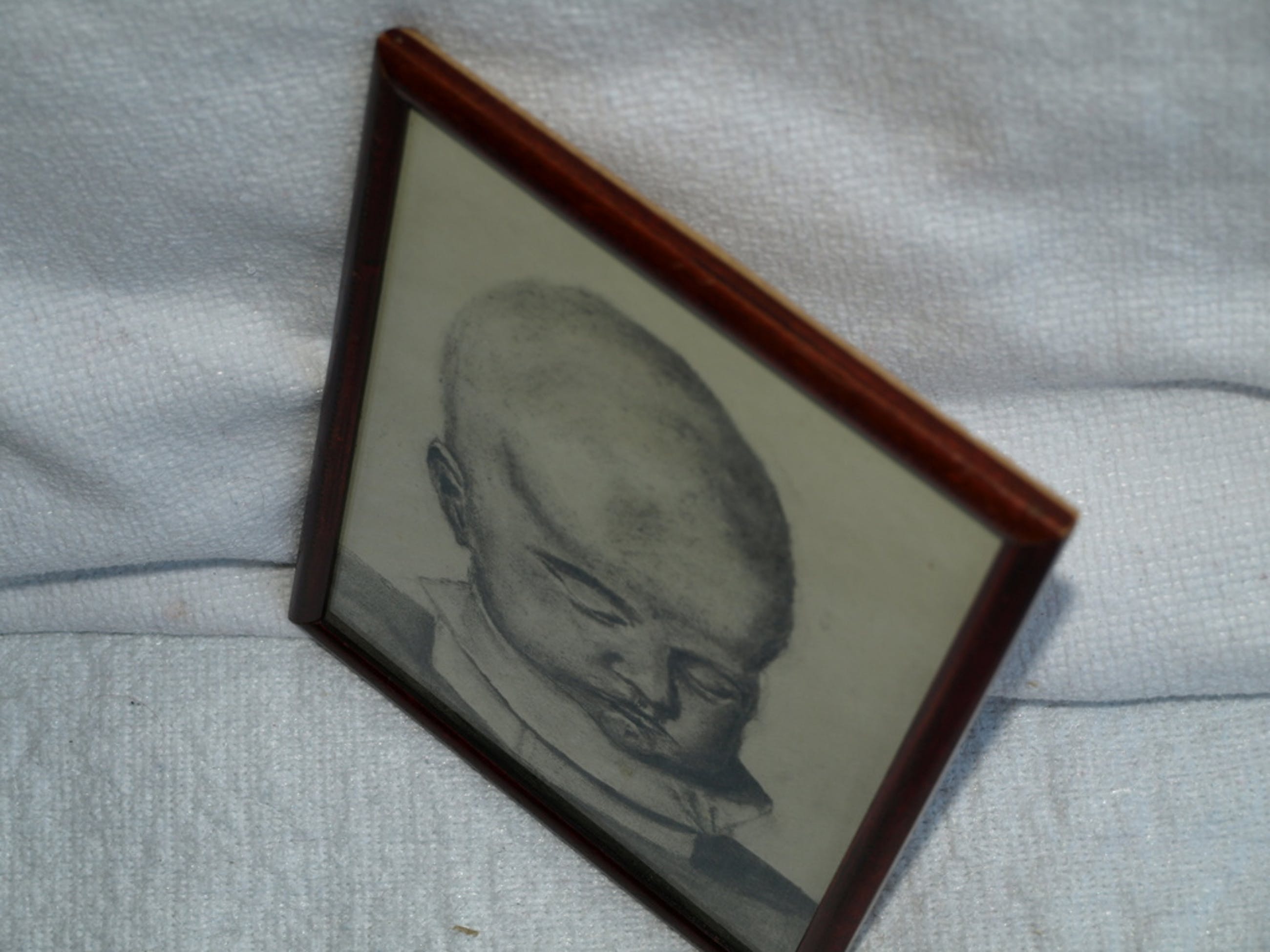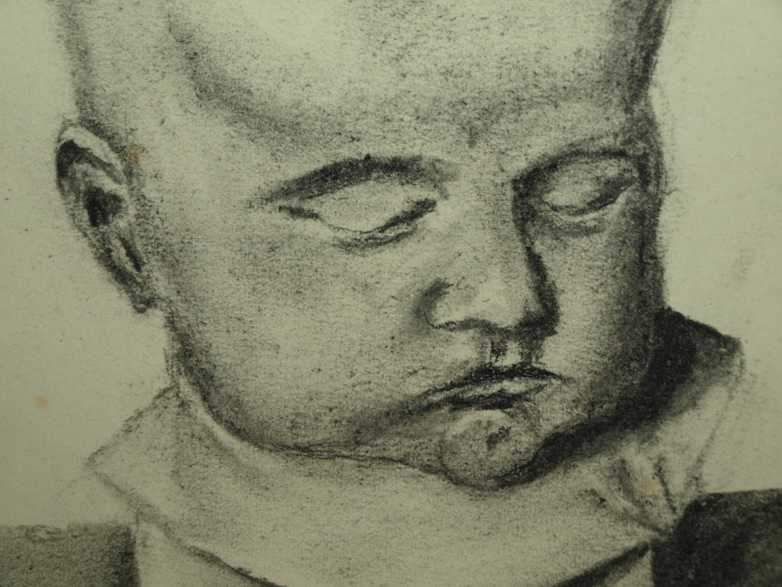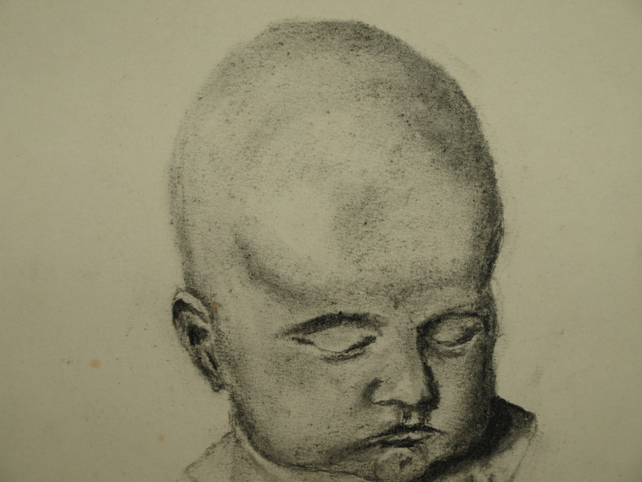 Een kleine oude tekening met een hoofd. Het zou hier gaan om een Japanse kunstenaar, maar helaas hebben wij de naam van de kunstenaar niet kunnen achterhalen.