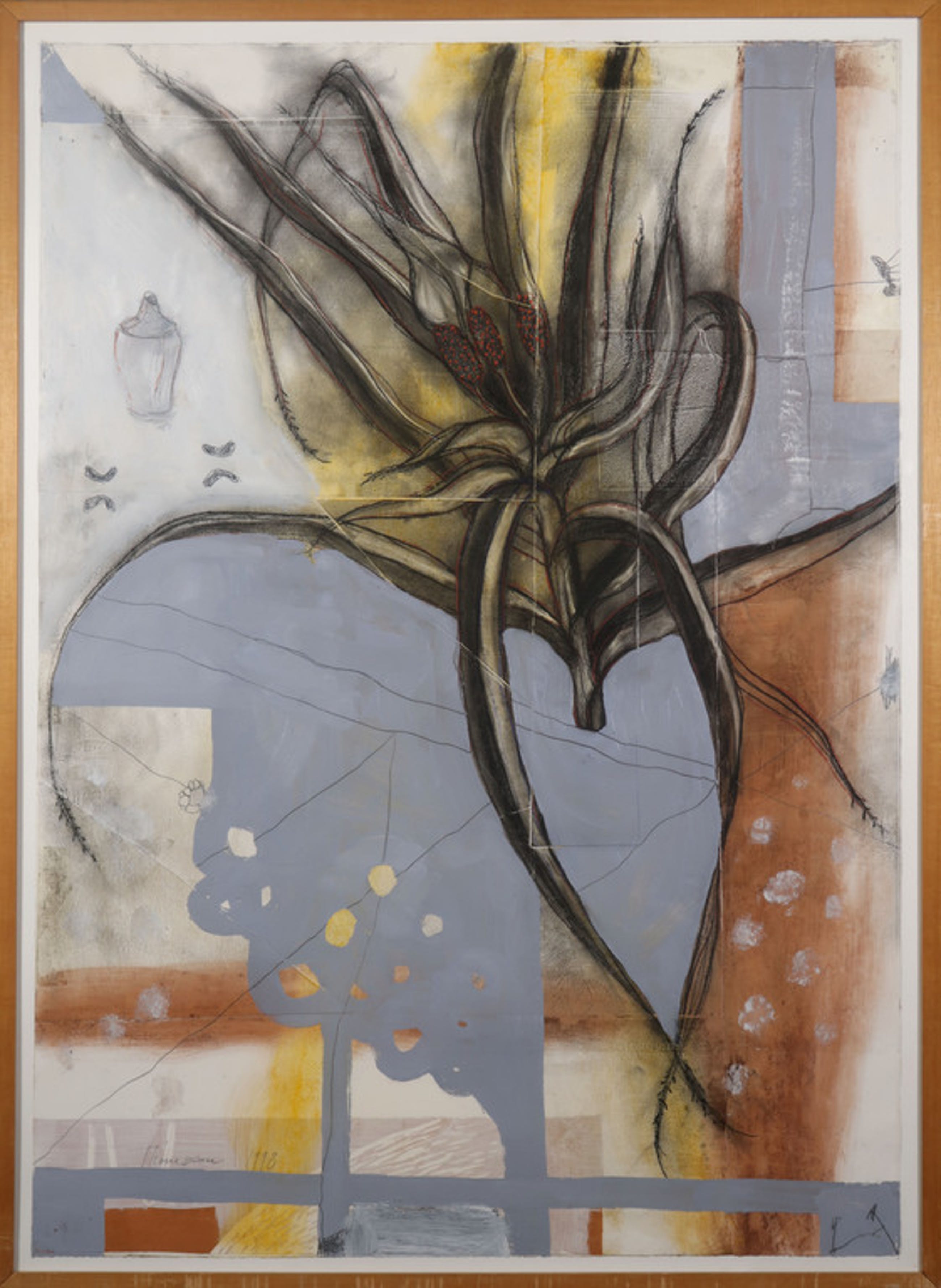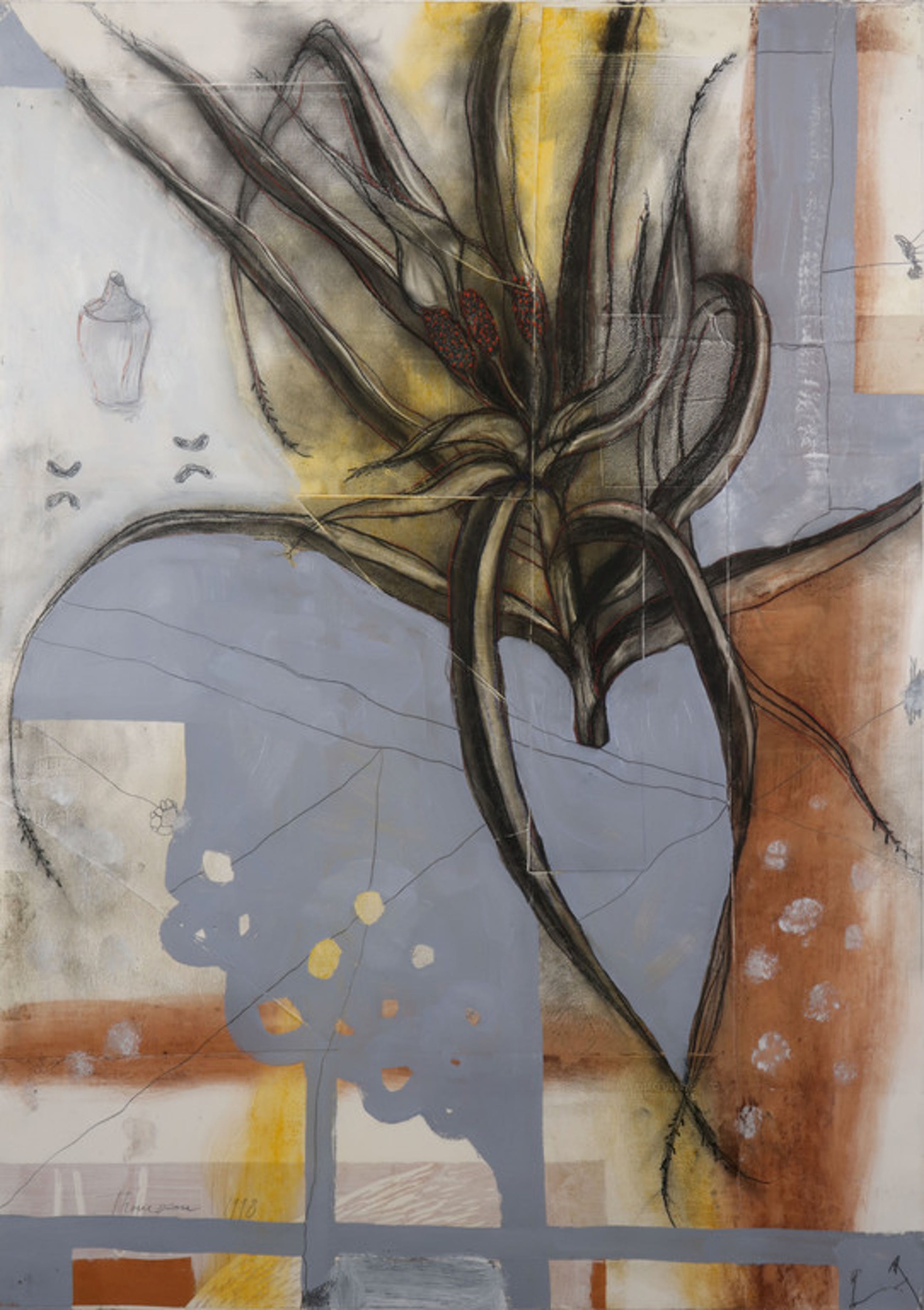Materiaal: Gemengde techniek, o.a. Olieverf, Krijt en Collage op papier