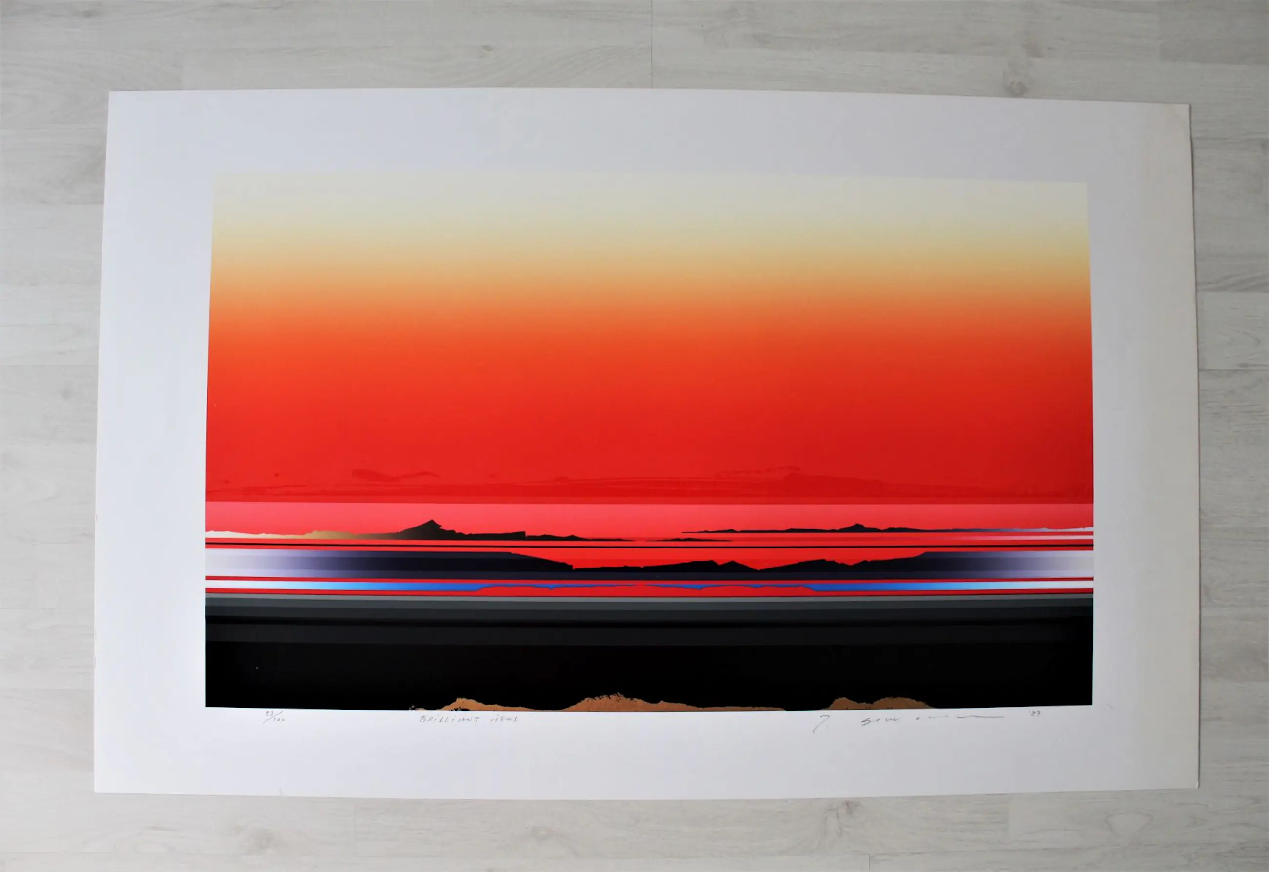 Titel: "Brilliant Views" 1987. Techniek: Zeefdruk op papier. Gelimiteerde oplage van 100 stuks. Met de hand gesigneerd, gedateerd en genummerd.