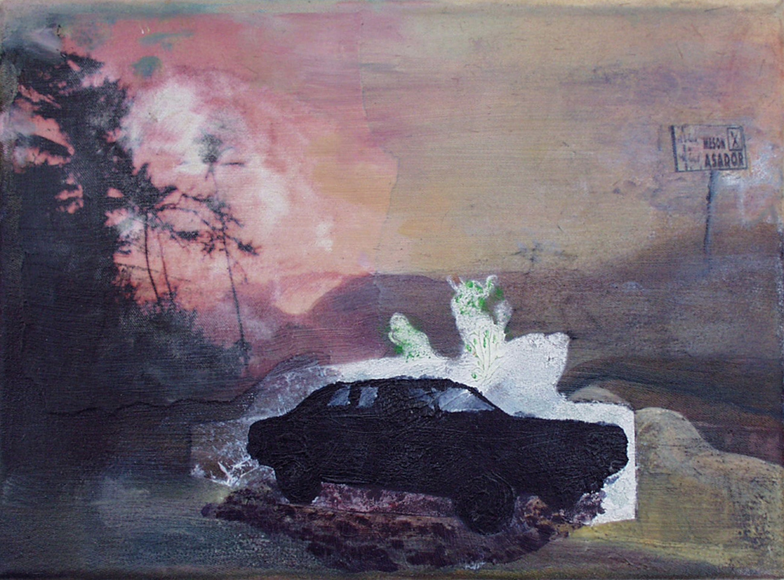 A car that doesn't go nowhere - 2001 - olieverf op doek - formaat 24,5 x 18,5 cm,