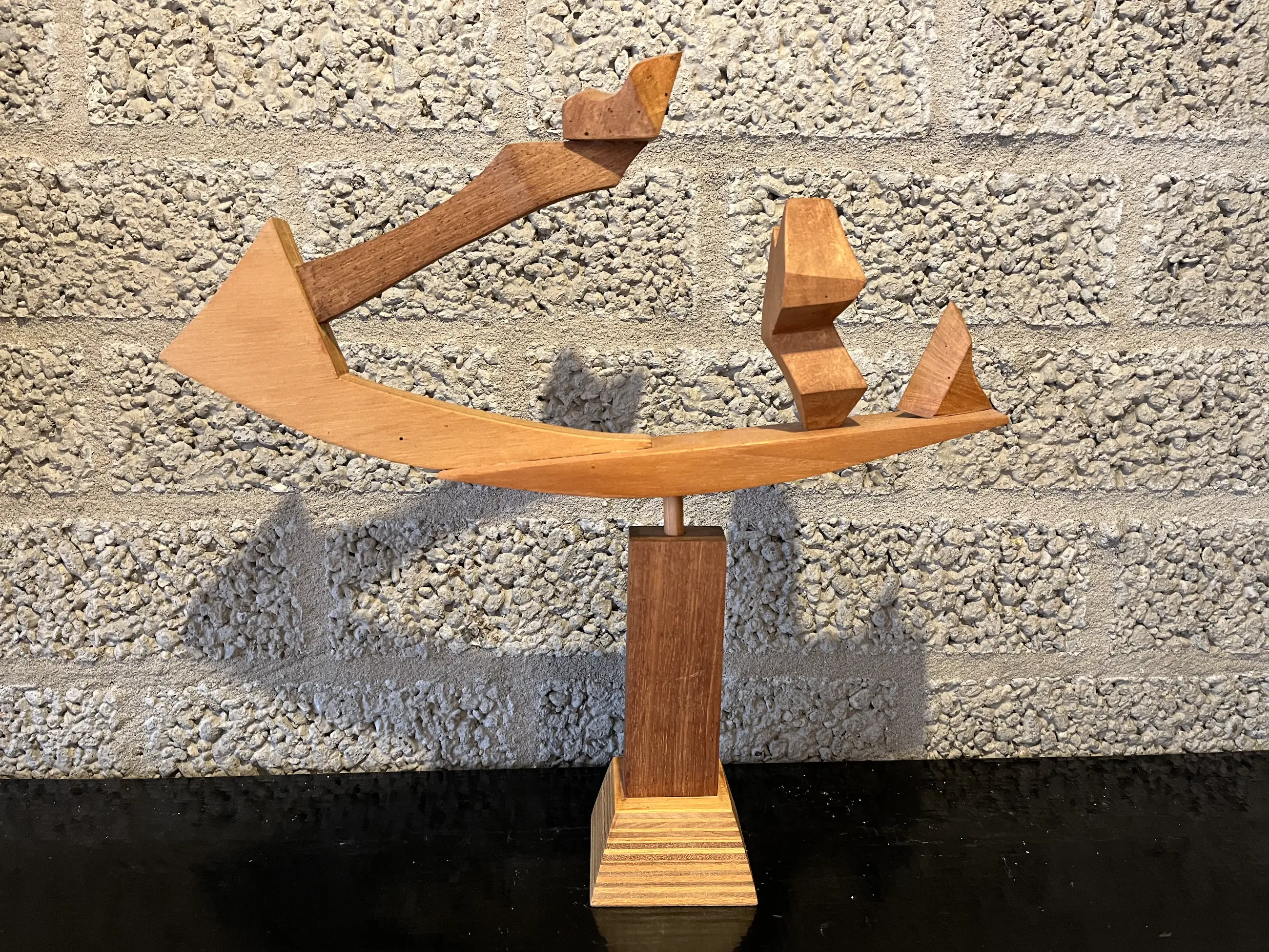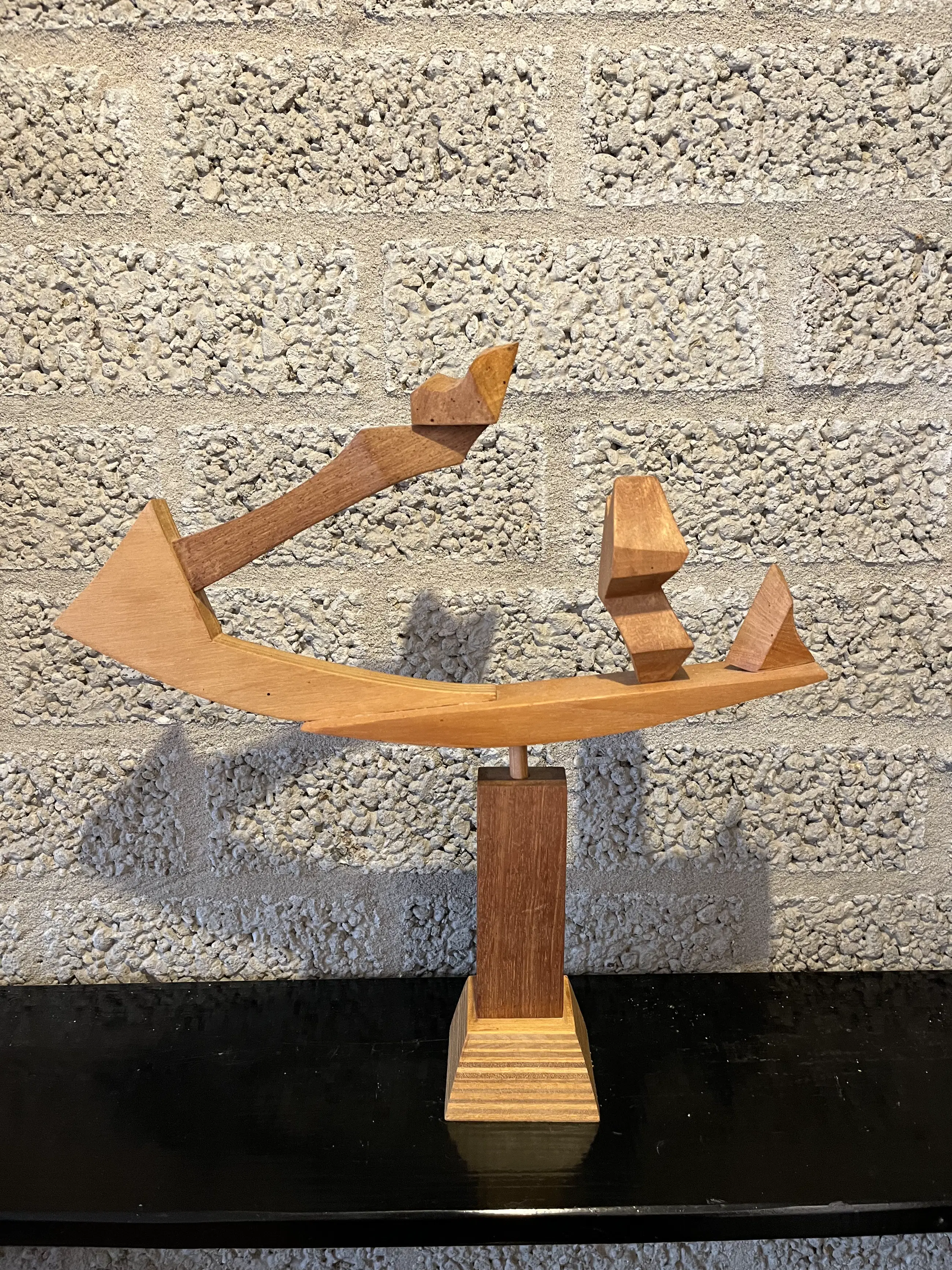 Een prachtig houten object gemaakt door de Apeldoornse kunstenaar Teun Renes die onlangs 100 jaar is geworden. Het is een al wat ouder werk!