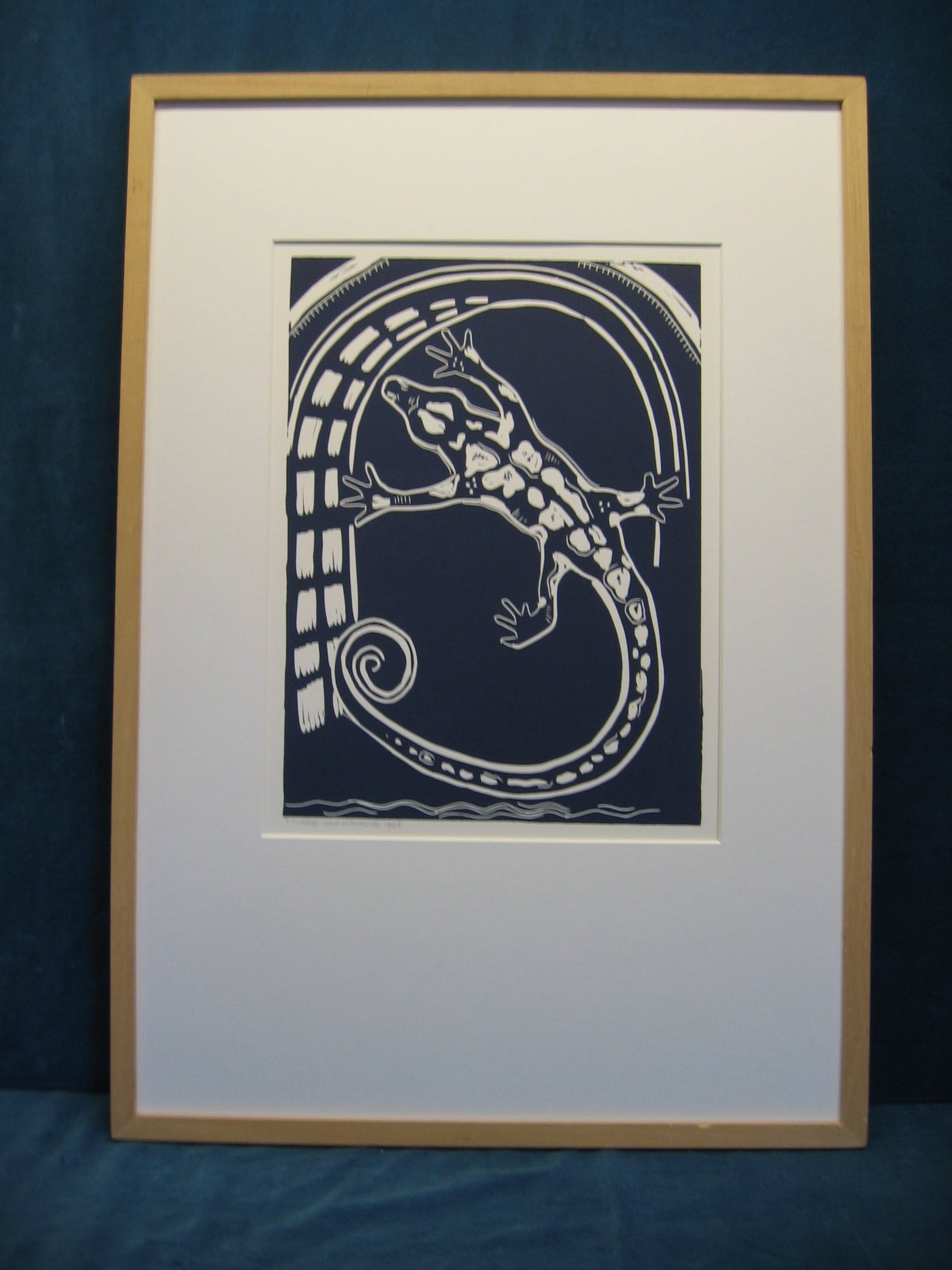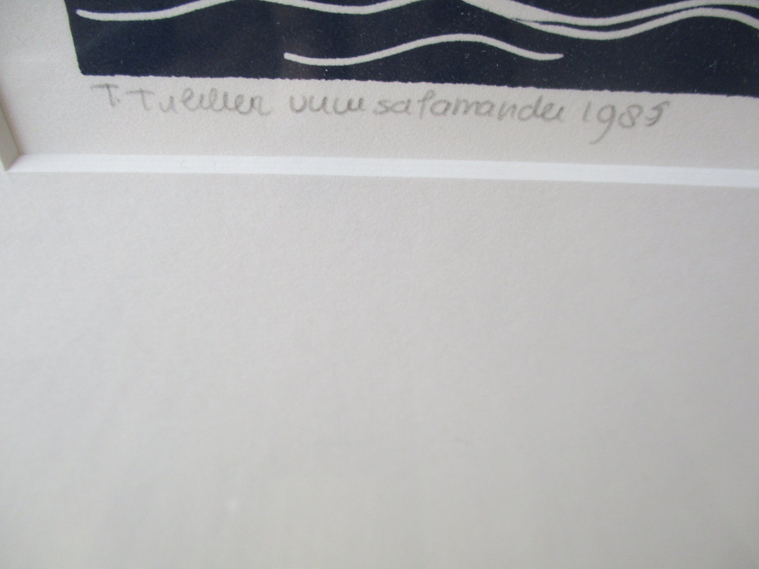 Deze grafiek/lino is linksonder gesigneerd. Het werk is ingelijst met passepartout en zit achter glas.