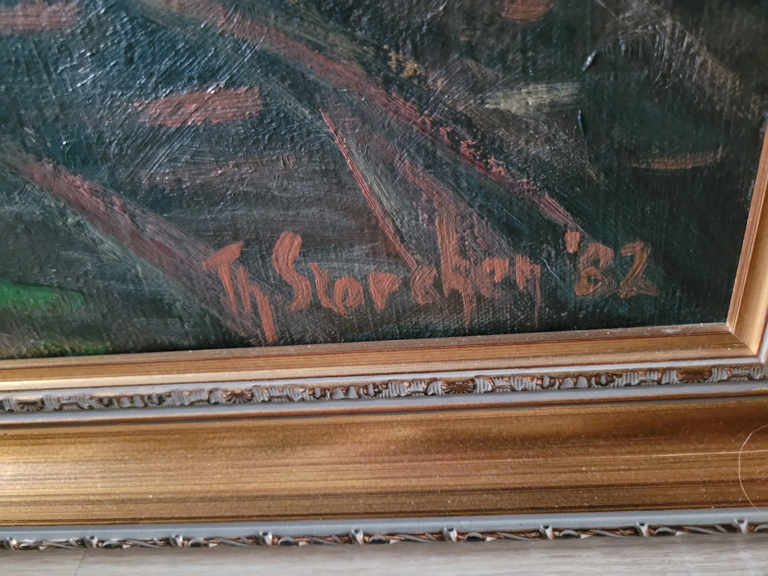 Te koop schilderij in perfecte staat. Limburgse kunstenaar Thei Storcken. Schilderij mag bij aankoop opgehaald worden bij de verkoper of wordt bij u thuis kostenloos afgeleverd binnen staal van 40 km. vanuit midden Limburg. Buiten deze afstand komen er verzendkosten bij.