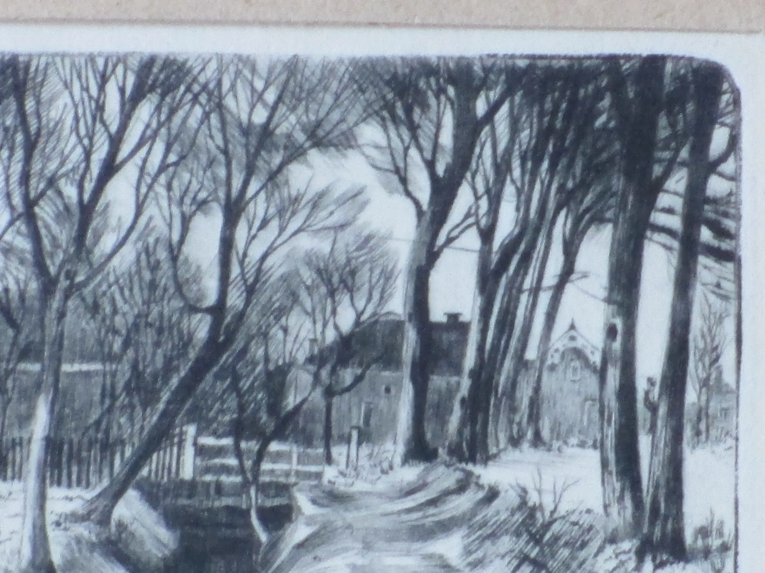 Droge naald ets door Theo Beerendonk Voorstelling van een aantal boerenwoningen aan een sloot Losbladig onder passepartout, beeldmaat 6.5x8, bladmaat 11x16, p.p.maat 20x28 Gesigneerd in potlood r.o.: 'Th Beerendonk' Annotatie in potlood m.o.: 'droge naald Druk v/d etser' Authenticiteit volledig gegarandeerd