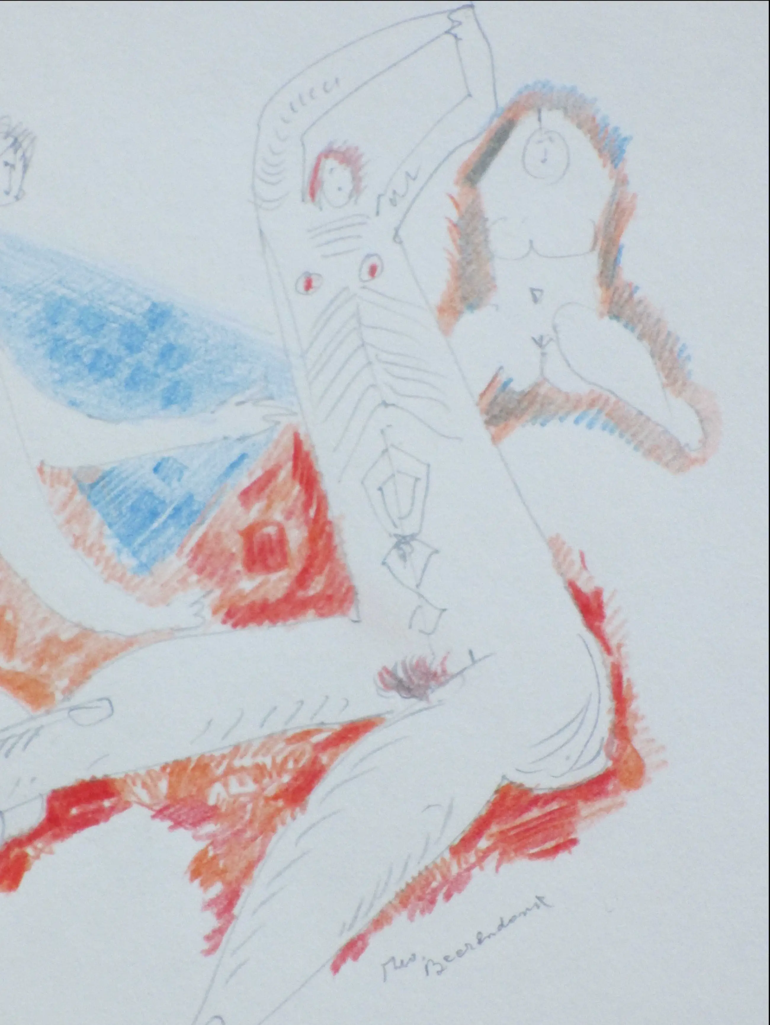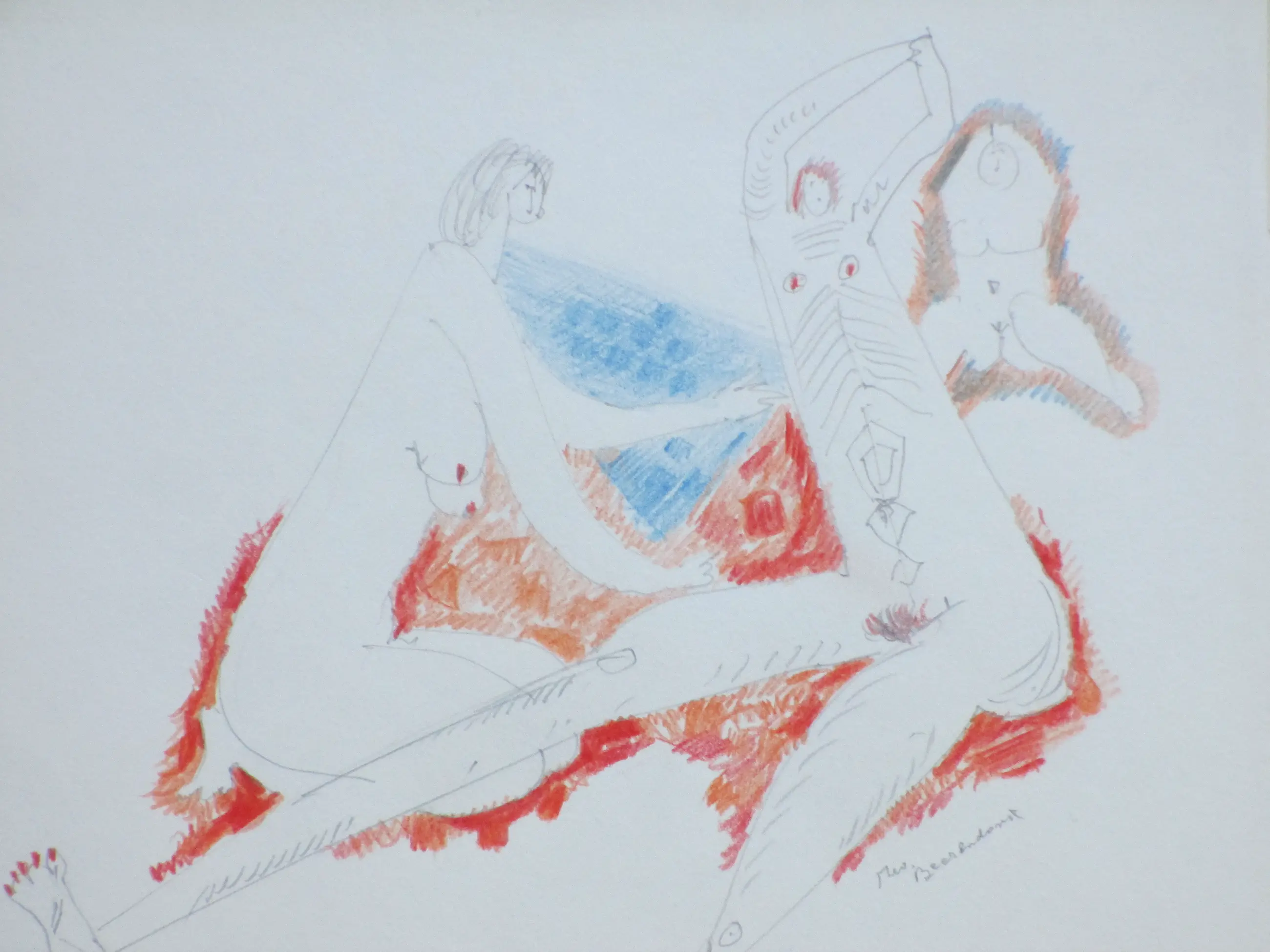 Tekening in kleur door Theo Beerendonk Voorstelling van drie naakten Losbladig, beeldmaat 17x20 Gesigneerd in potlood rechtsmidden: 'Theo Beerendonk' Authenticiteit volledig gegarandeerd