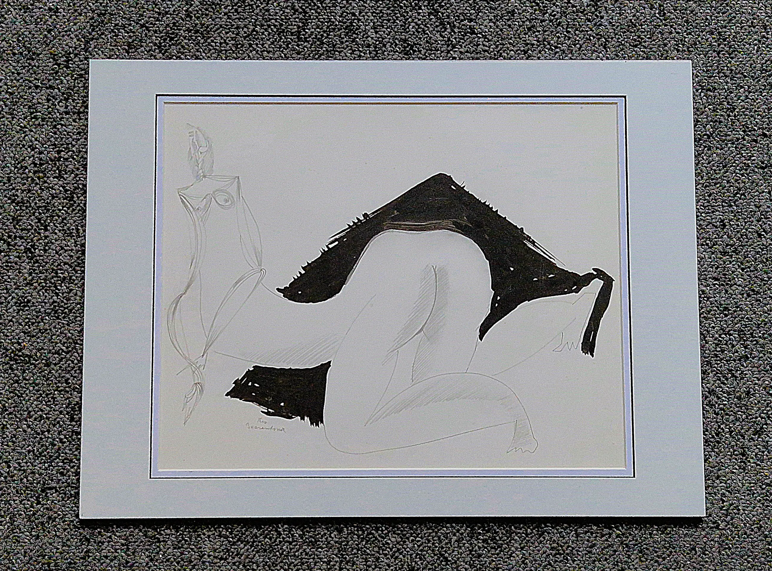 - Fraaie jaren 60 gemengde techniek (oostindische inkt, aquarel, potlood) op papier tekening van de Amsterdamse kunstenaar theo Beerendonk (1905-1979). De tekening verkeert in zeer goede conditie en is linksonder gesigneerd. In verdiept passe partout Bladmaat 25x35cm.