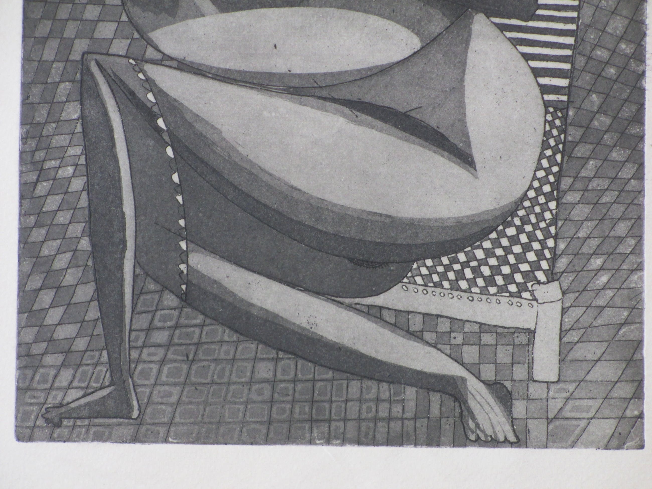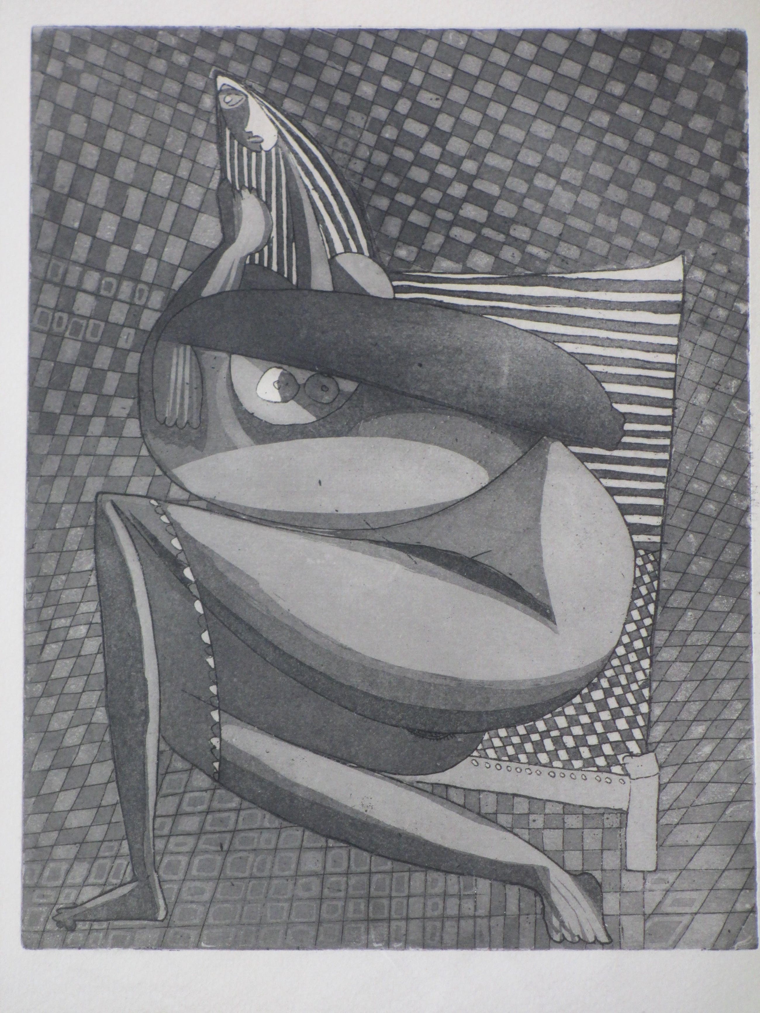 Ets door Theo BeerendonkVoorstelling van een kubistisch naakt in een stoelLosbladig, beeldmaat 31x24, bladmaat 43x41Niet gesigneerdAuthenticiteit volledig gegarandeerd