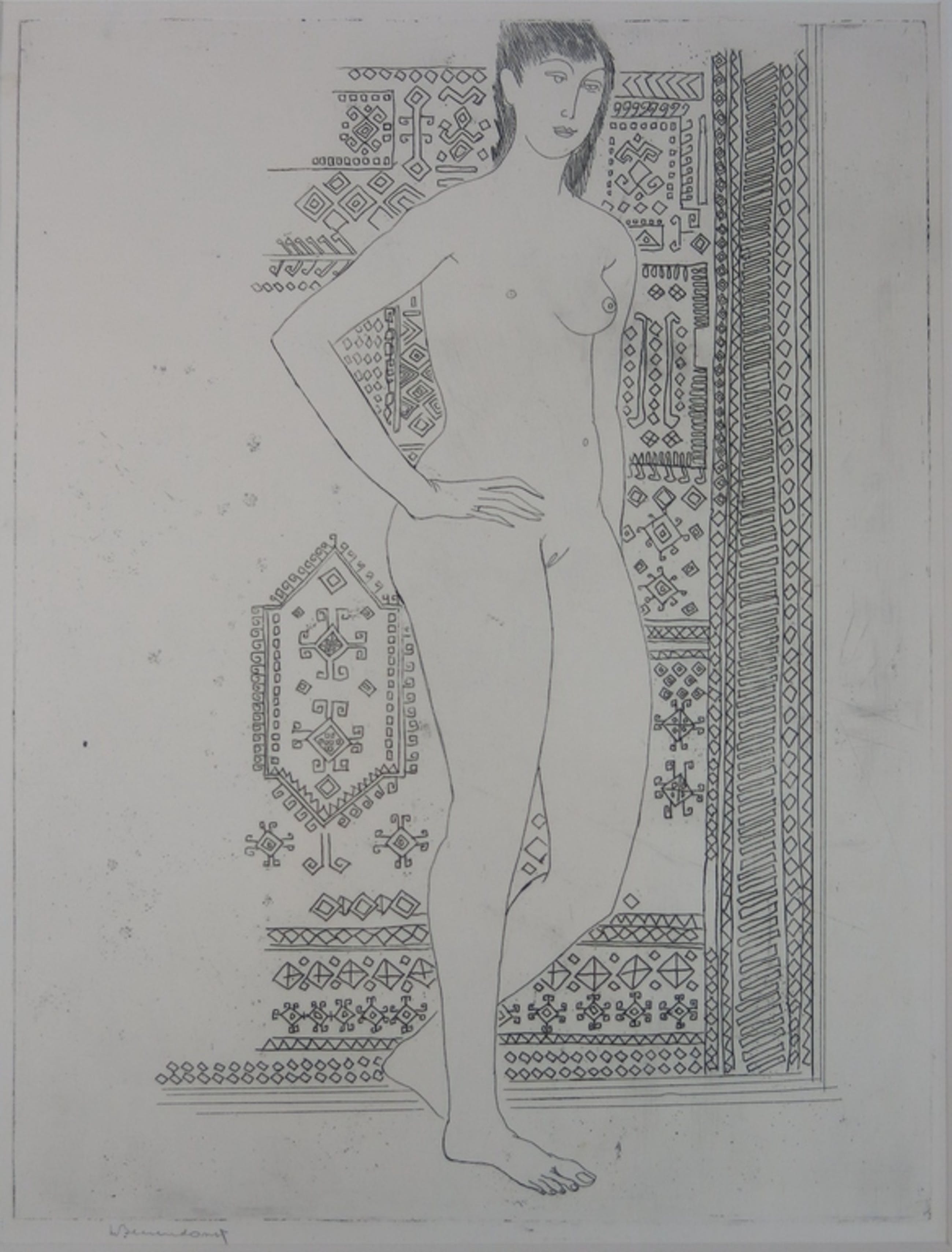 Zeer gedetailleerde en verfijnde ets van Theo Beerendonk, vermeld in het boek De liefde voor het naakt. Theo Beerendonk 1905-1979. (pagina 83, zie foto’s)