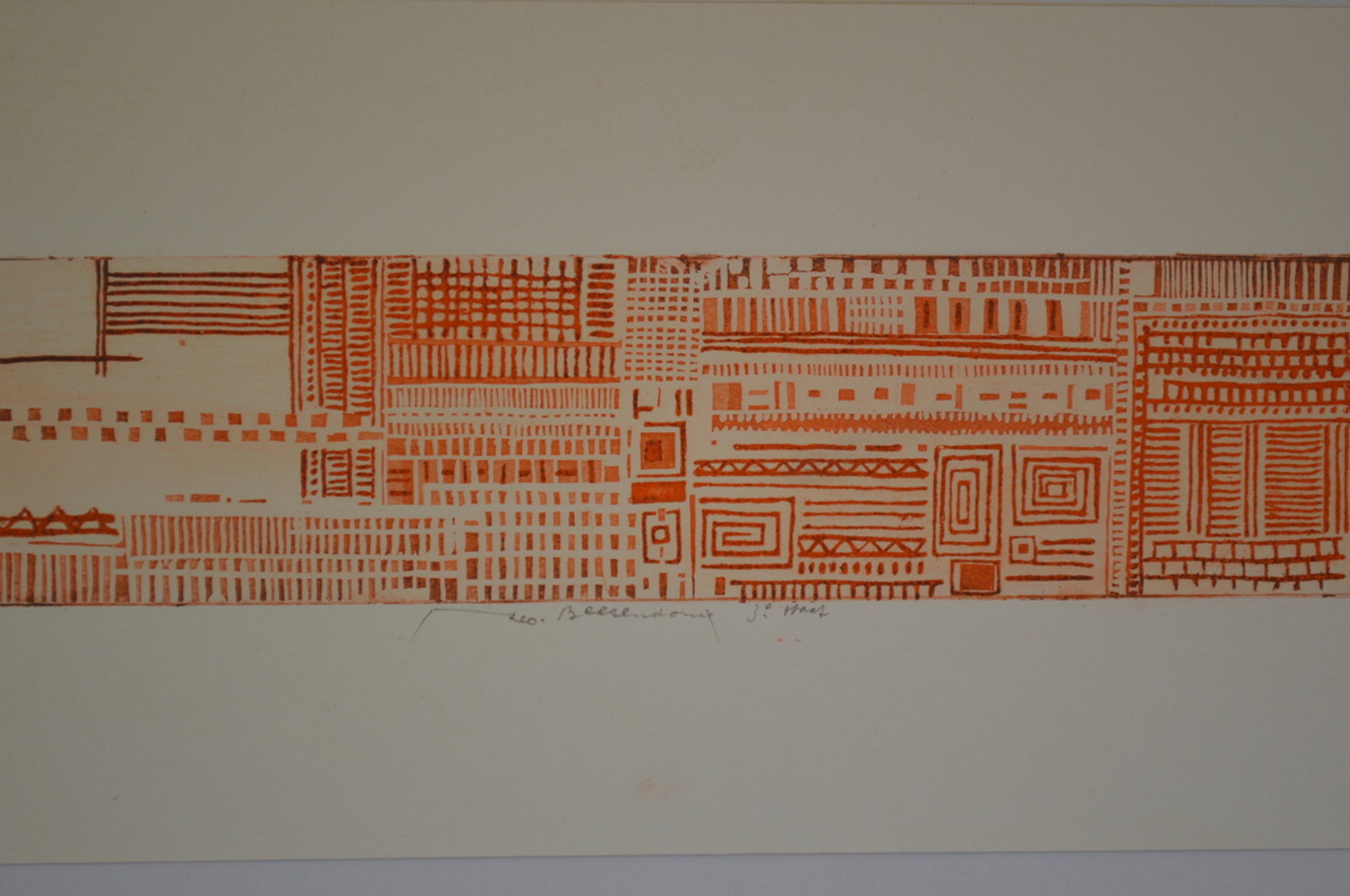Bijzondere kleuren- ets van Theo Beerendonk - formaat 18 x 46, gemaakt op donderdag 18 februari 1971 - 3e staat. Perfecte kwaliteit, perfecte staat - zoals altijd van Beerendonk.