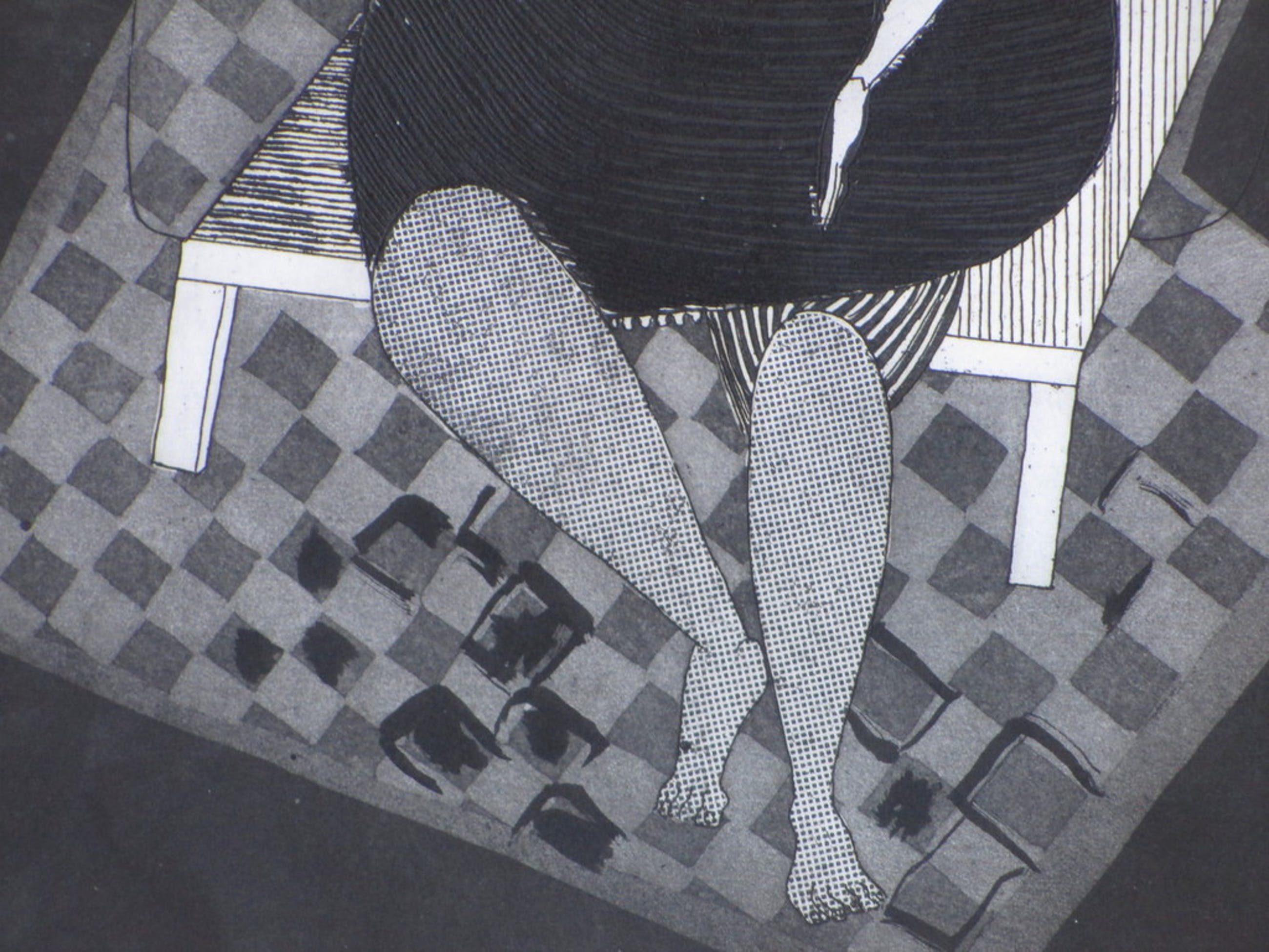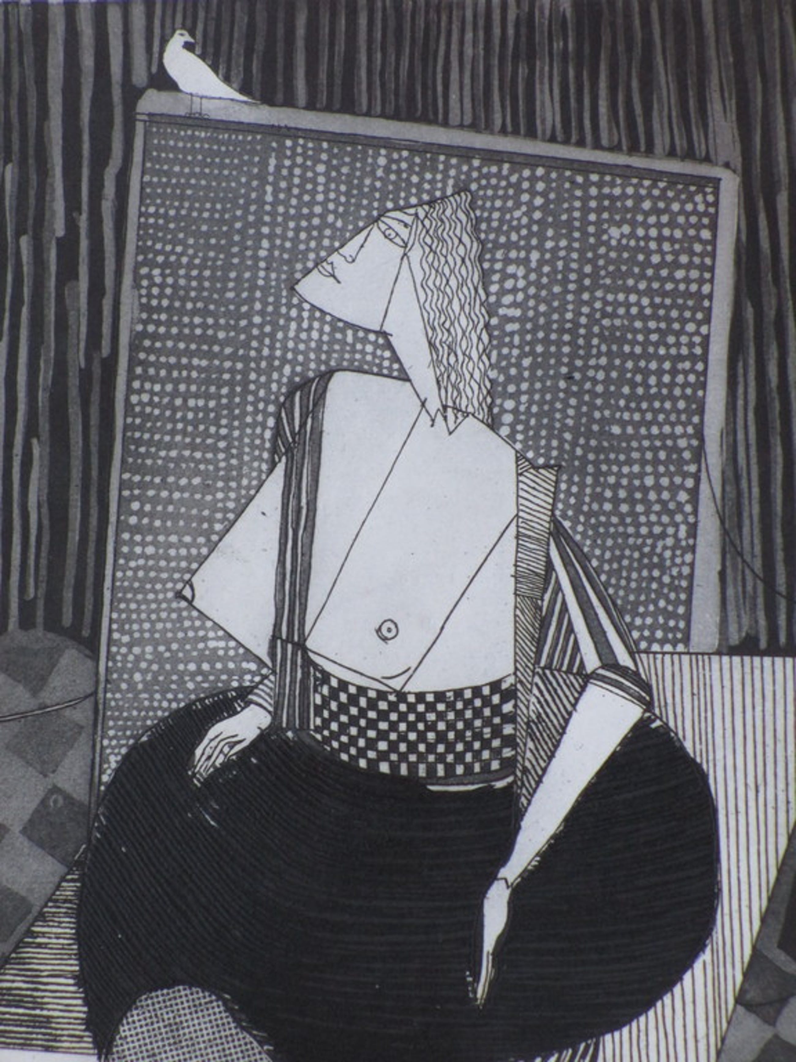 Voorstelling van een halfnaakt kubistisch model op een stoel