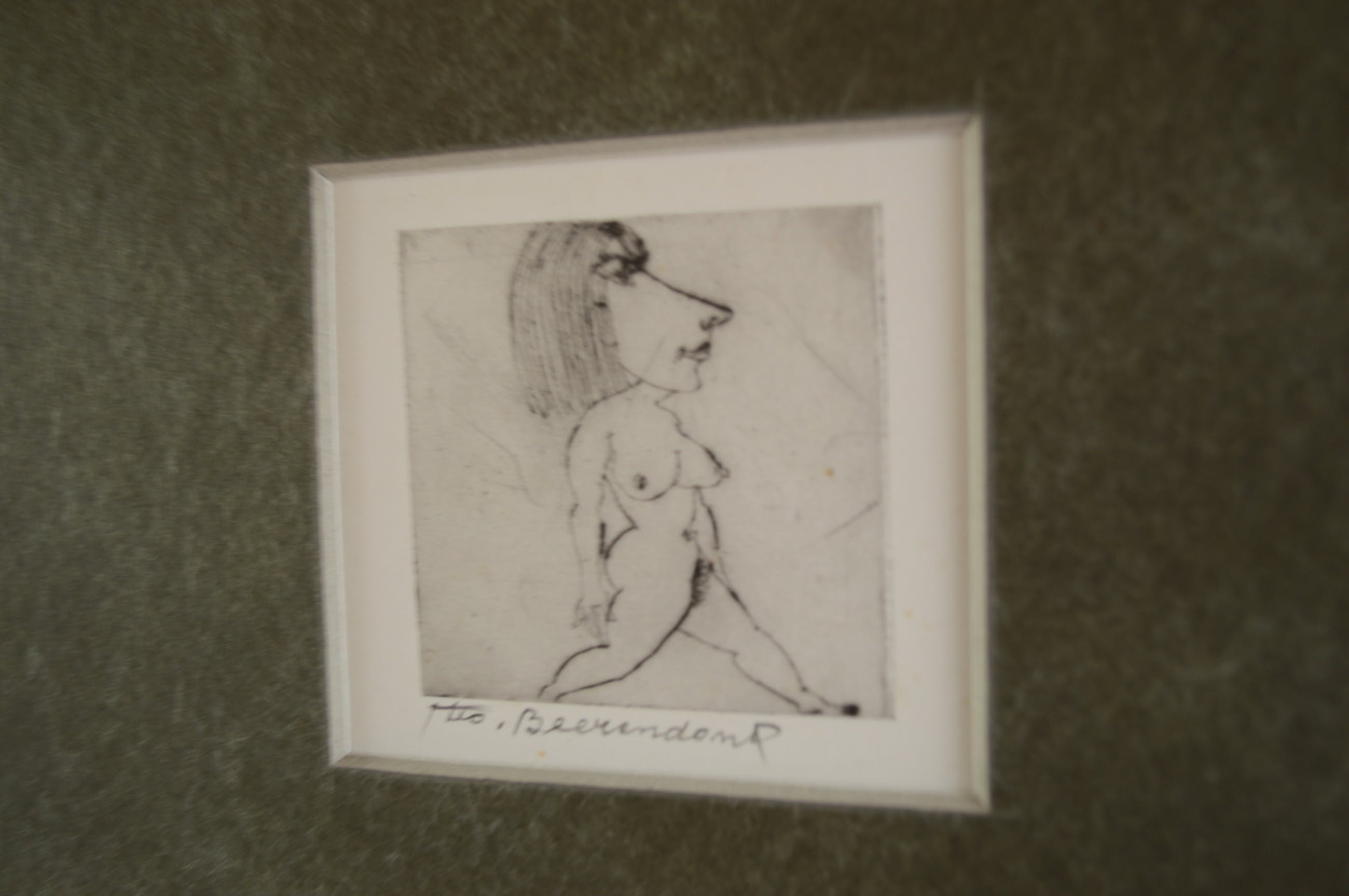Parmantig en fier naakt van Theo Beerendonk, een van zijn mooiste etsjes.. 6 x 6, en ingelijst in nette lijst 30 x 30 - 1970