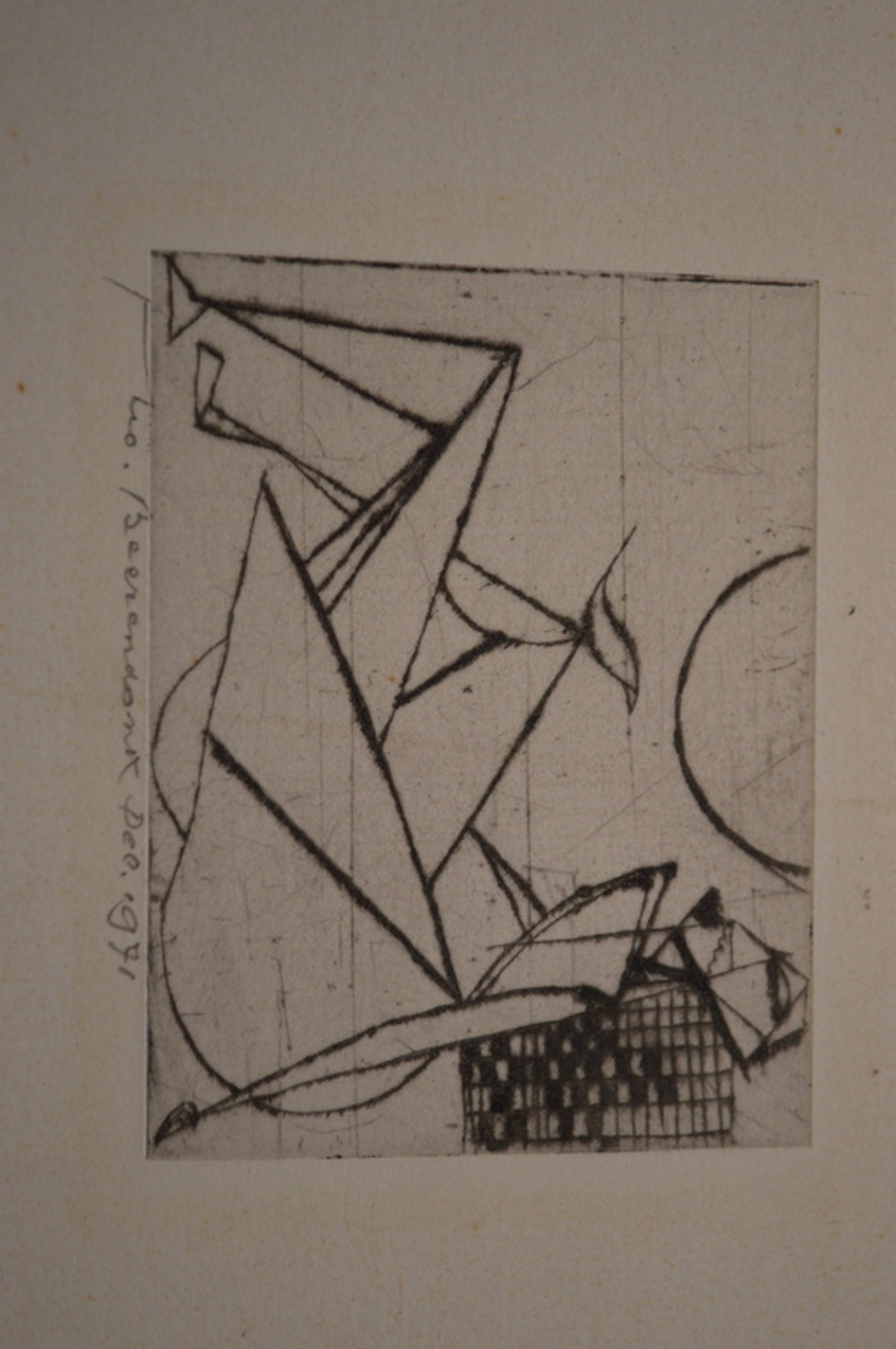 Abstract naakt van Theo Beerendonk, december 1971 - naakt met vogel - perfecte staat, afkomstig uit atelier kunstenaar. Etsen van Theo werden nooit in hoge oplage gemaakt, meestal < 5, en vaak unica.