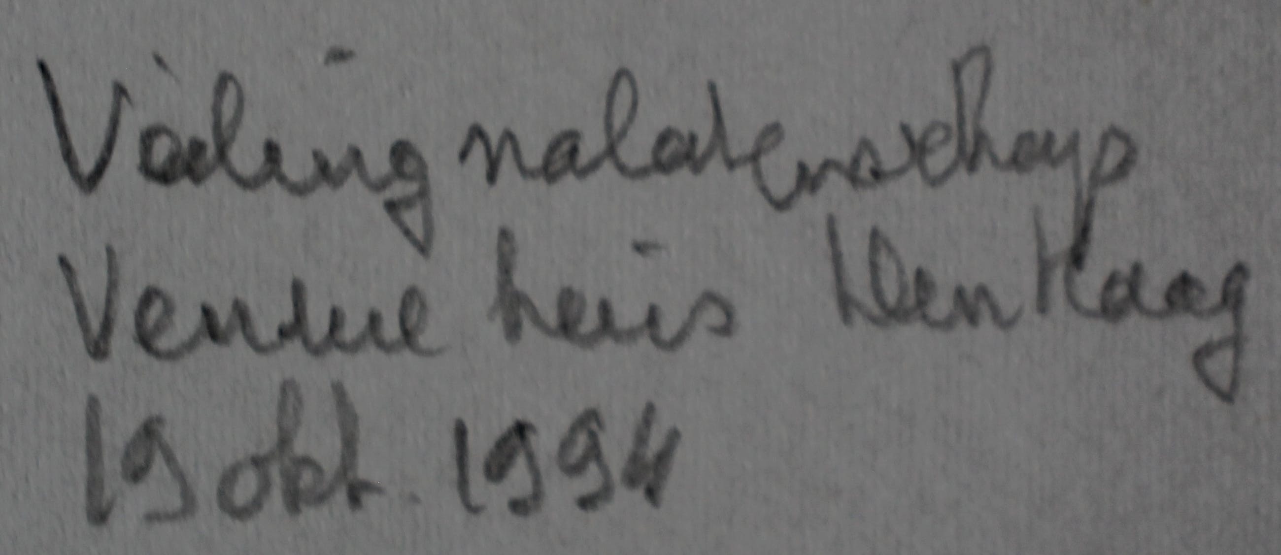 Afkomstig van veiling nalatenschap Den Haag, 19okt 1994.
