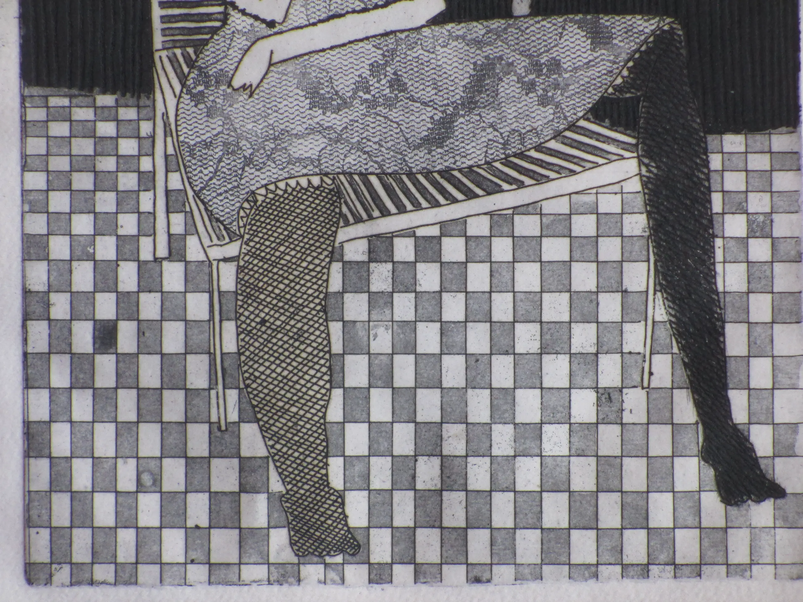 Ets door Theo Beerendonk Kubistische voorstelling van een vrouw op een stoel Losbladig, beeldmaat 24x18, bladmaat 33x30 Niet gesigneerd Authenticiteit volledig gegarandeerd