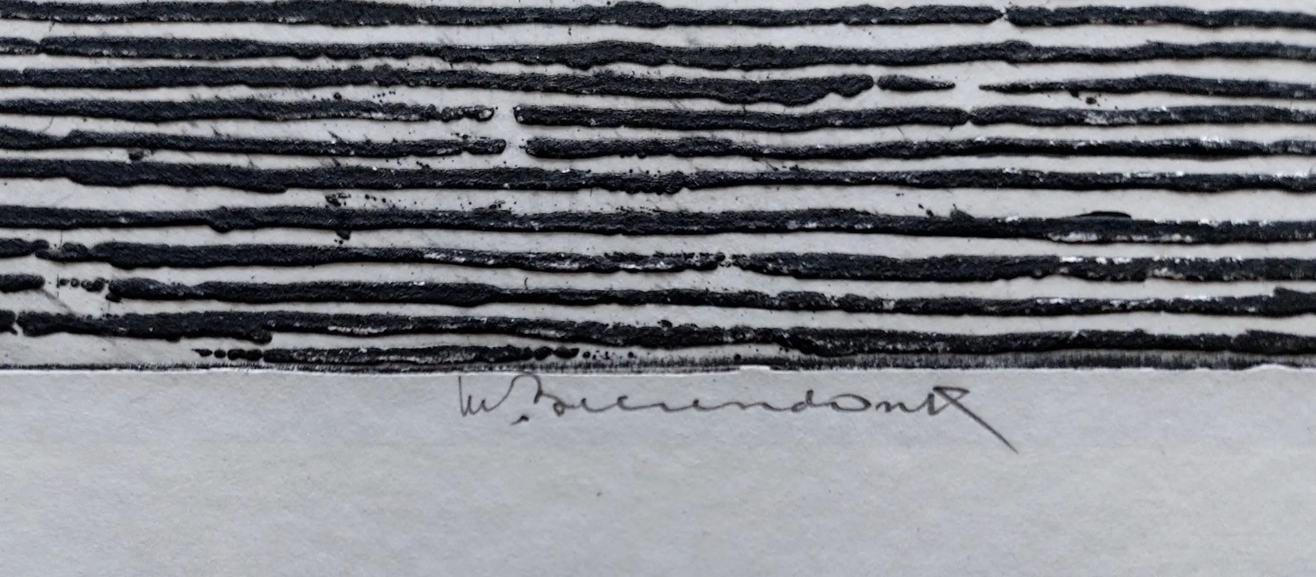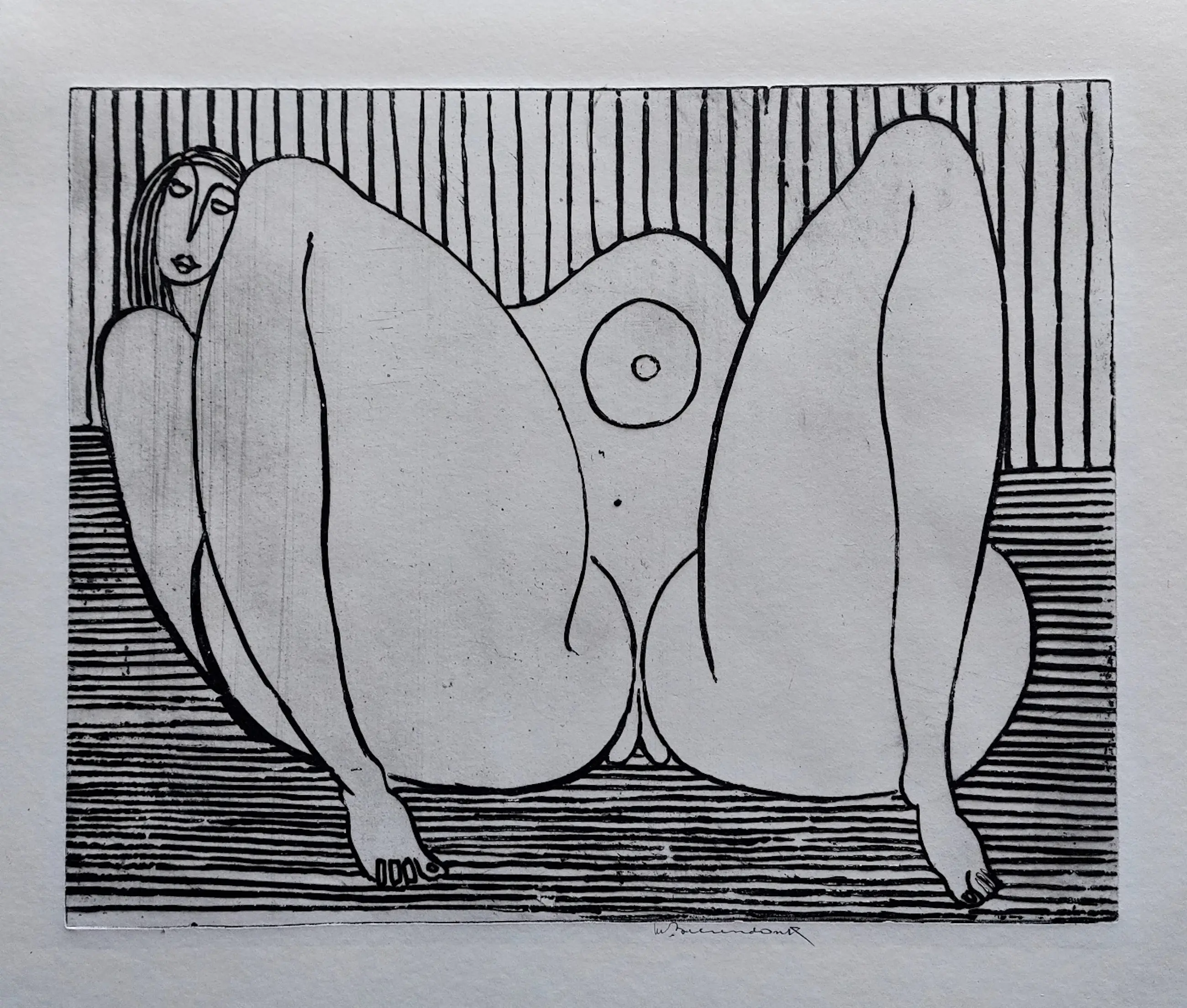 Mooi, gedeeltelijk in relief gedrukte ets van deze graficus/schilder. Midden onder in potlood gesigneerd.