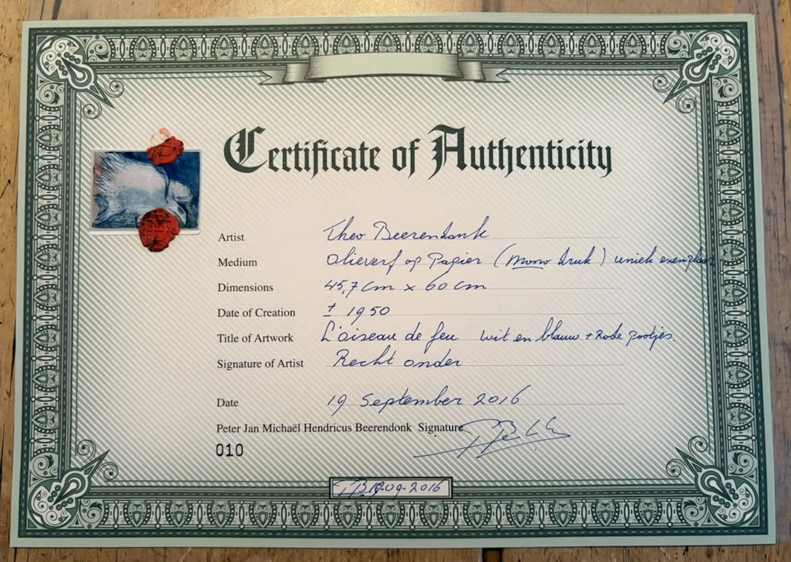 Kunstwerk rechtstreeks van kleinzoon kunstenaar, Peter Beerendonk, gekocht.