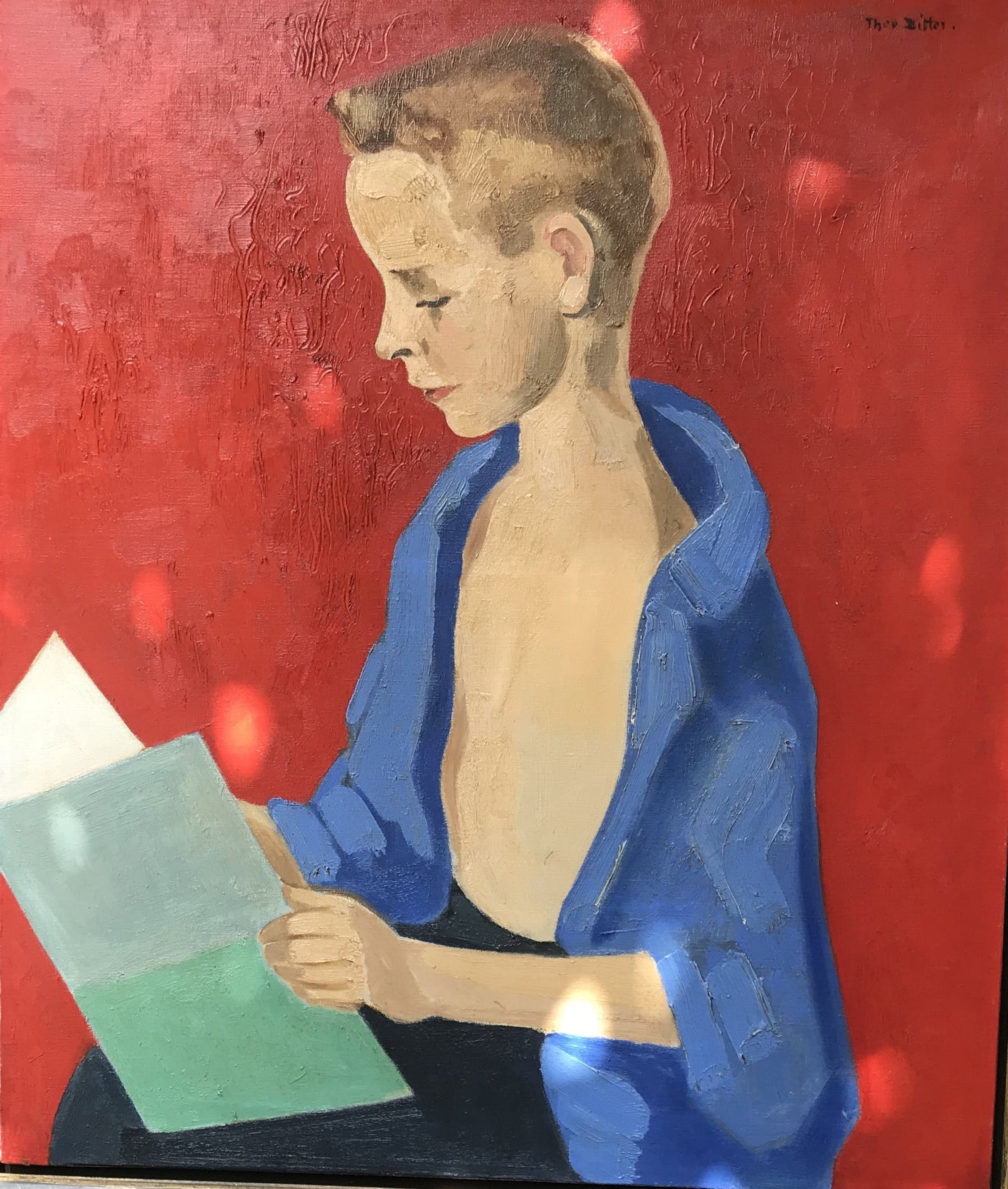 Theo Bitter was een Nederlands graficus, kunstschilder en tekenaar die gerekend wordt tot de Nieuwe Haagse school. Dit werk van zijn hand is een jeugd portret vermoedelijk van zichzelf. Het werk zit in een handgemaakte lijst van Paul Gehring en komt hierin bijzonder goed tot zijn recht. Het werk kan, goed verpakt, worden toegezonden of het kan afgehaald worden op afspraak. De lichte vlekken op de foto's is het zonlicht dat op het doek viel tijdens het fotograferen.