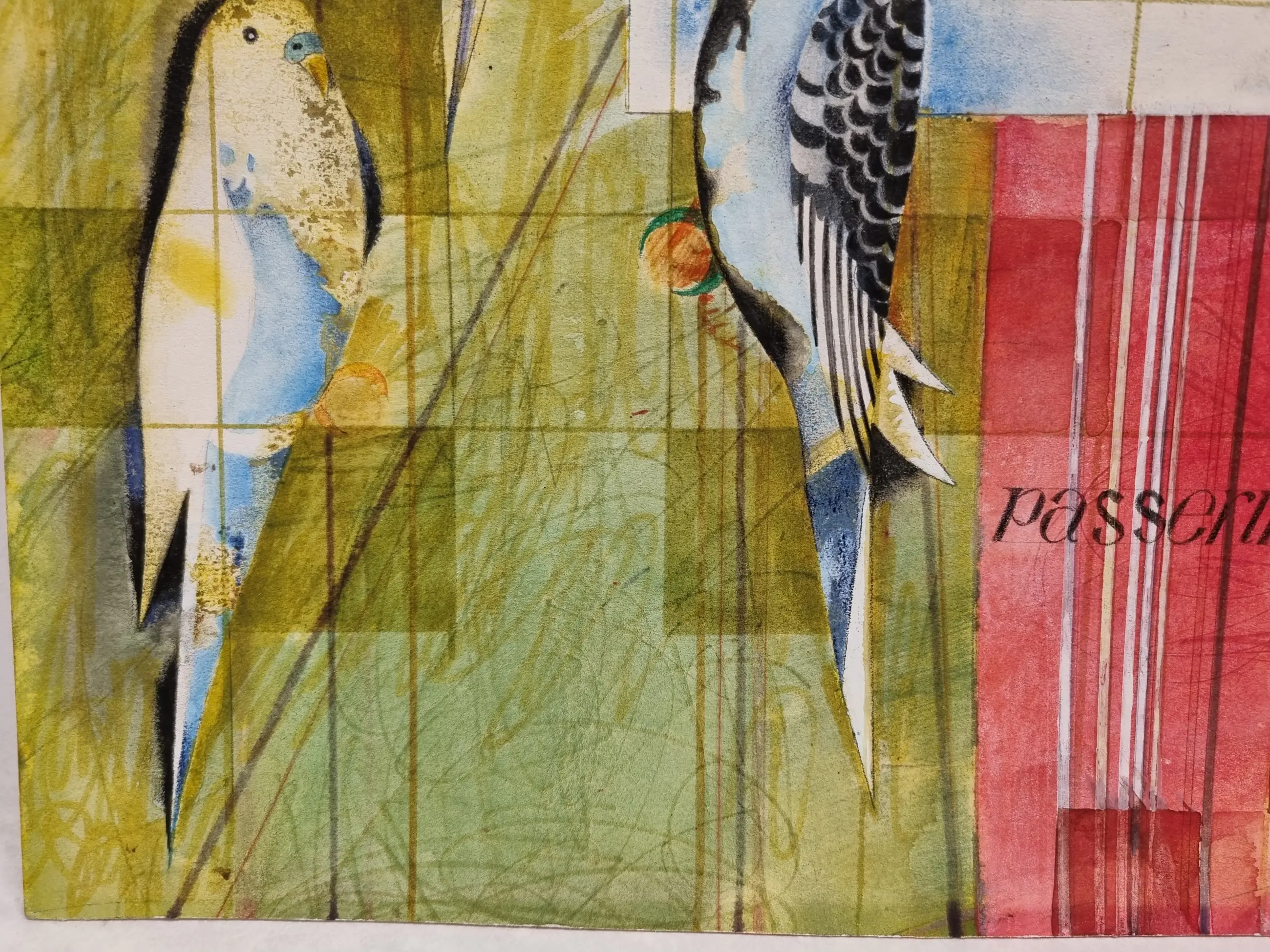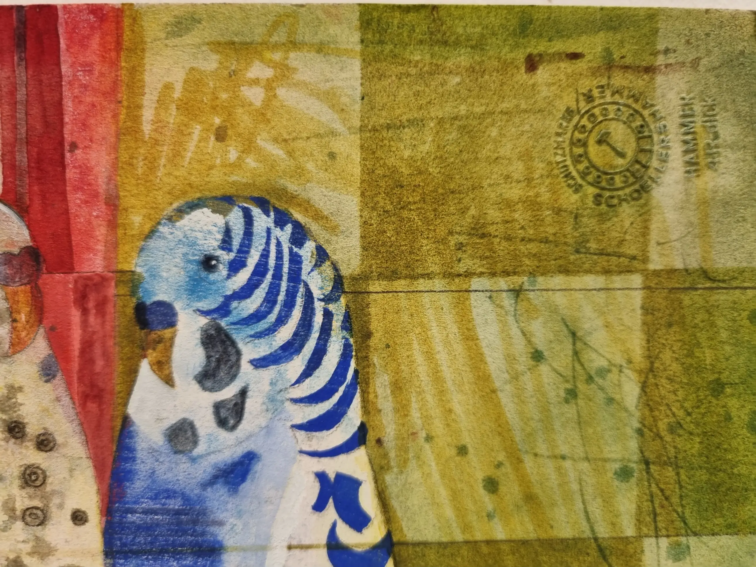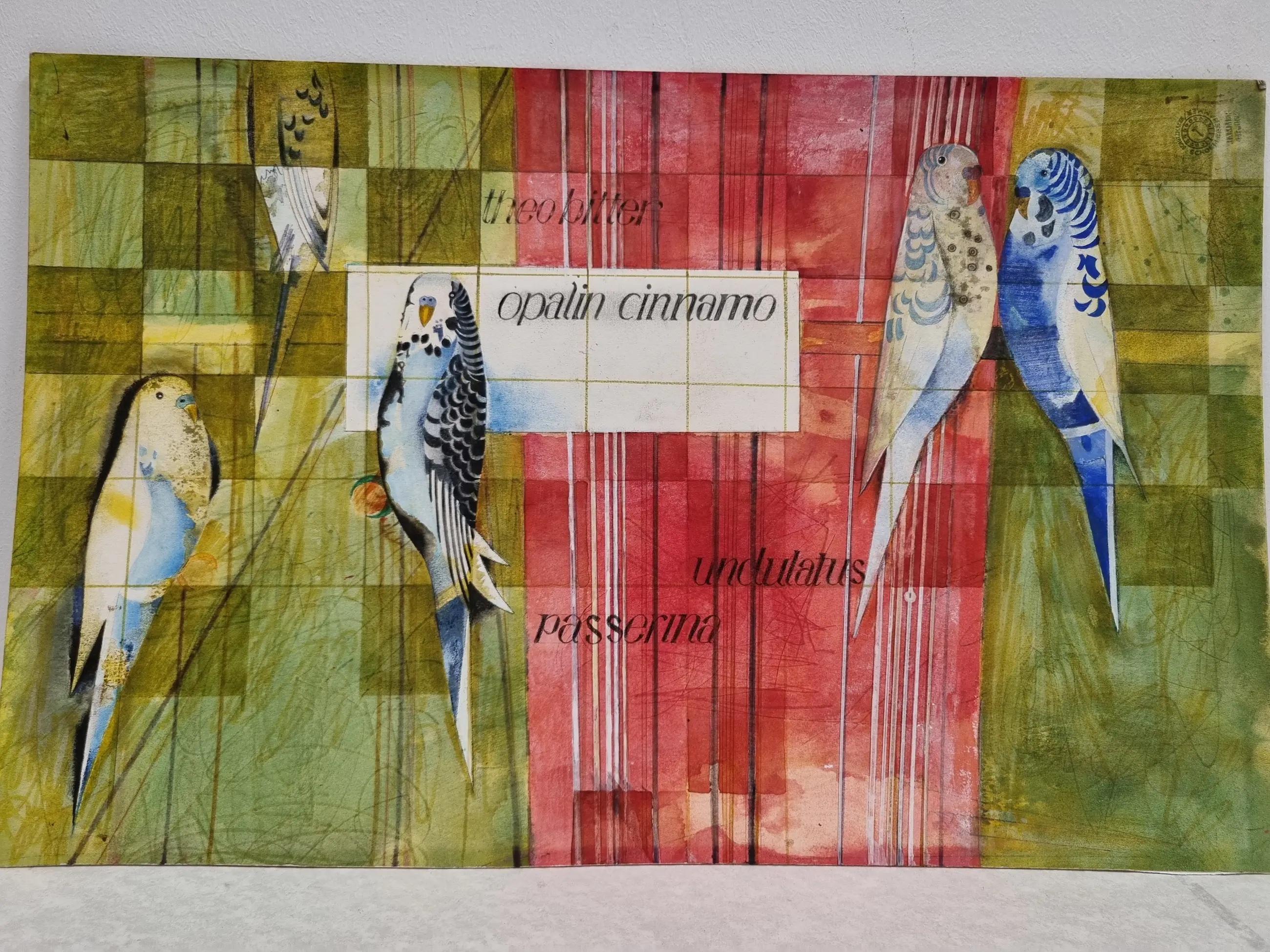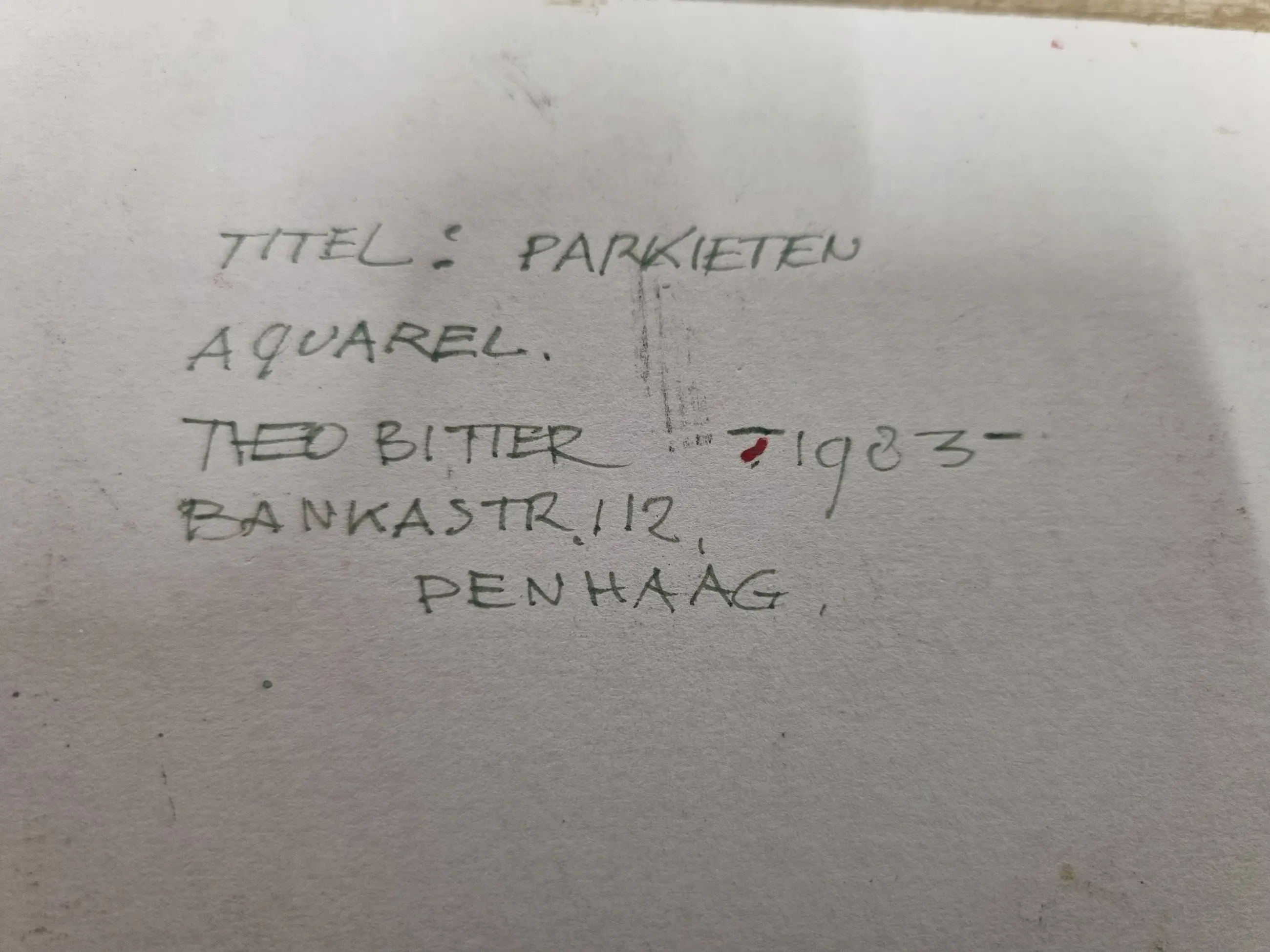 In verso: parkieten - aquarel - Theo Bitter 1983 - Bankastr. 112 Den Haag