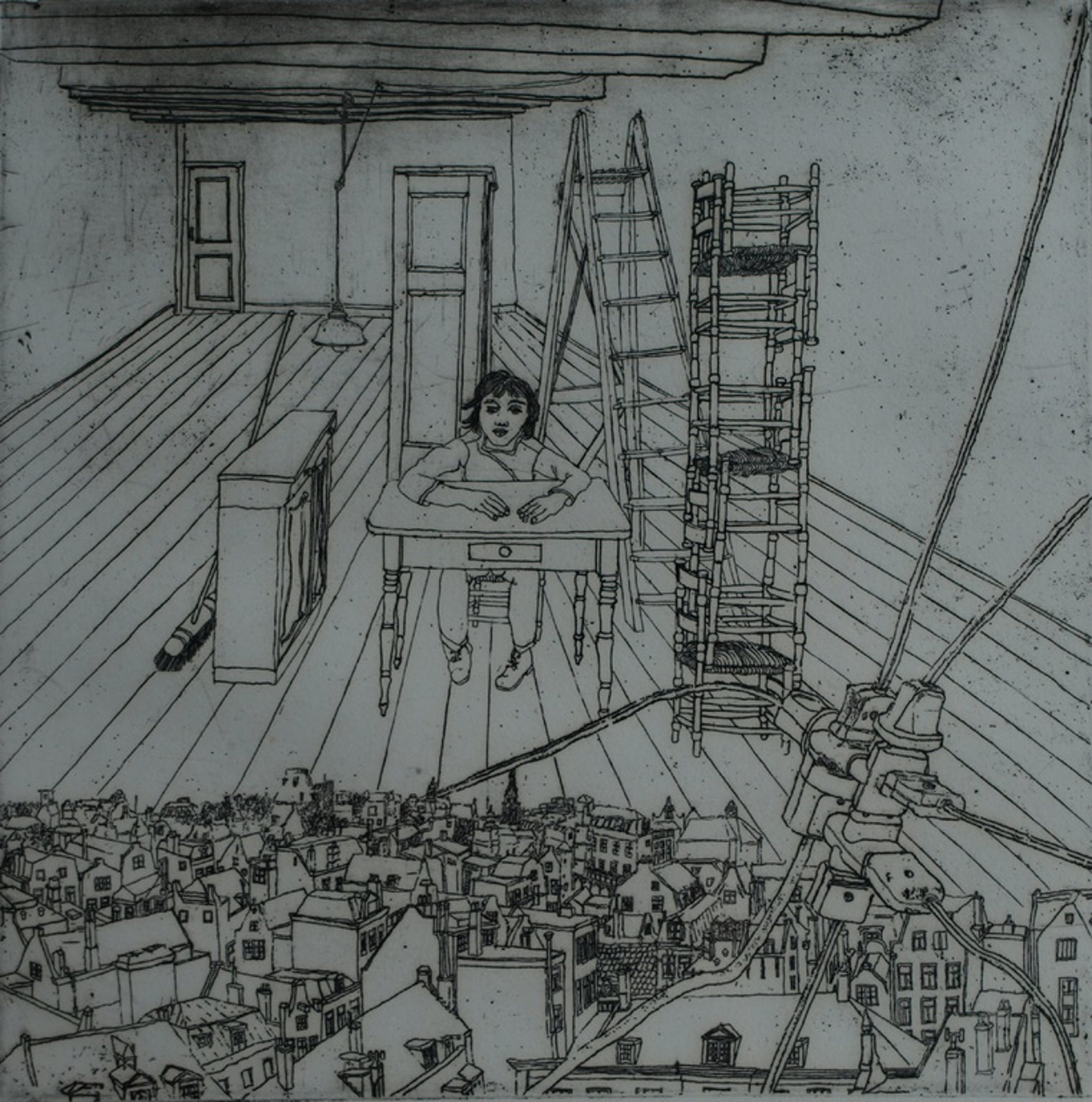 Een ets uit 1971 van de Nederlandse kunstenaar Theo Blom (1935), getiteld “Amsterdam”.